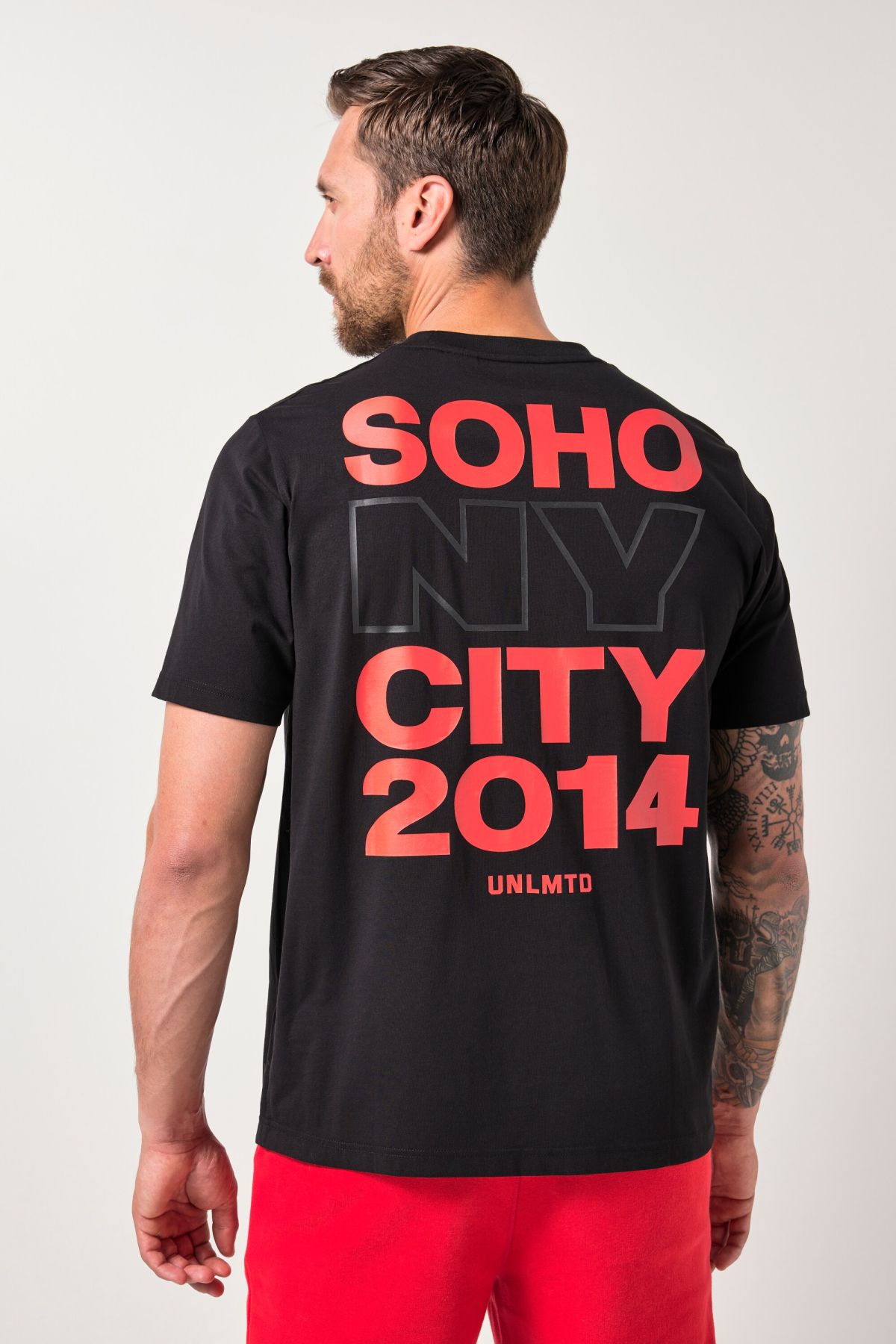 Тениска за фитнес от мека, бързосъхнеща материя с принт на гърба. С кръгло деколте и къси ръкави. Стилна и комфортна за спортни активности