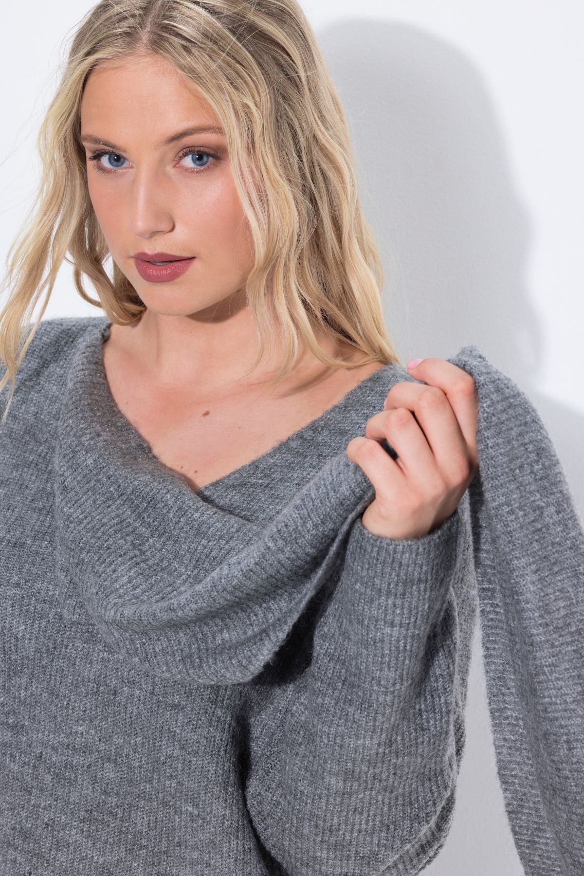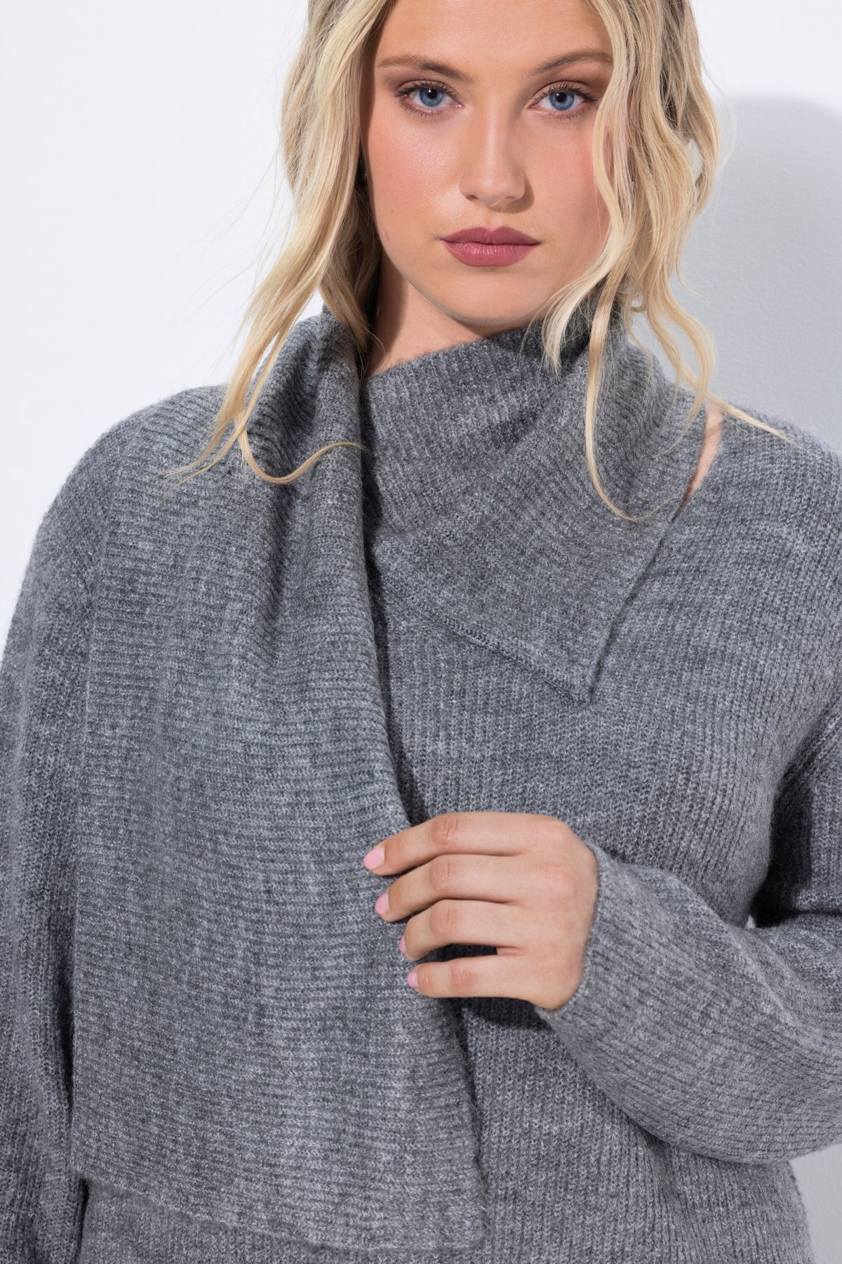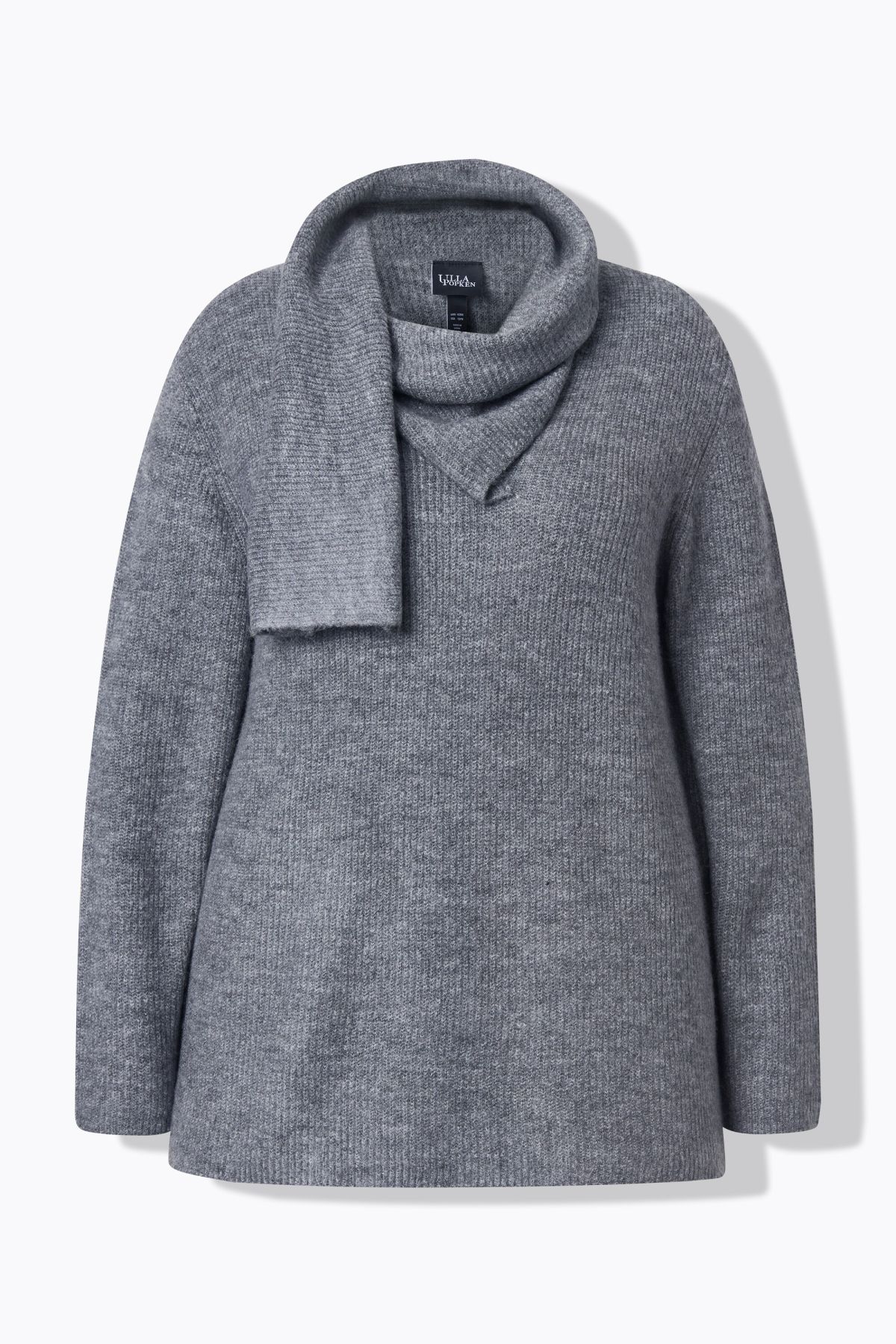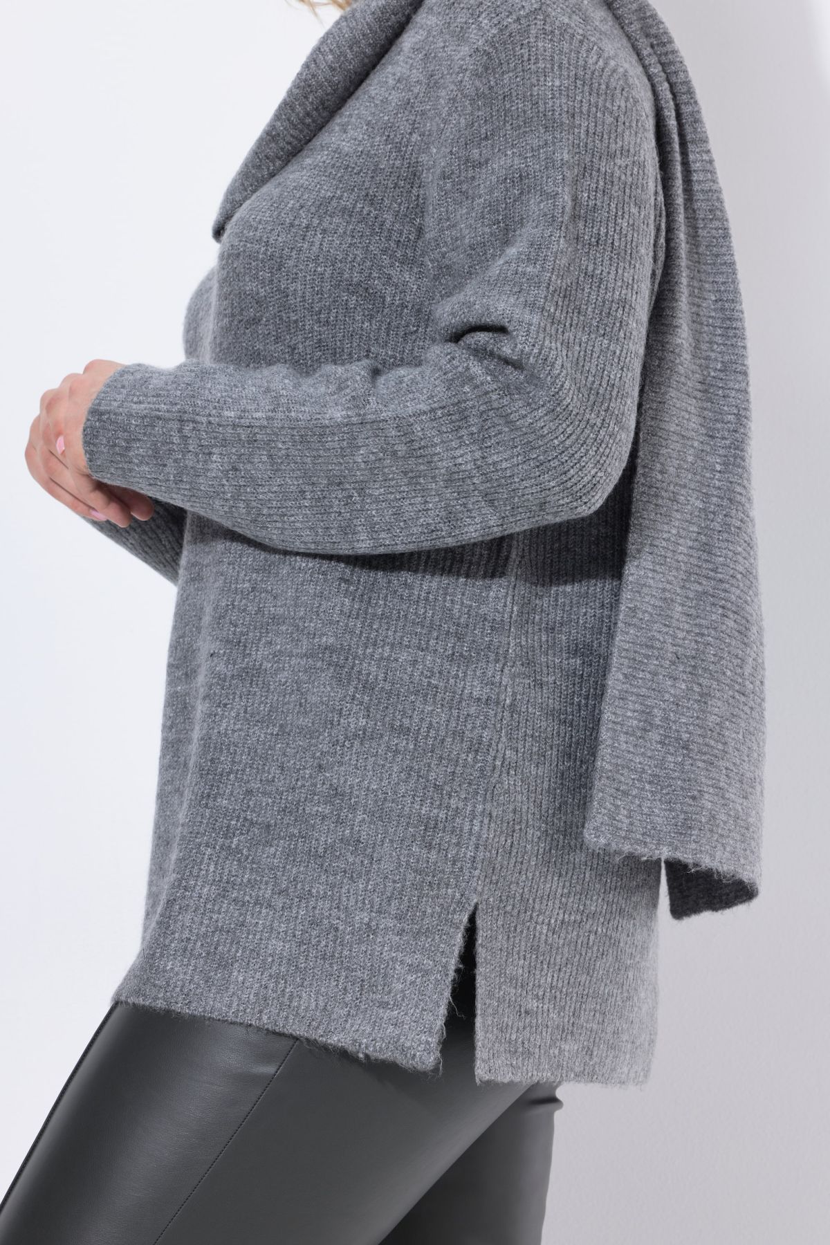 Пуловер с акцент от добавен шал. С дълги ръкави и стилна визия. От мека, фина плетка.