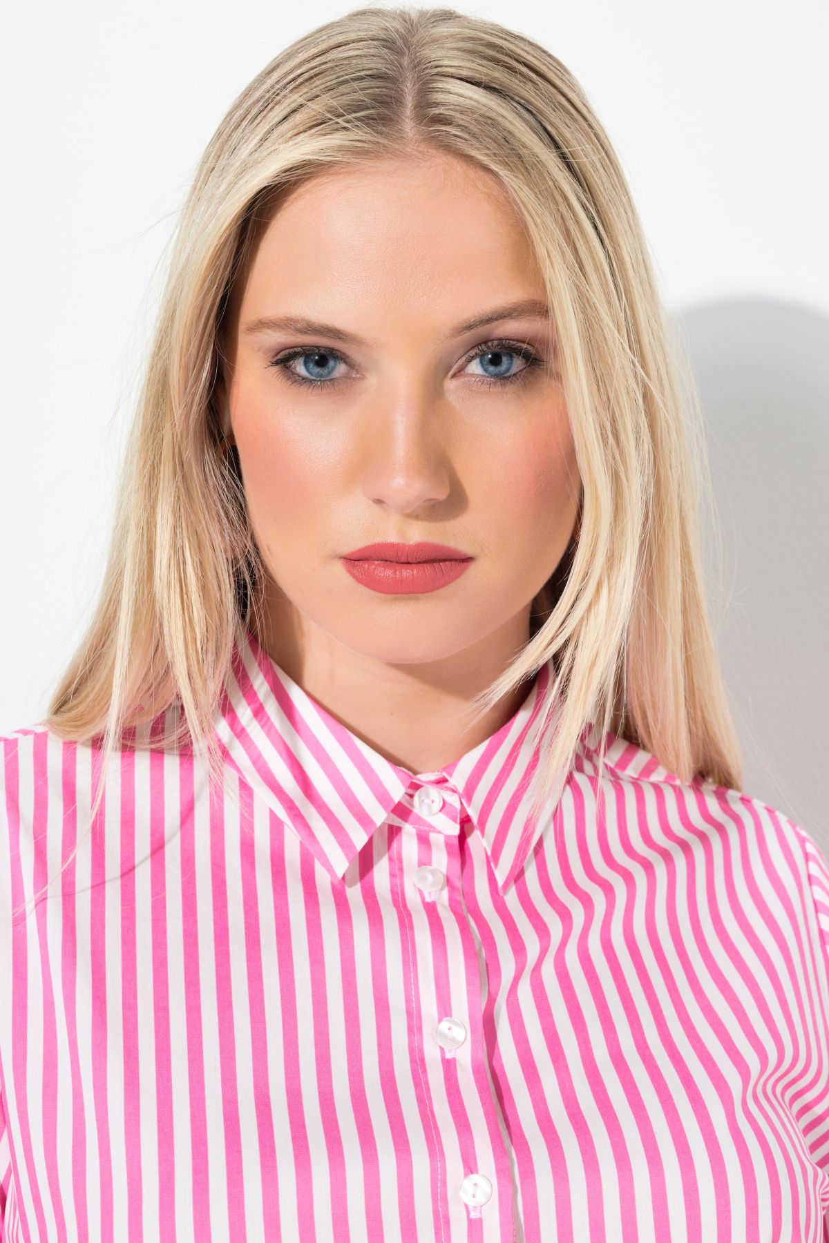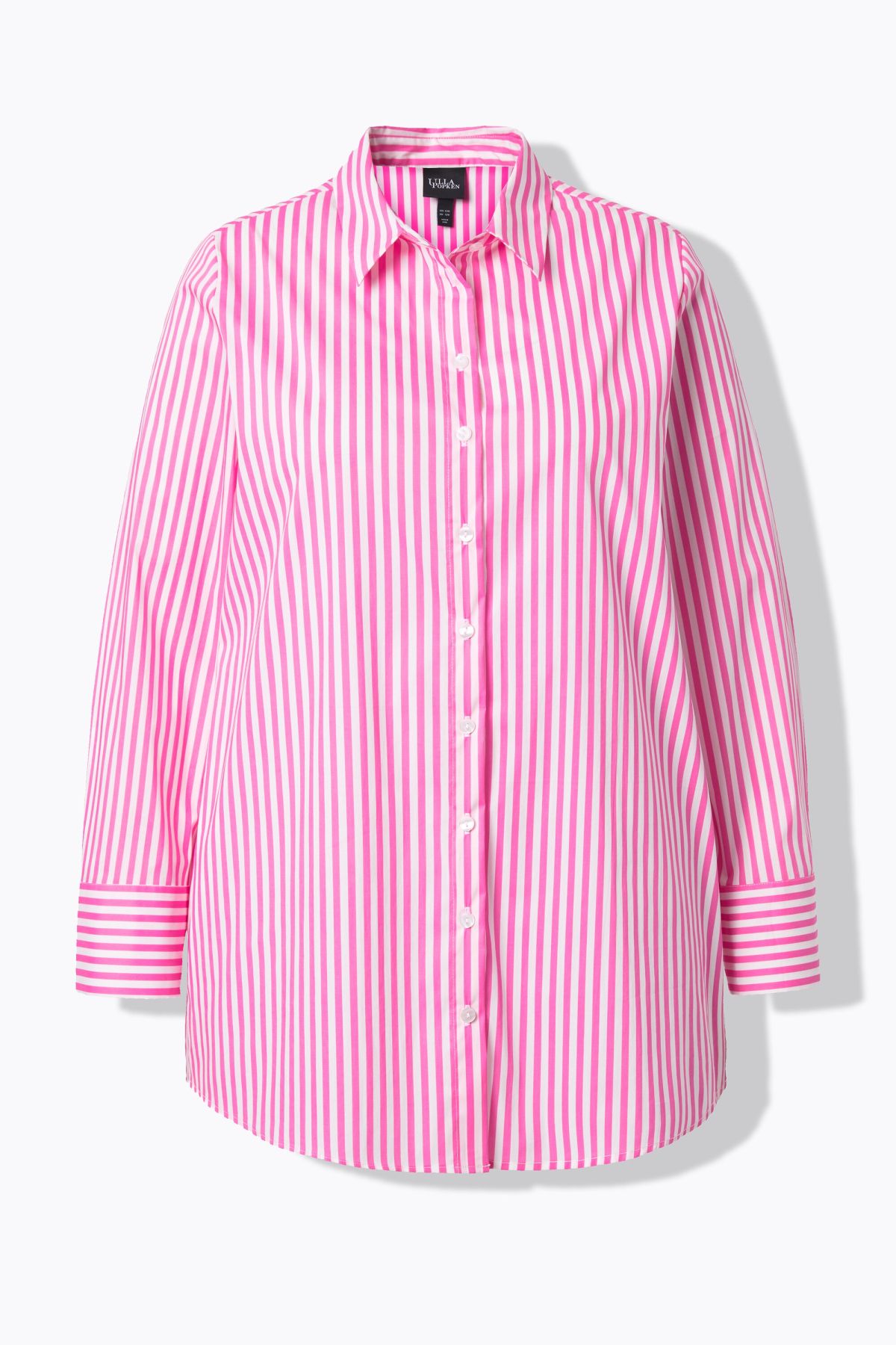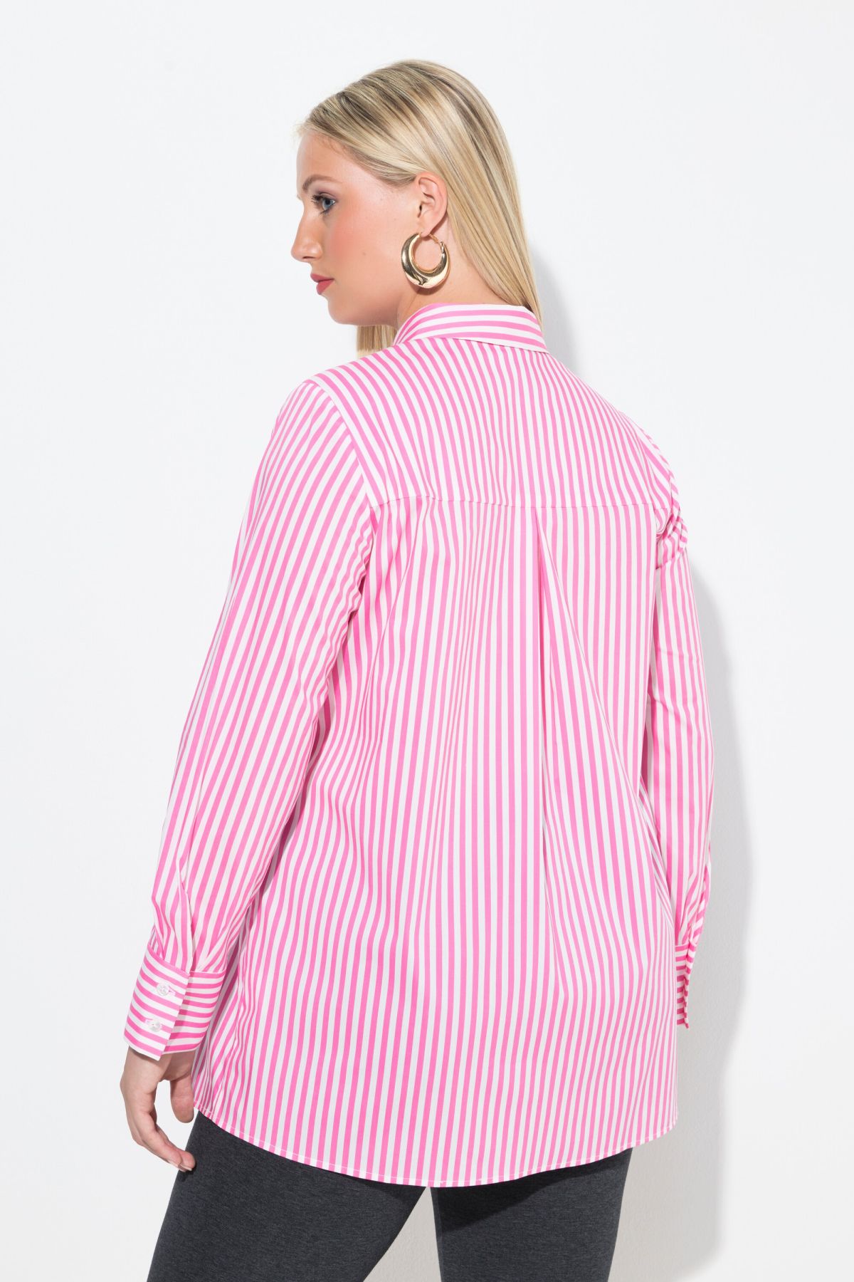 Риза с принт на райета в розов цвят. С класическа яка, копчета отпред и дълги ръкави с маншет с копче. Перфектният избор за дните в офиса