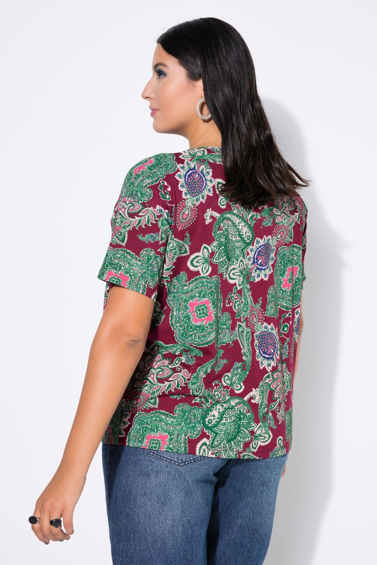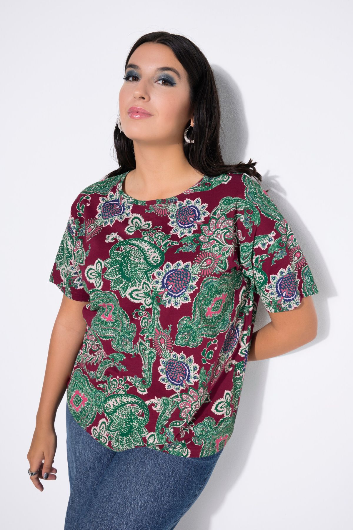 Тениска с модерен пейзли принт. С кръгло деколте и къси ръкави. От мека, памучна материя.