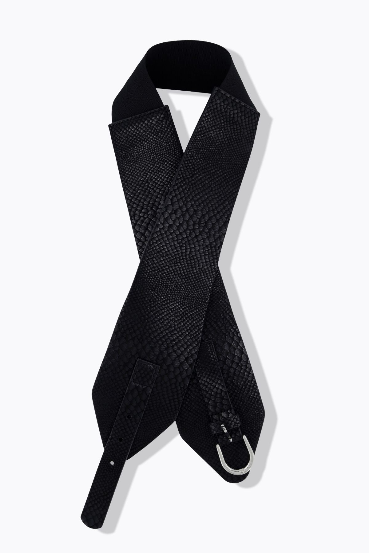 Кожен колан със змийски акценти. С метална катарама. Перфектният избор за всяка рокля.