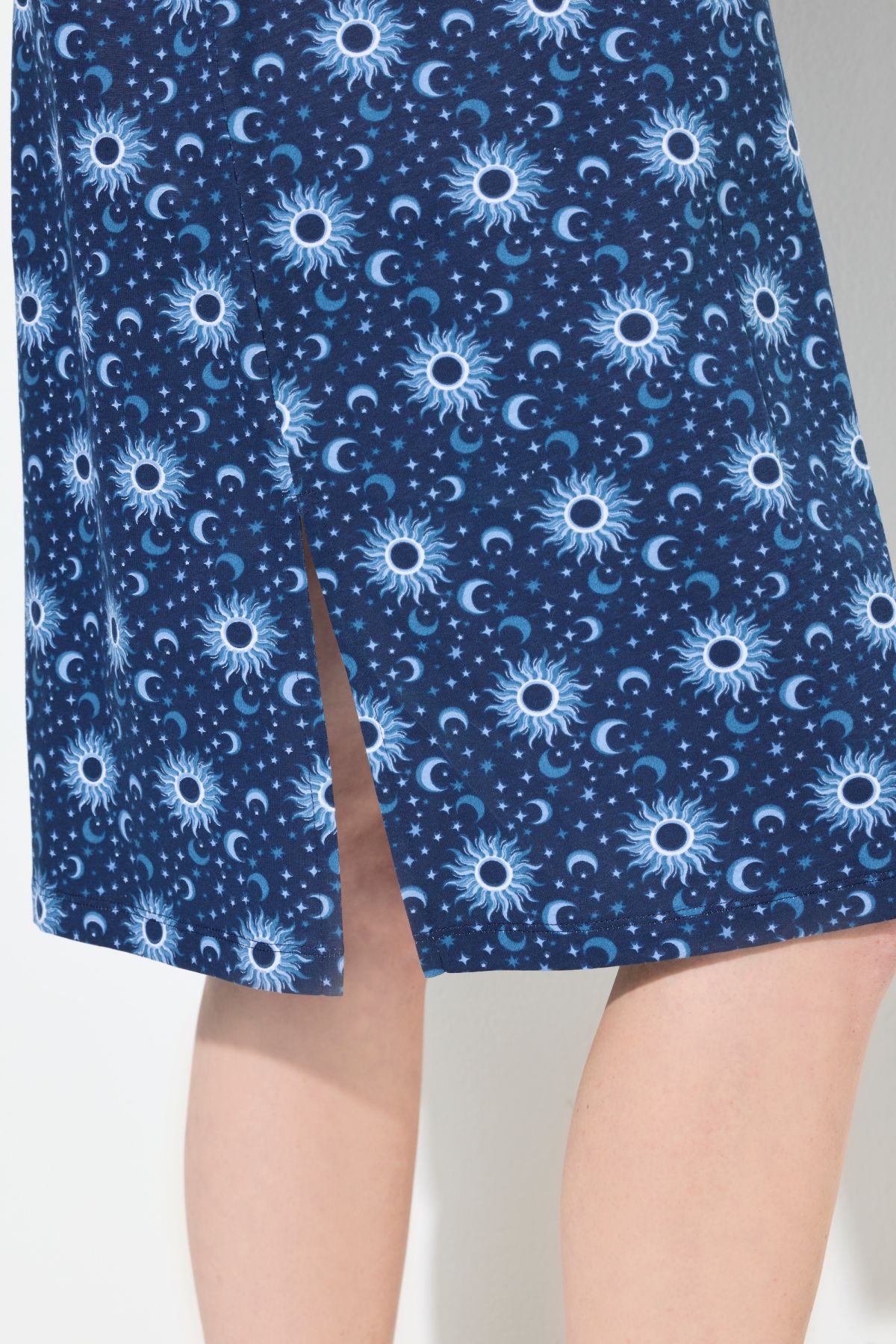 Комплект от 2 броя нощници - едната изцяло с астрономически принт, а другата с акцент. И двете с кръгло деколте с цепка, къси ръкави и странични цепки на подгъва. От мека, памучна материя.