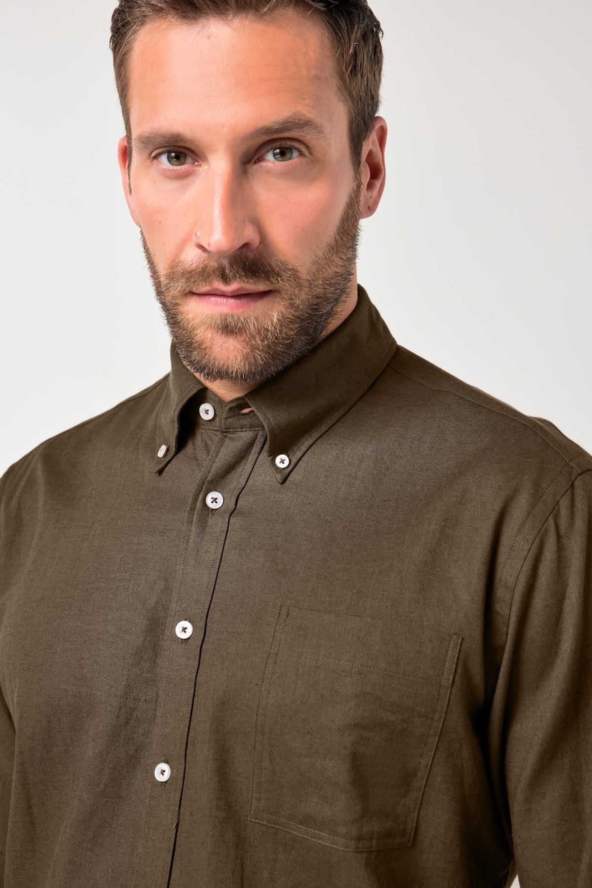 Ленена риза с яка с дълги ръкави и джоб на гърдите. С комфортна кройка и перфектен силует за всеки момент. С широк дизайн, комбиниращ в себе си риза и яке.