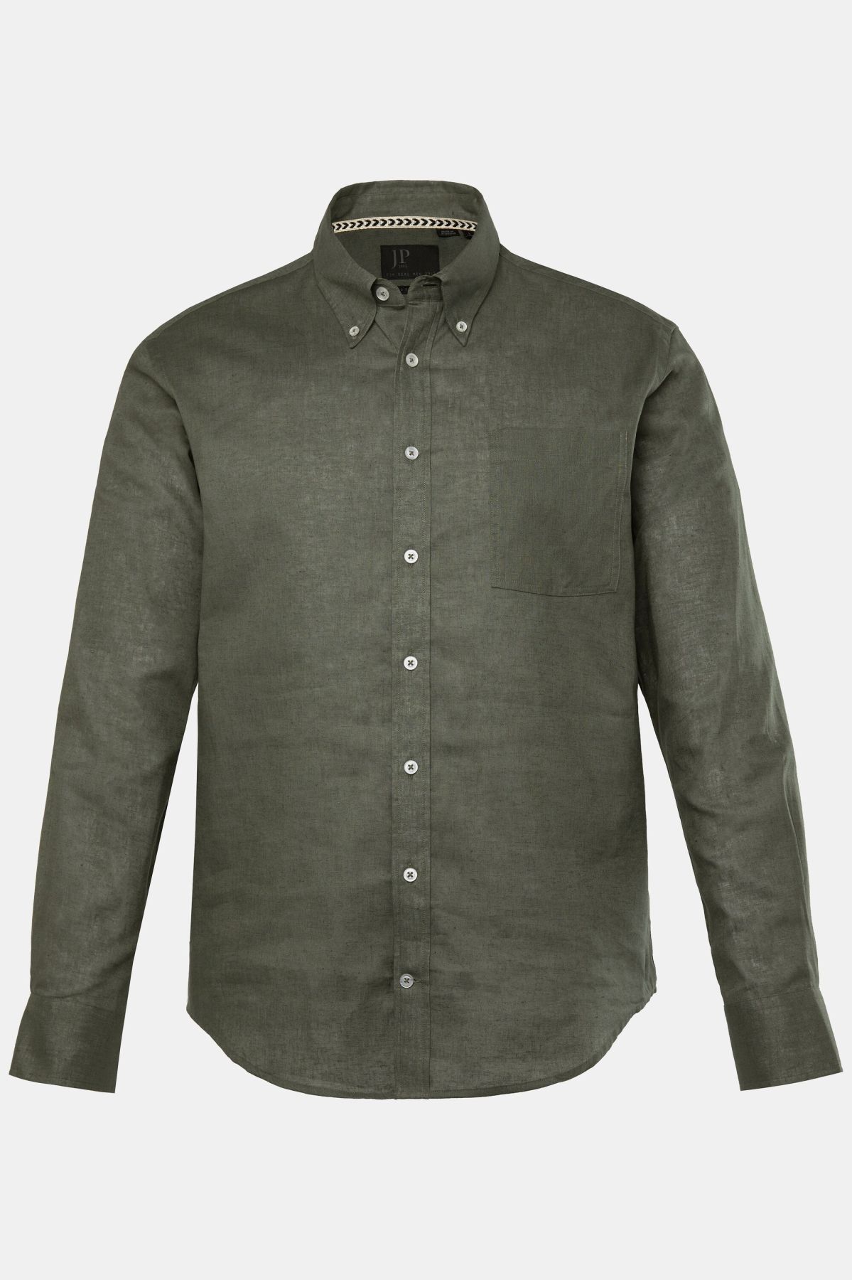 хладен микс от лен, модерна кройка, яка с копчета, по-големи копчета от 4 XL, коригирана според размера дължина приблизително 78-92 см.