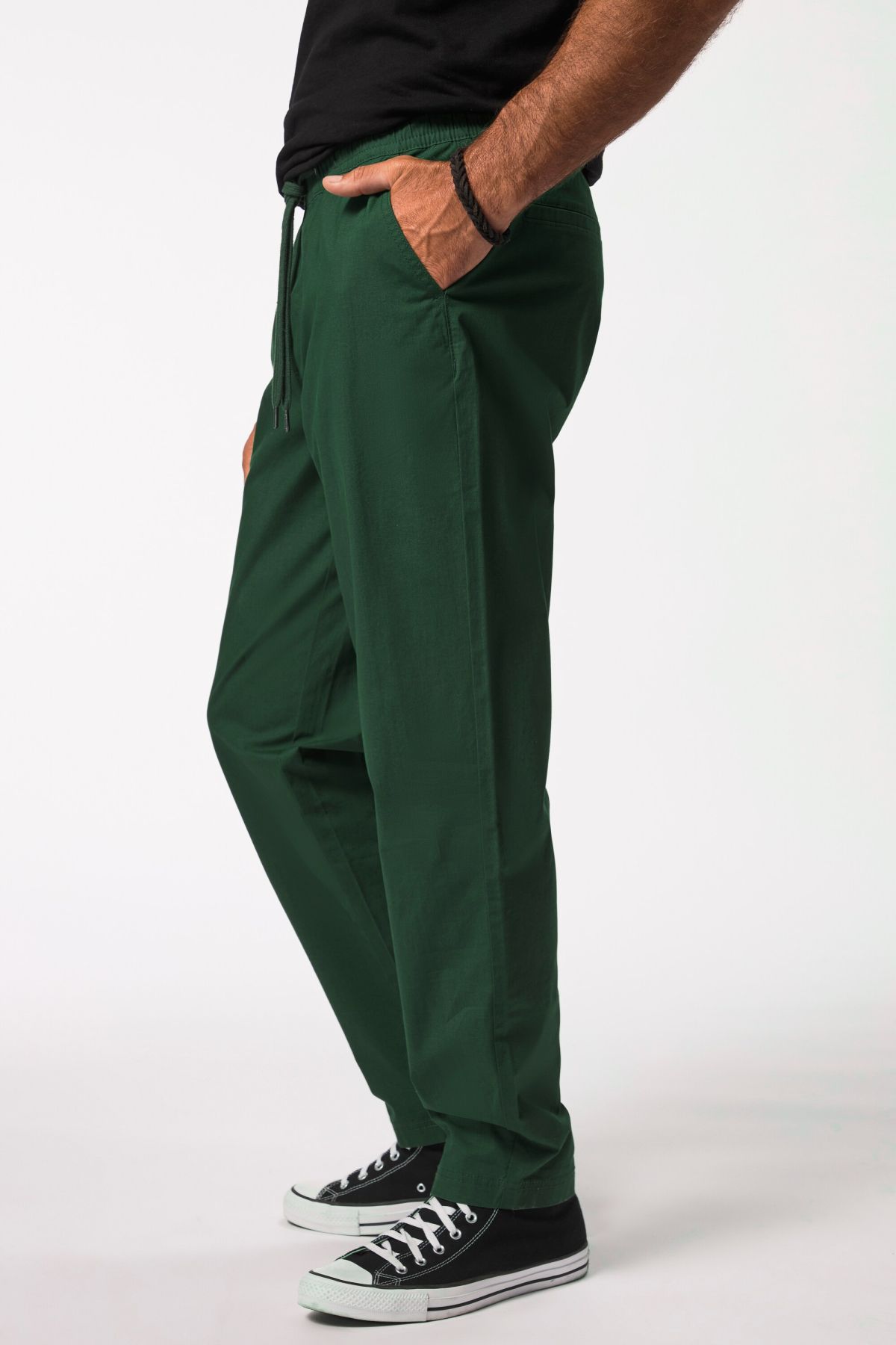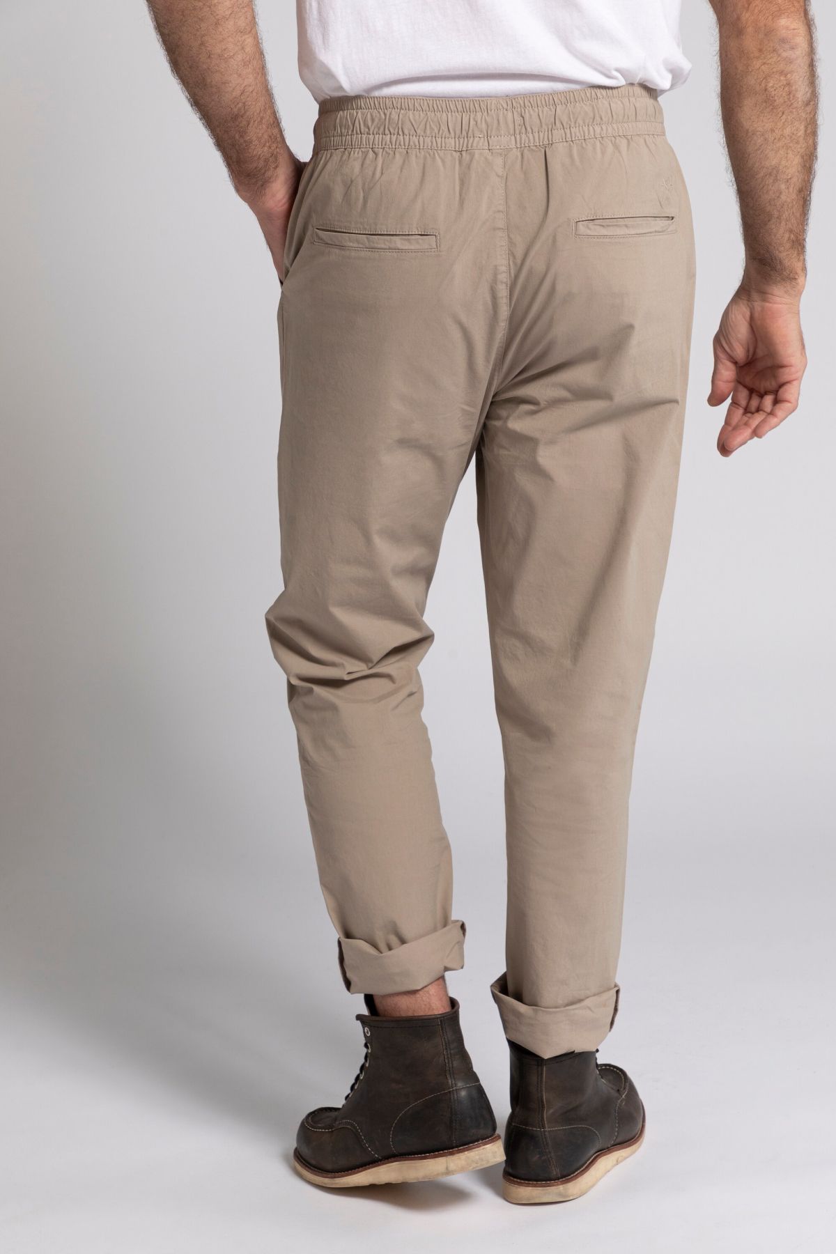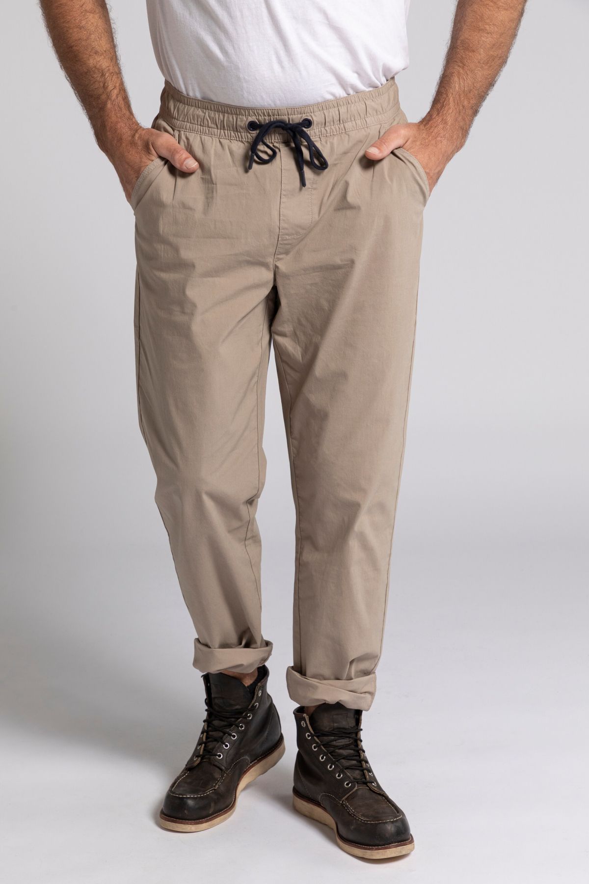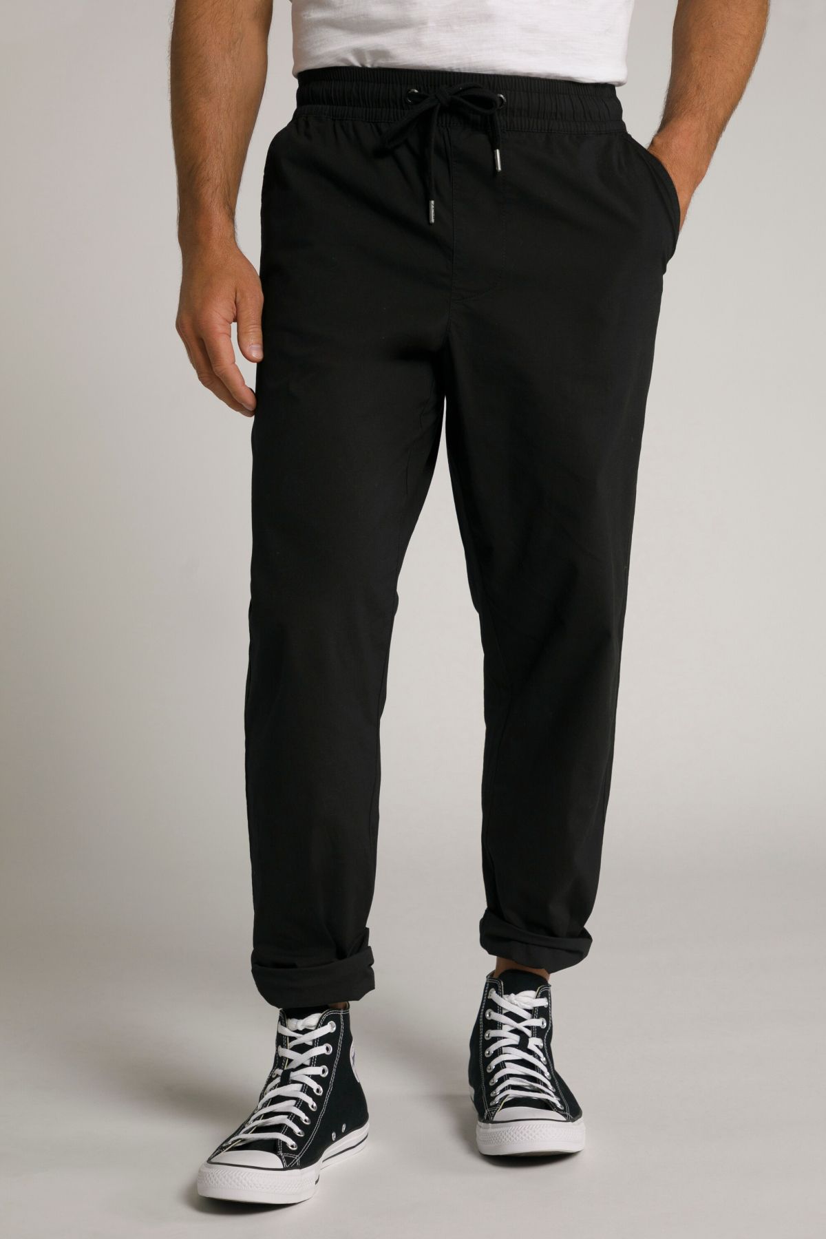 Спортен панталон от комфортна, еластична материя с еластична талия и връзка. С нормална дължина