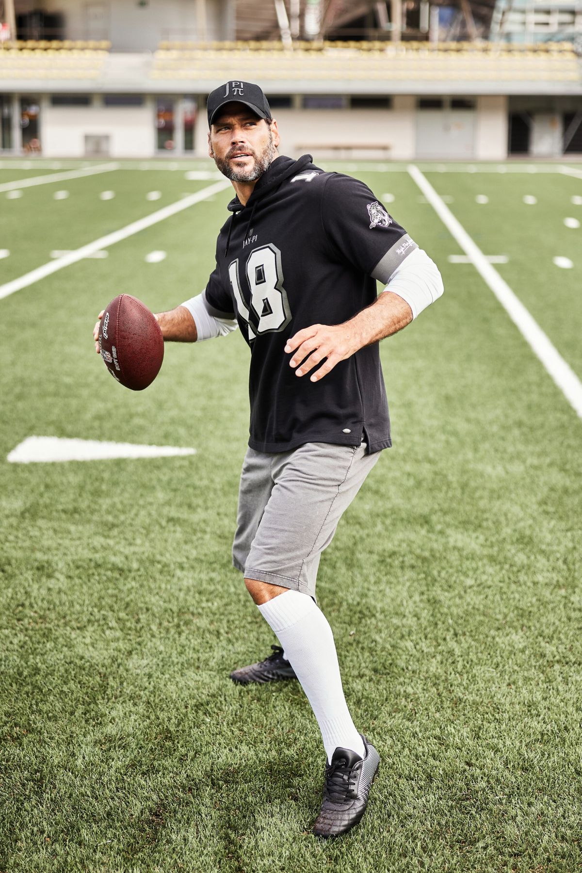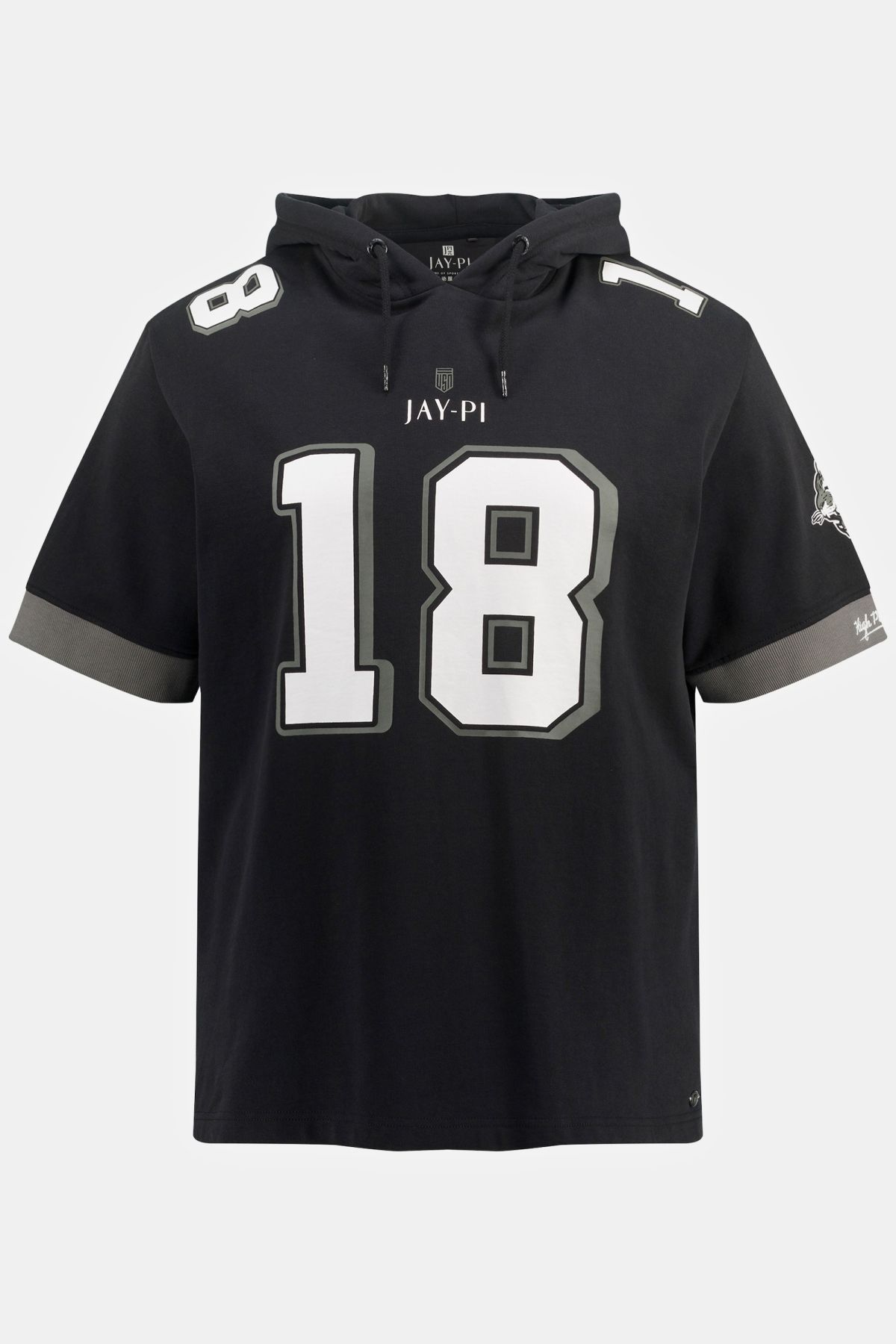 автентична визия за американски футбол, висококачествен суичър, голяма щампа 18, качулка с шнур, полуръкави, коригирана според размера дължина приблизително 74-85 см.