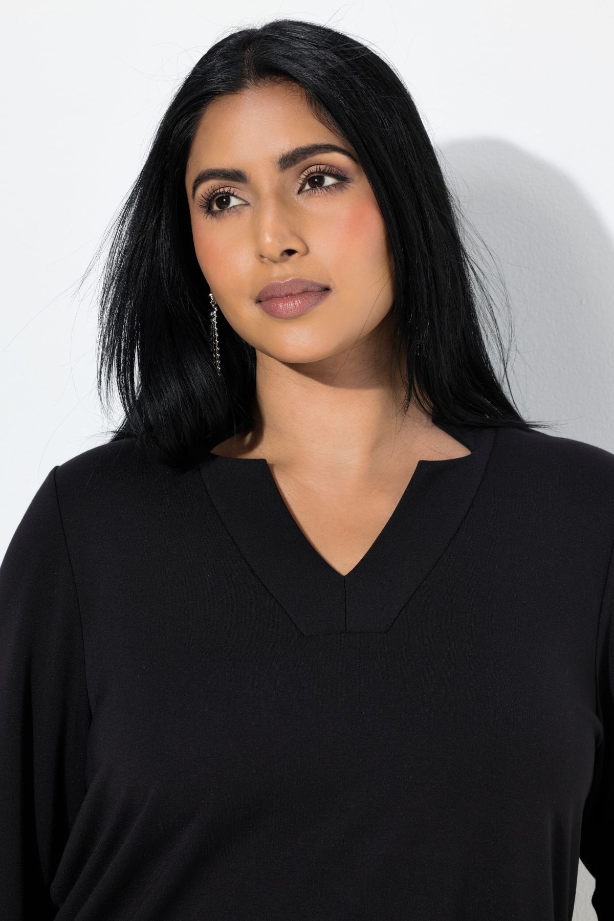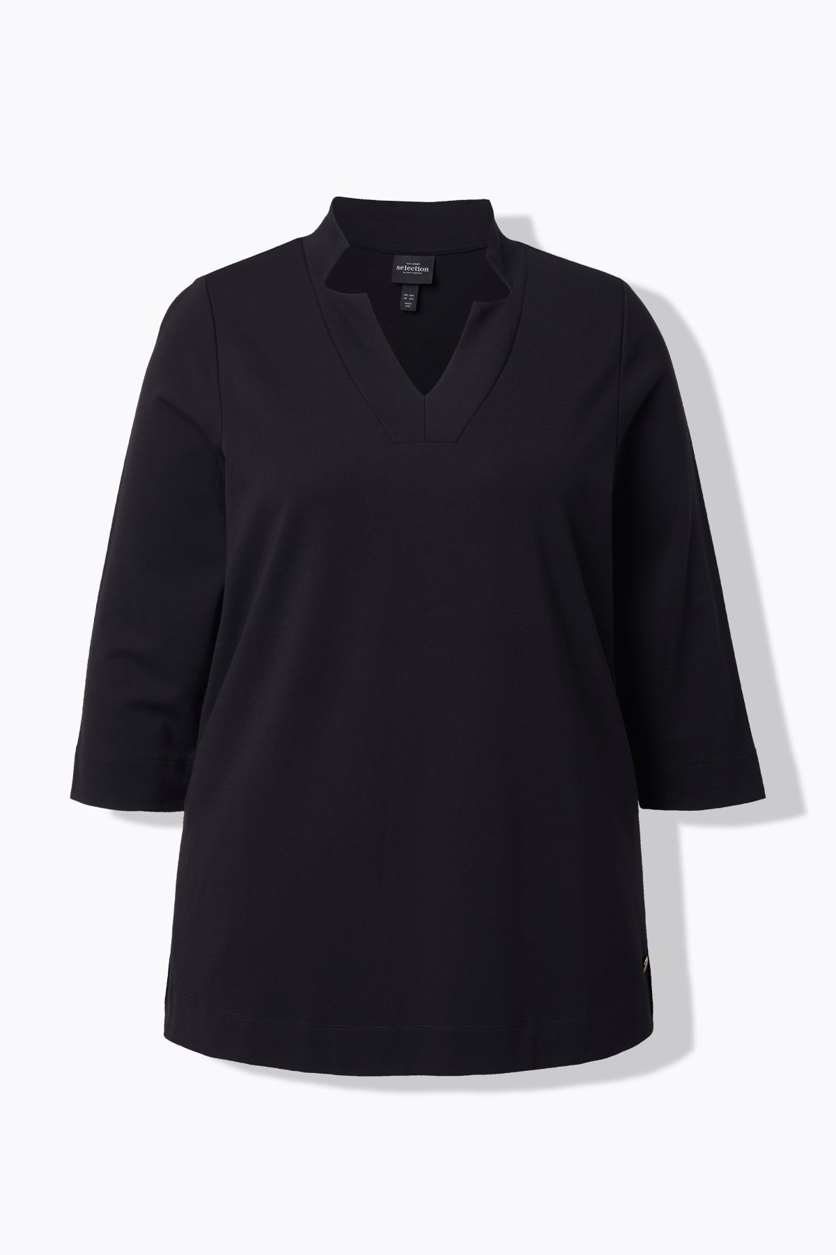 Тениска с цепка на деколтето с елегантен силует. Класически акцент с 3/4 ръкави.