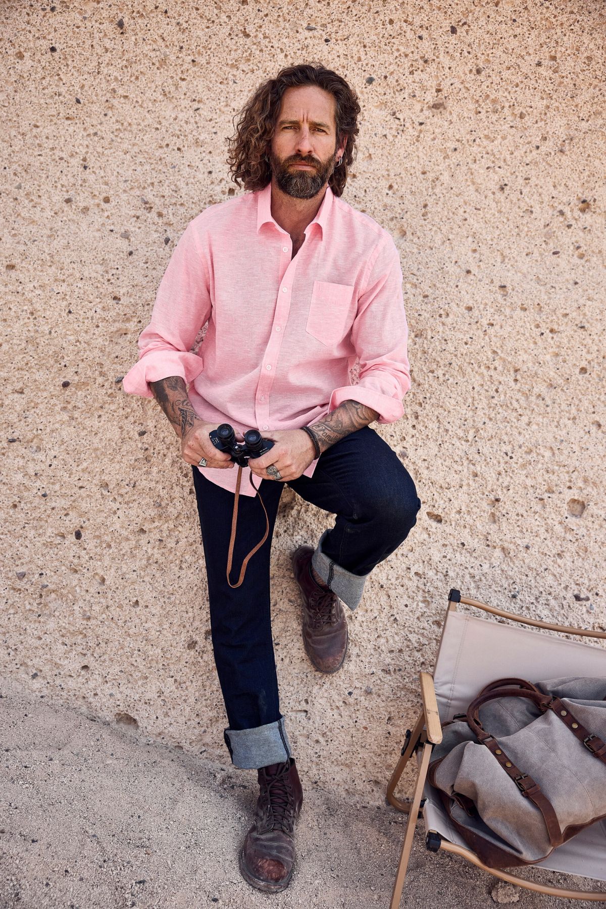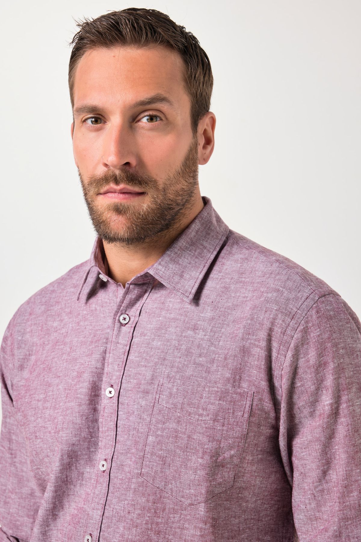 Ленена риза с дълги ръкави, модерна кройка и кент яка. С копчета отпред. Спортно- елегантен силует подходящ за ежедневието.