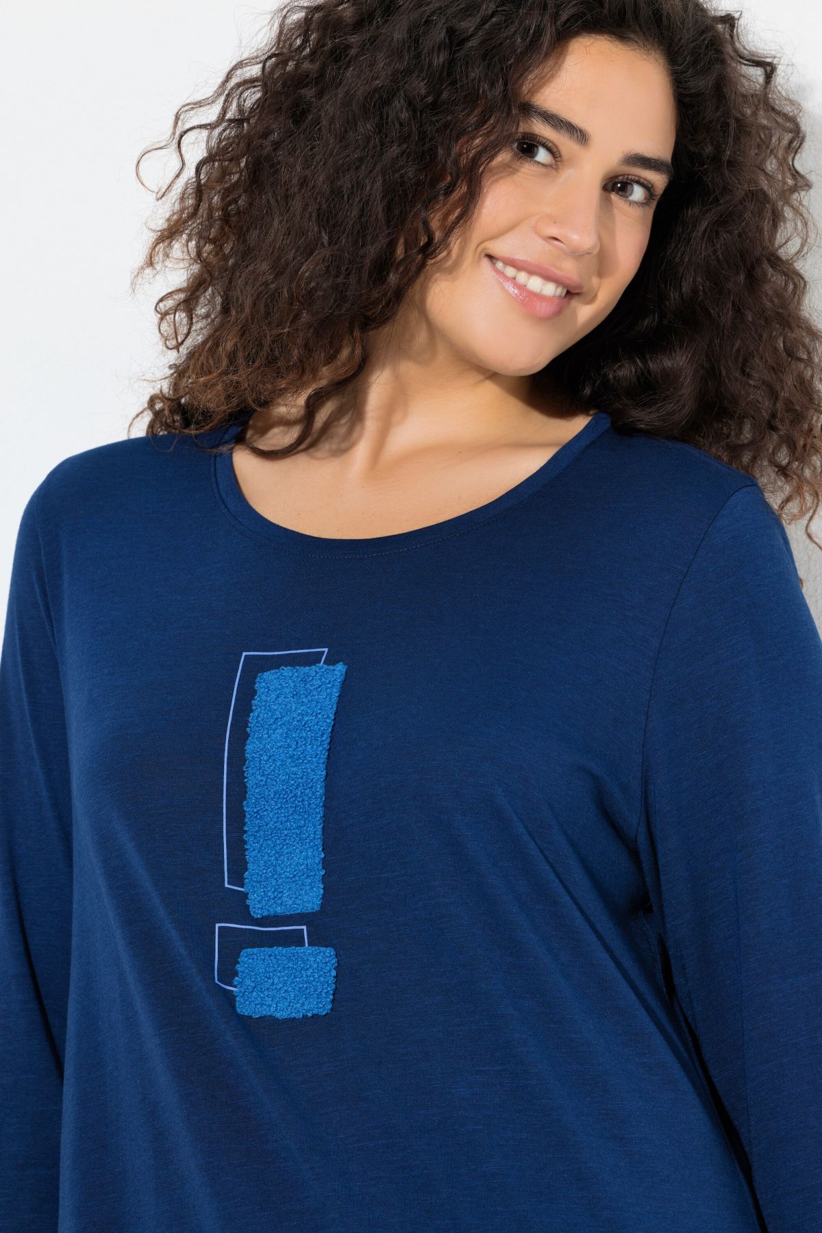 Голям мотив с удивителен знак, кръгло деколте, класическа кройка, 3/4 ръкави, изключително мека смес от памук и модал, дължина, регулирана по размер, приблизително 68-76 см.