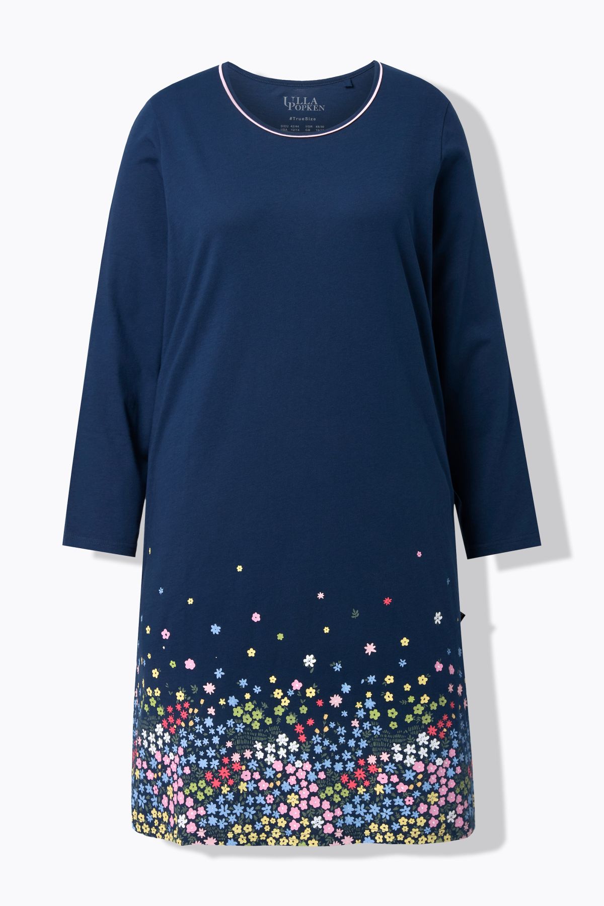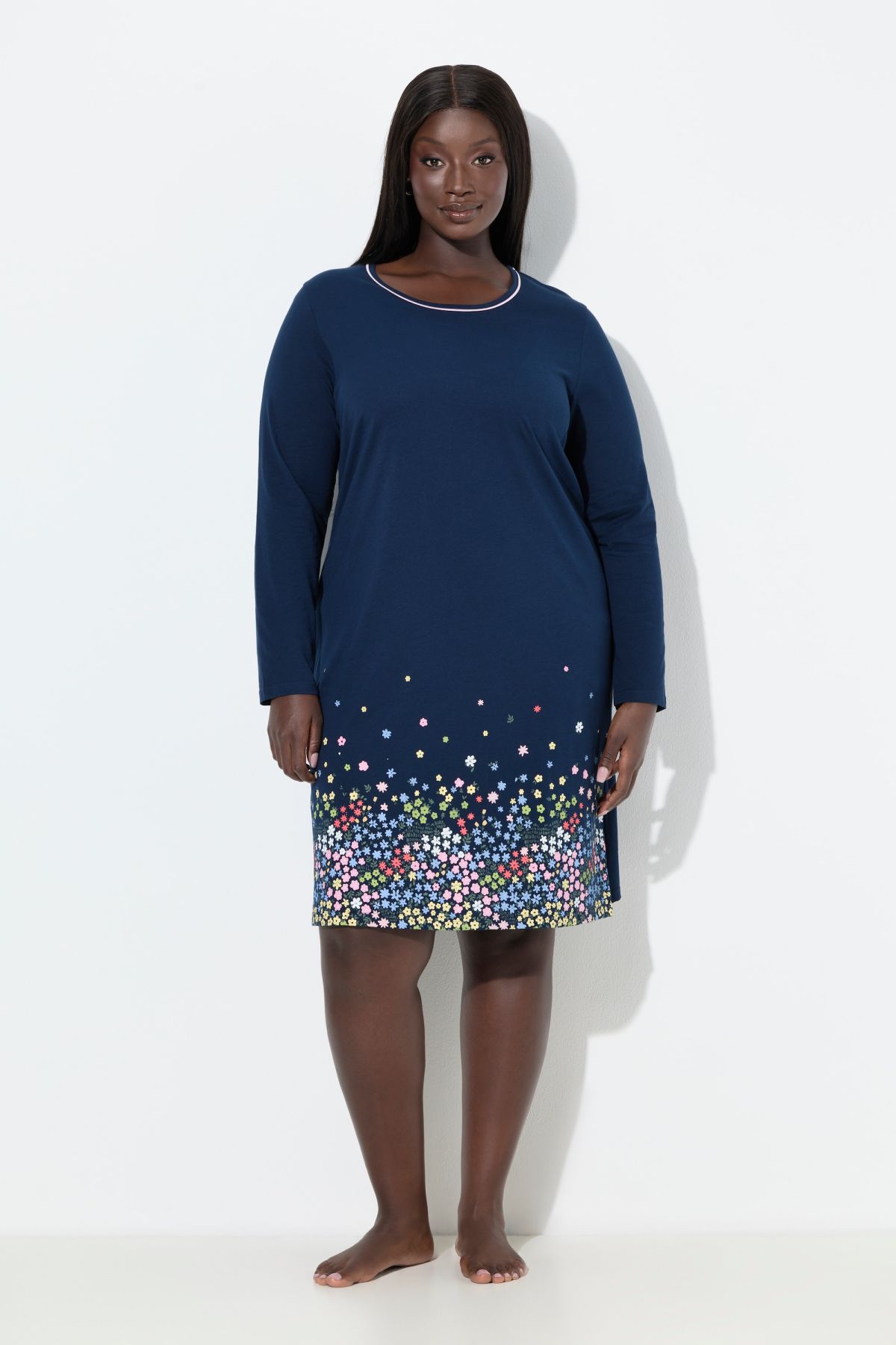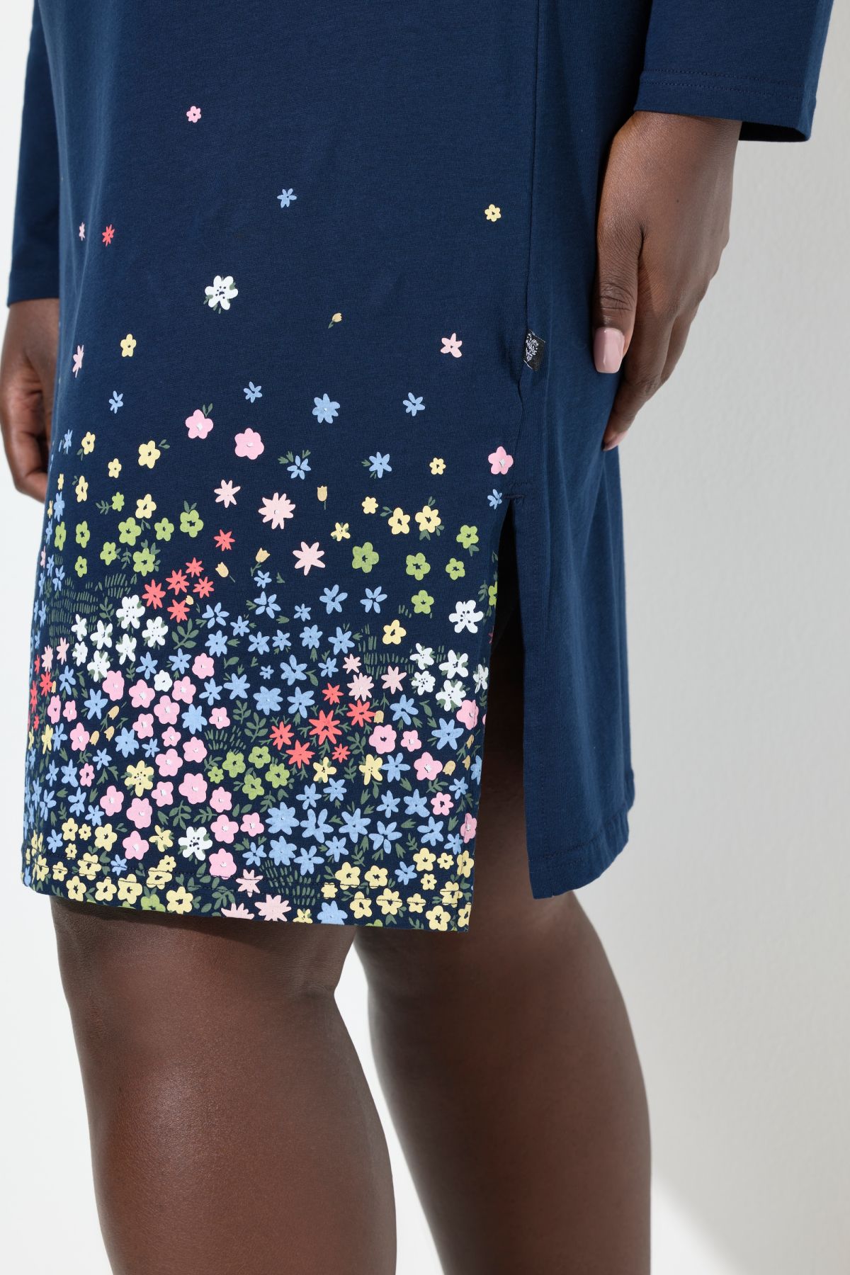 Комплект от 2 броя нощници - едната изцяло с принт на цветя и V - образно деколте, другата с флорален акцент и кръгло деколте. И двете с дълги ръкави и странични цепки на подгъва.