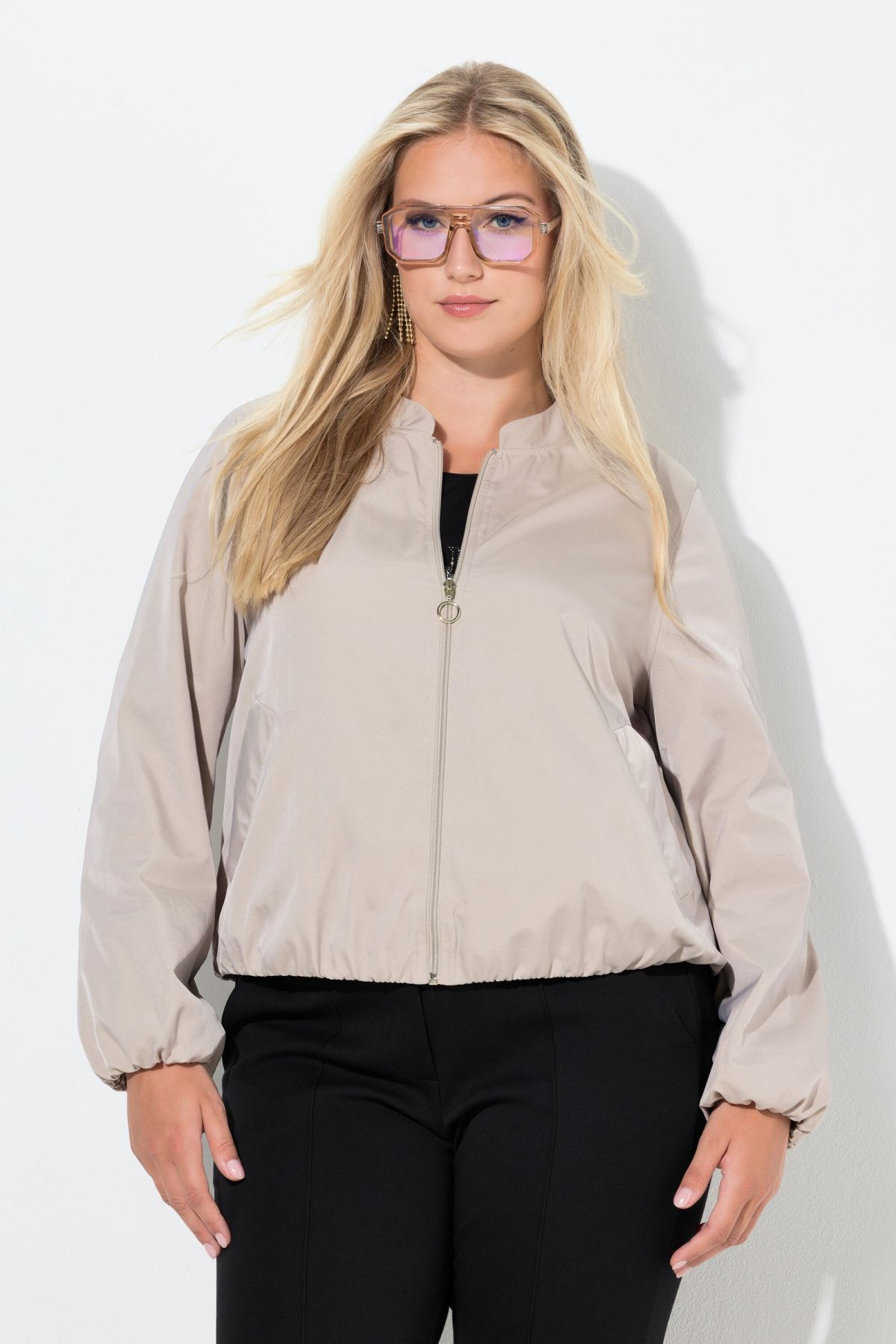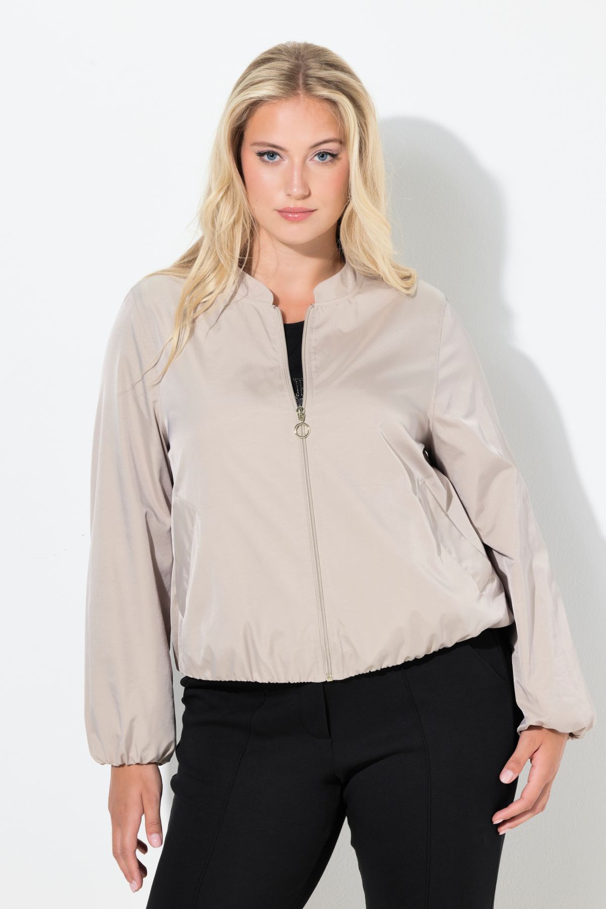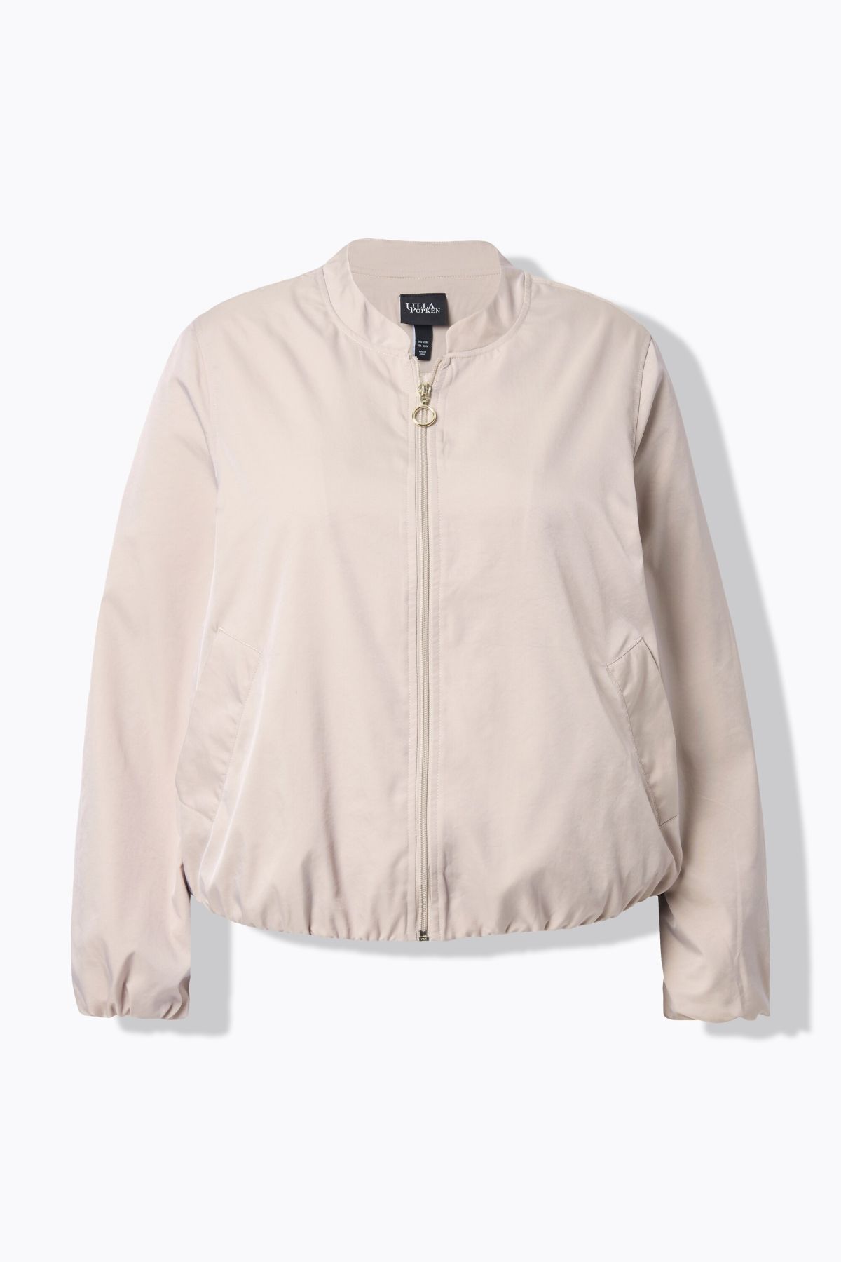Яке тип бомбър от мека сатенирана материя. С еластичен подгъв, придаващ перфектност на визията и цип отпред. С дълги ръкави с еластичен маншет.