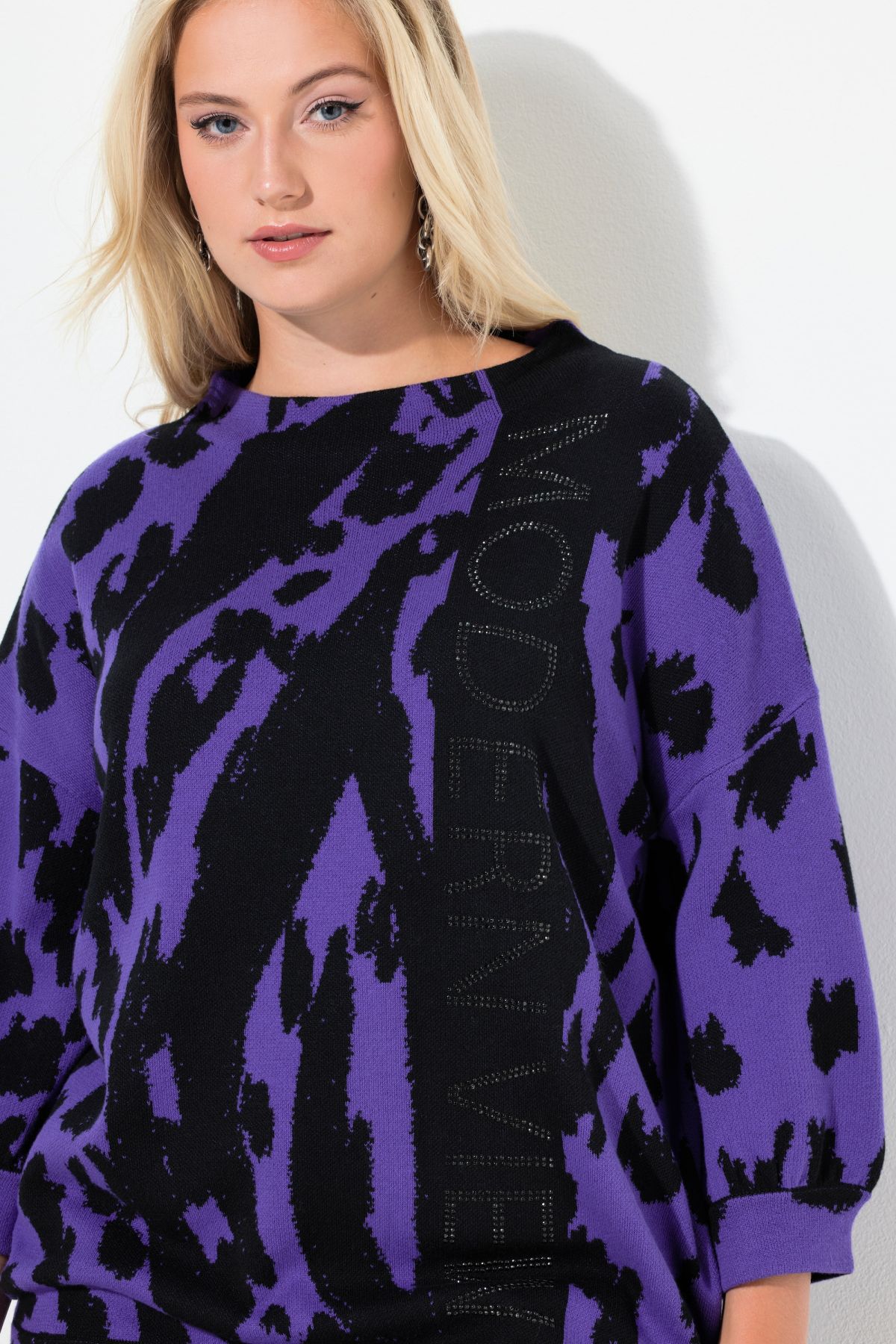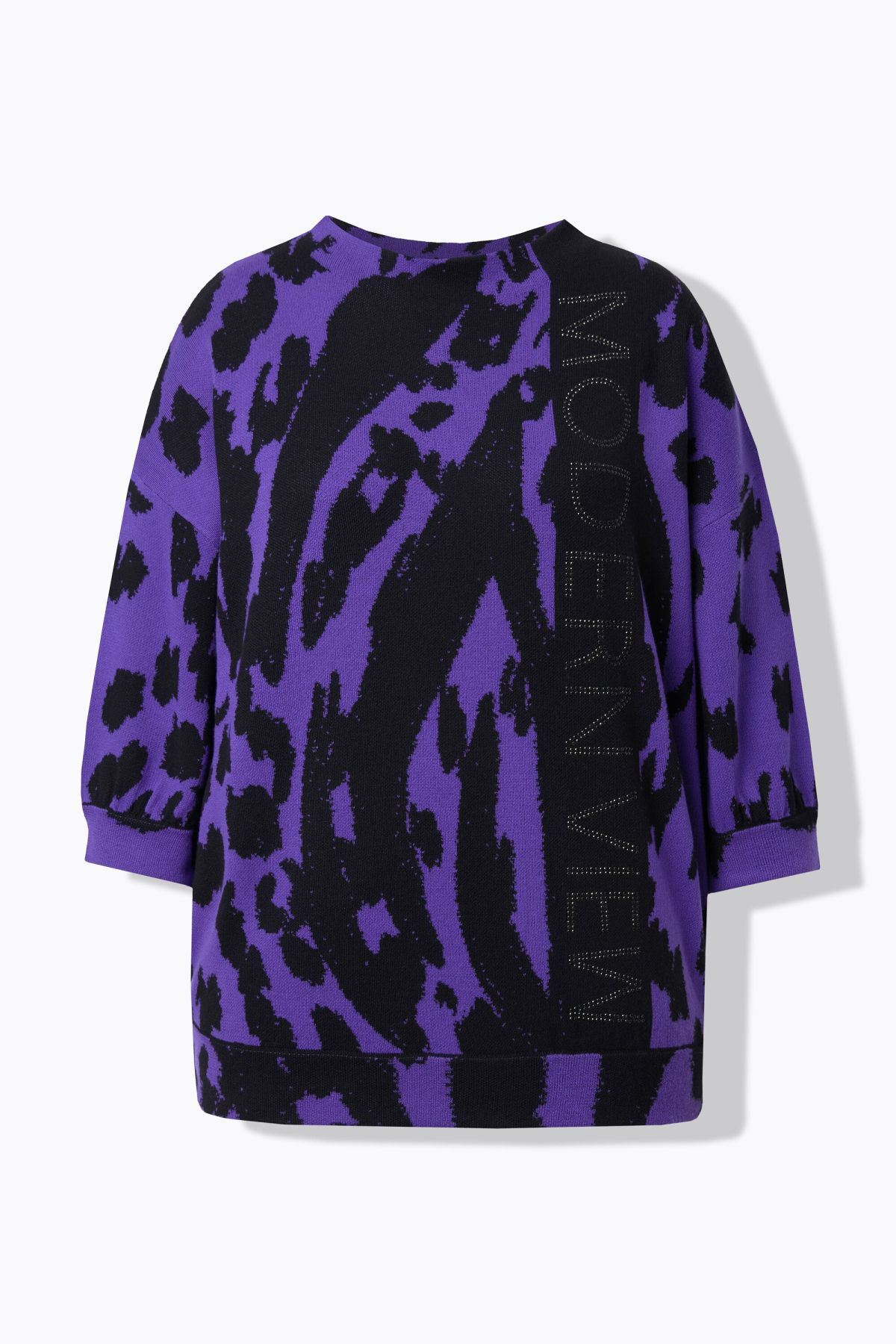 Пуловер с животински принт с бляскав надпис Modern view. С деколте тип лодка и дълги ръкави. Стилен , свеж и подходящ за ежедневието.