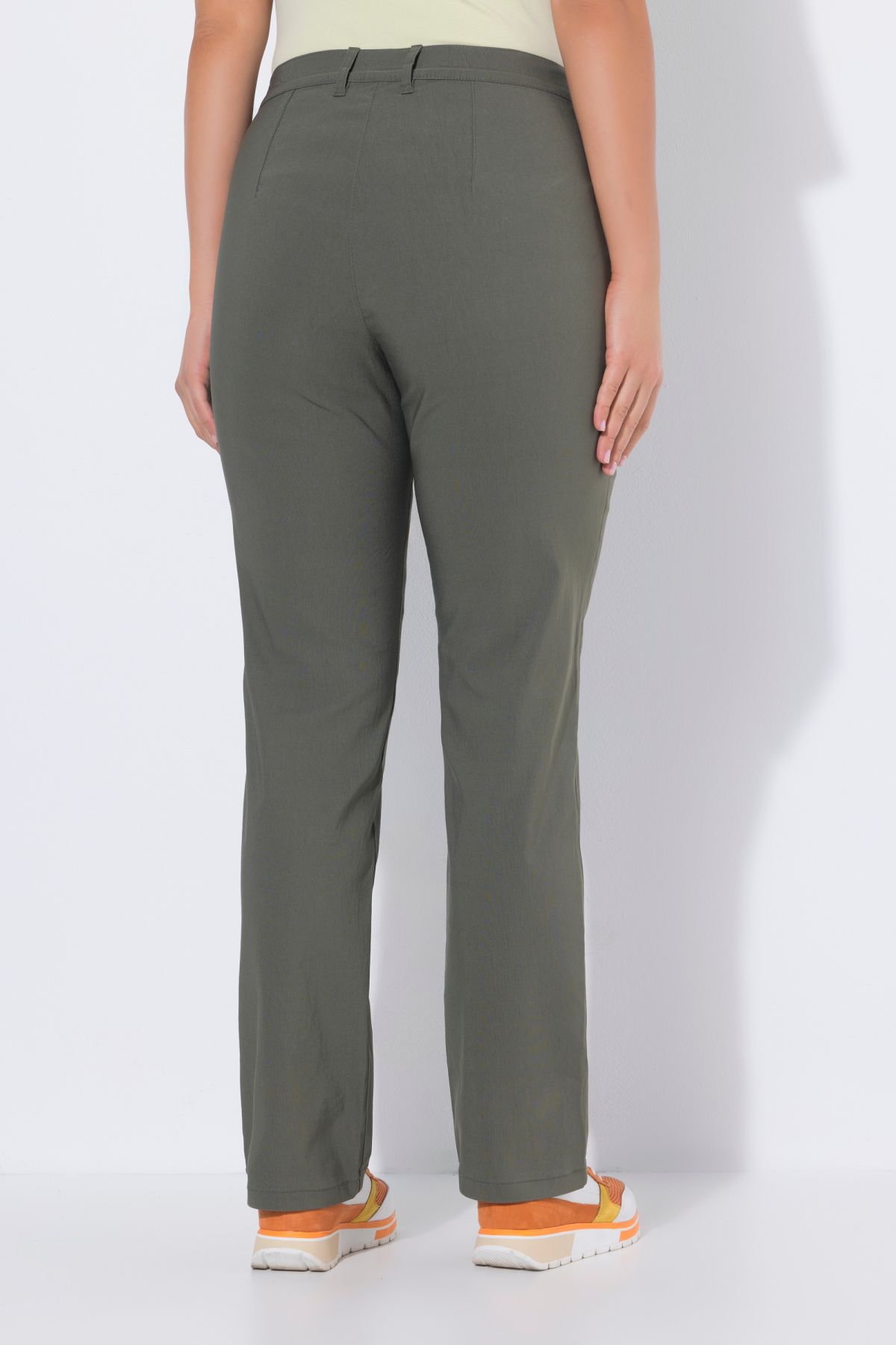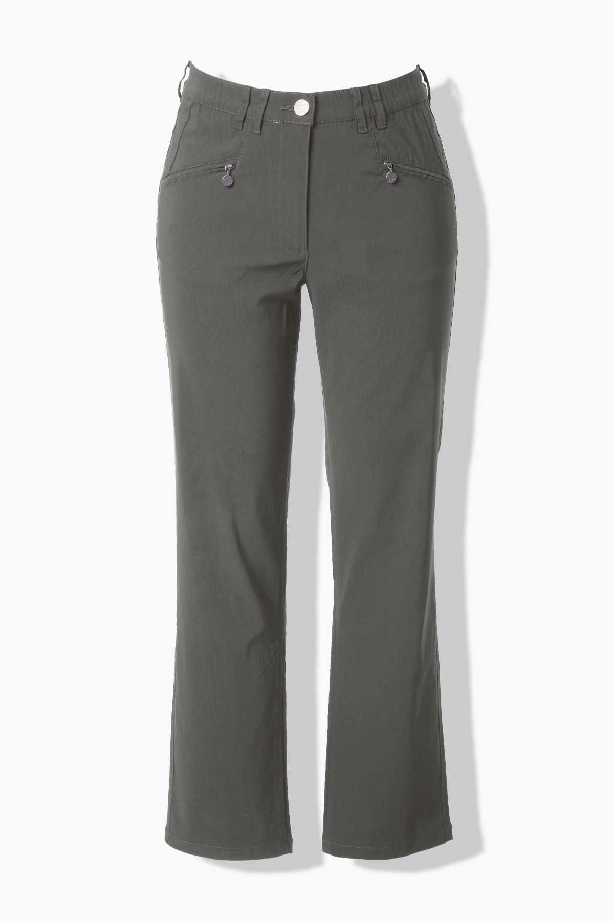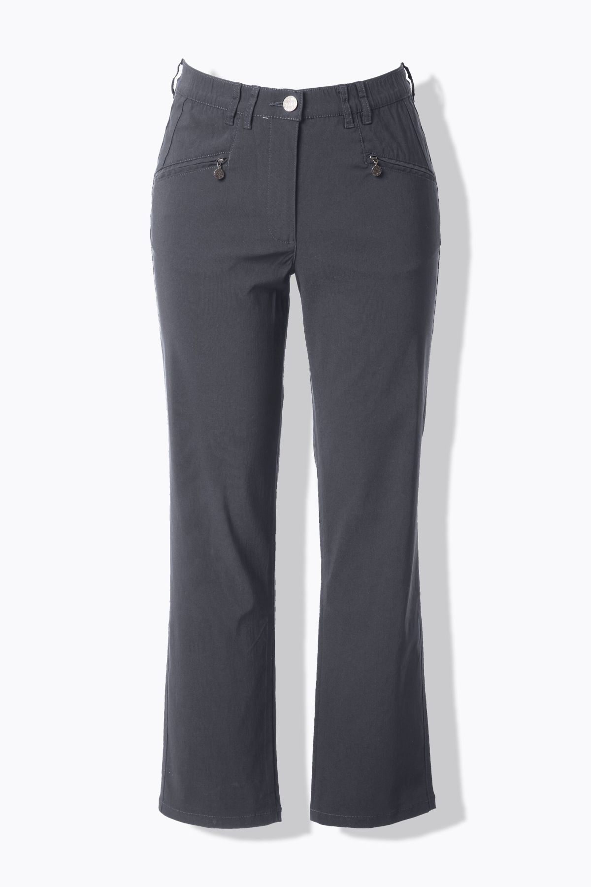 Панталон от бенгалин с еластична талия с гайки за колан, копче и цип отпред. Дизайн с 5 джоба и прави крачоли. Стилен и удобен избор за ежедневието