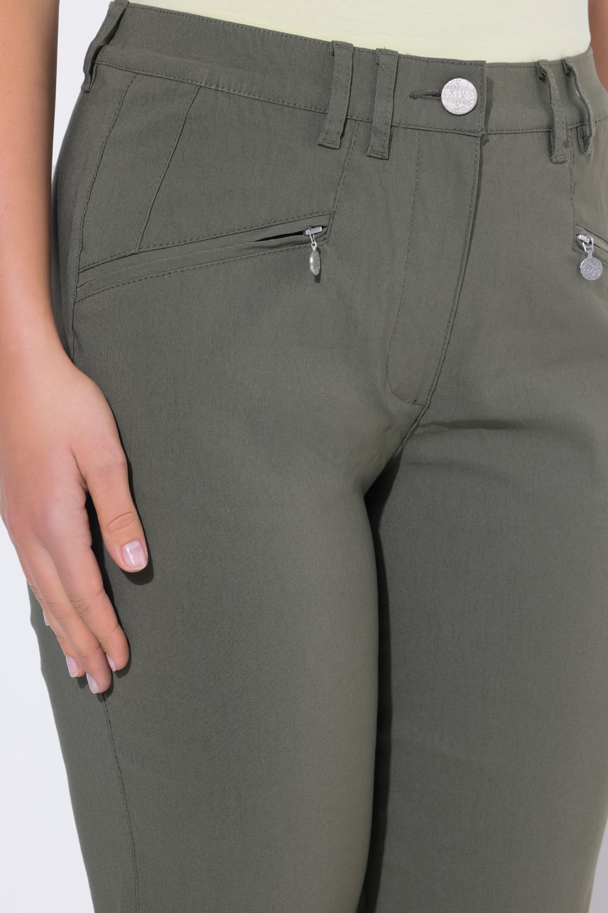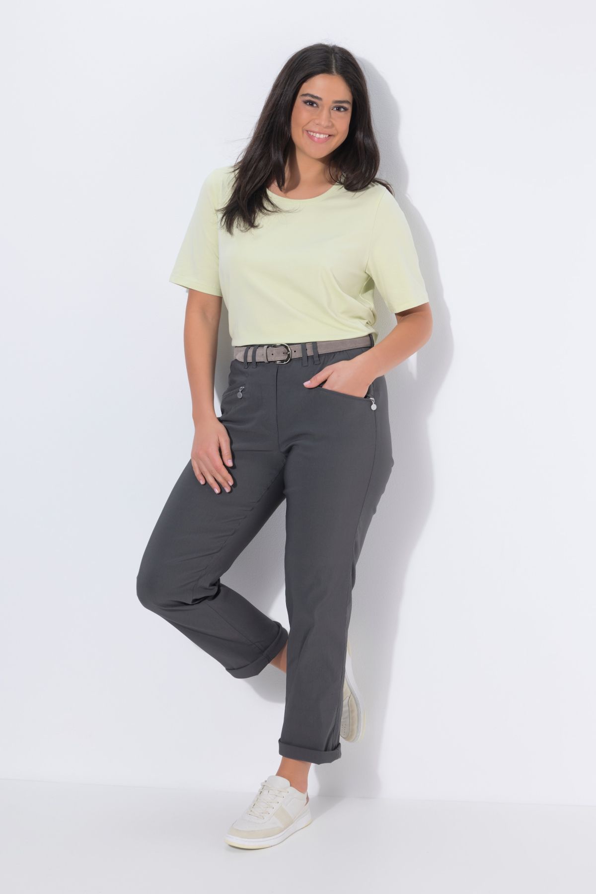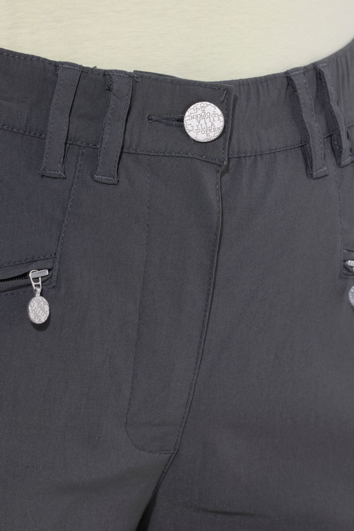 Панталон от бенгалин с еластична талия с гайки за колан, копче и цип отпред. Дизайн с 5 джоба и прави крачоли. Стилен и удобен избор за ежедневието
