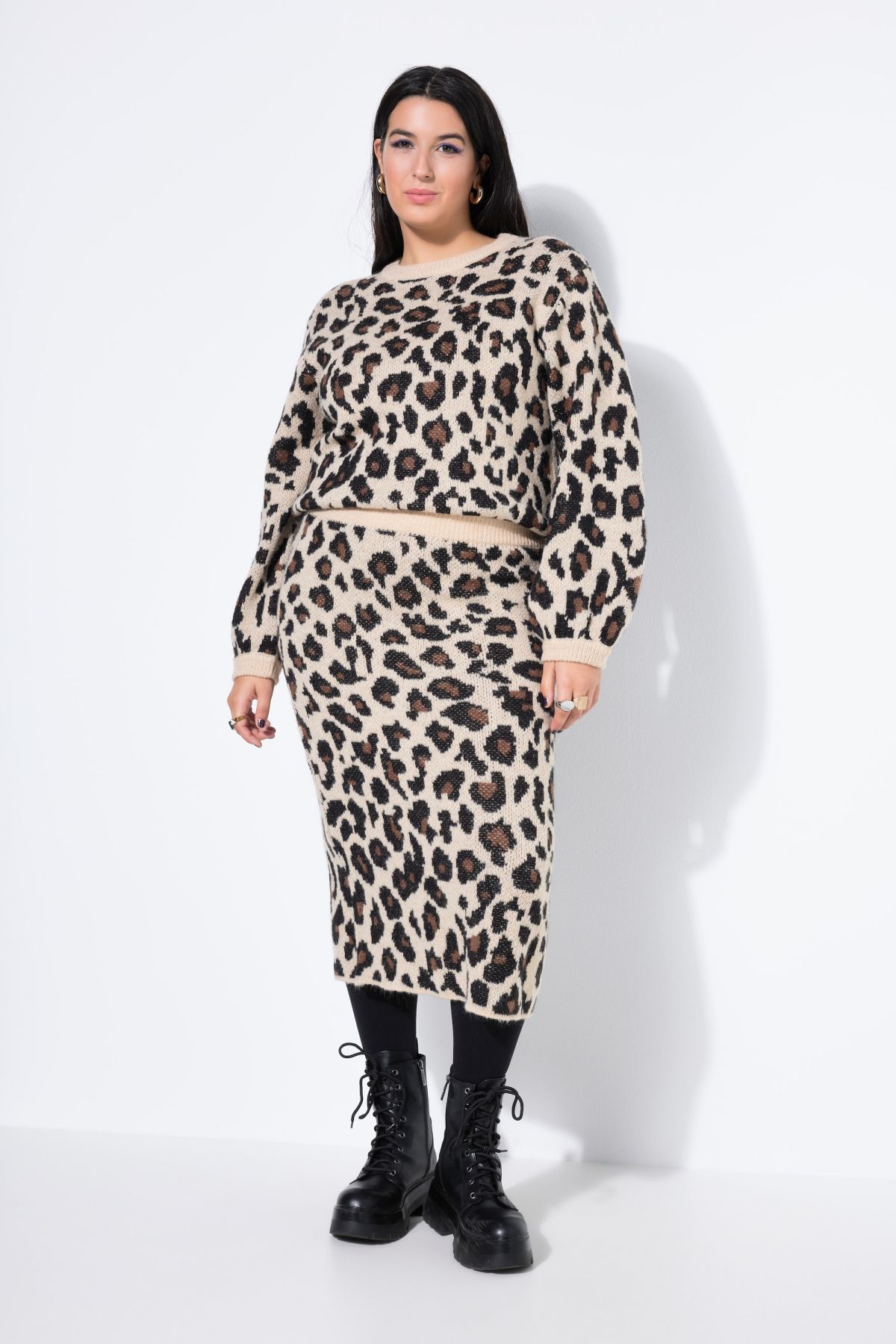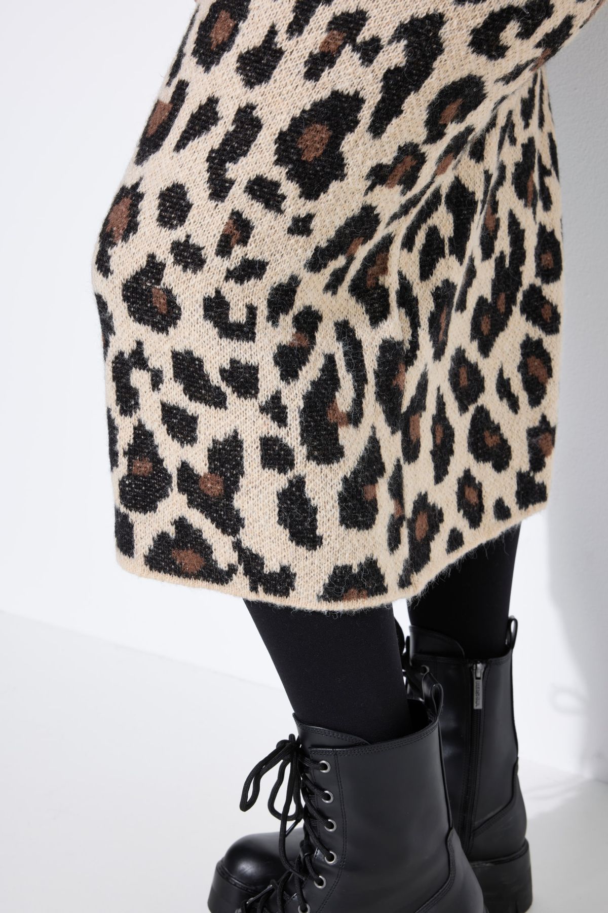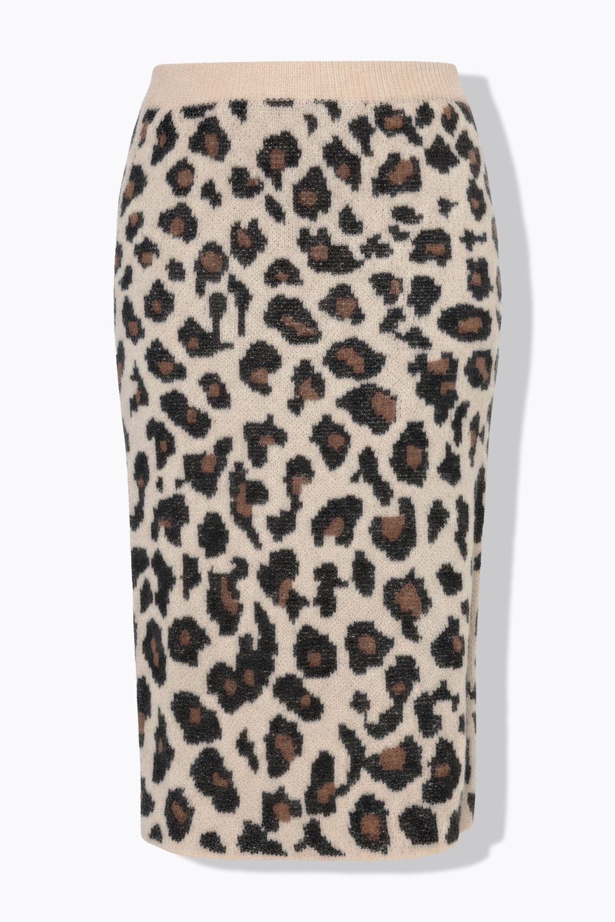 Пола от плетена материя с леопардов принт. С тесен силует и издължена кройка. С еластична талия.