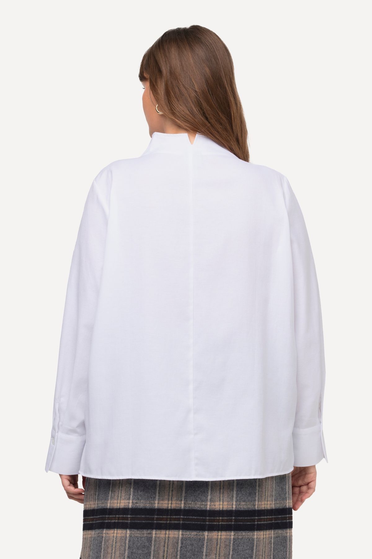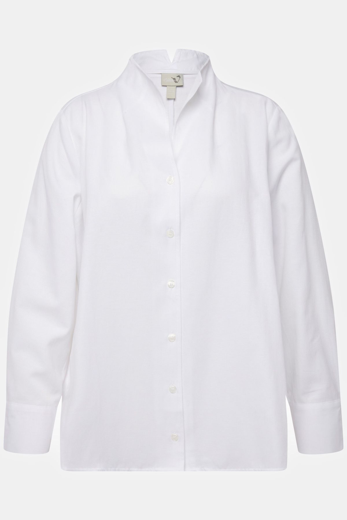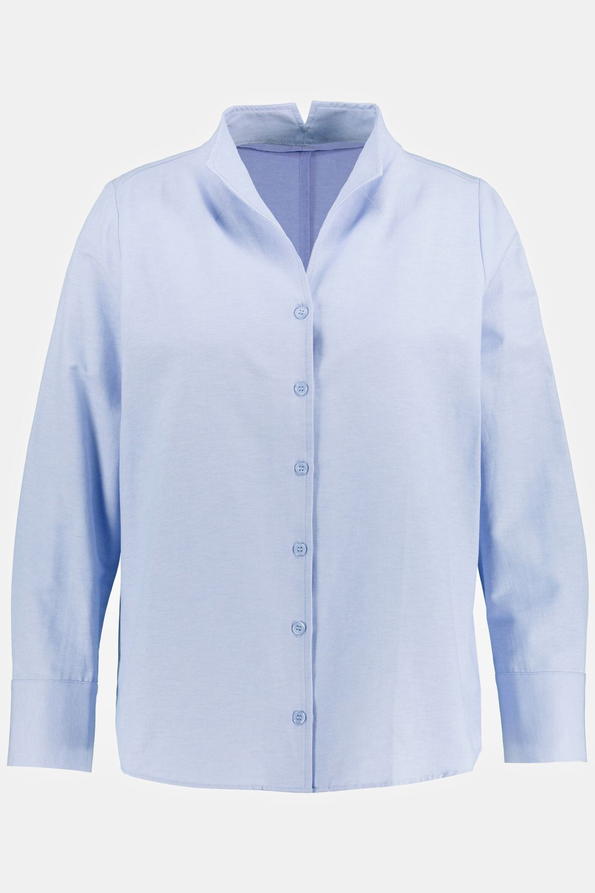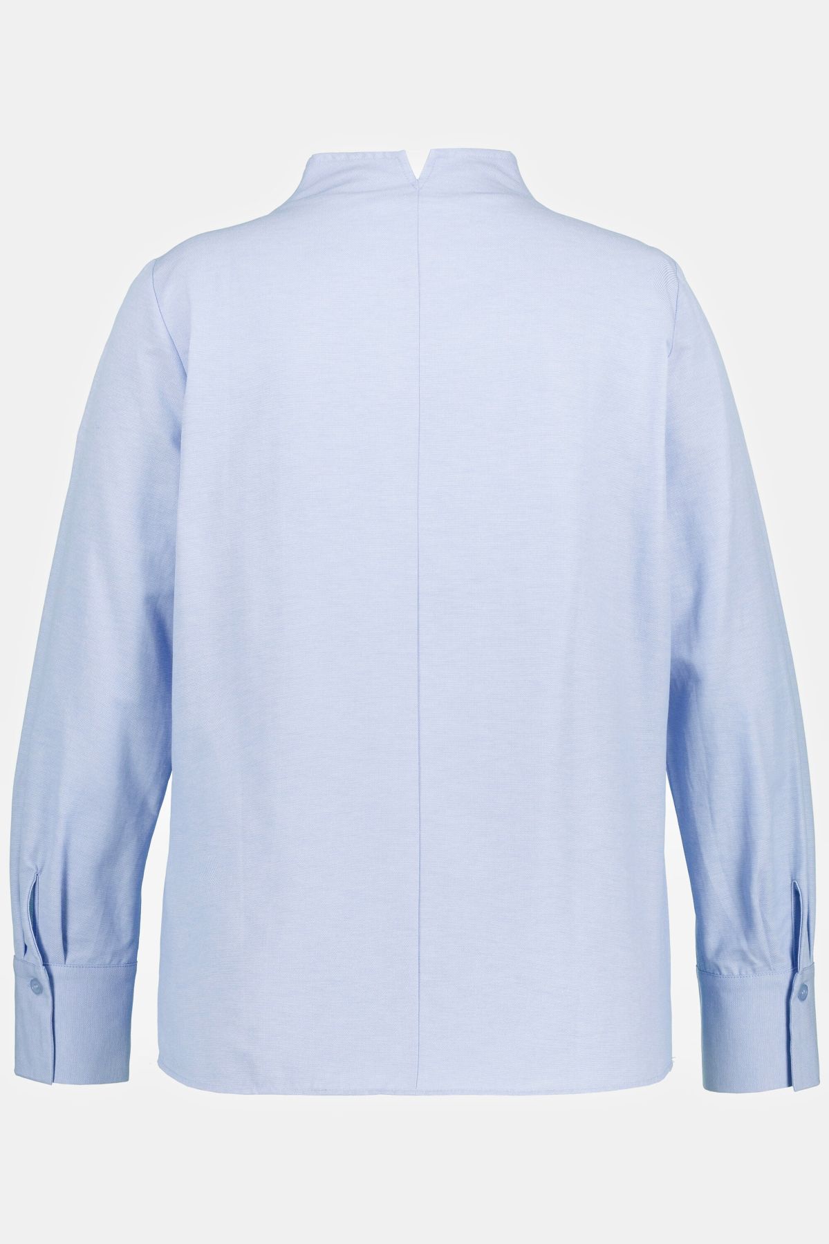 Риза в Оксфордски стил с отворена яка, копчета, дълги ръкави с маншети и странични цепки.