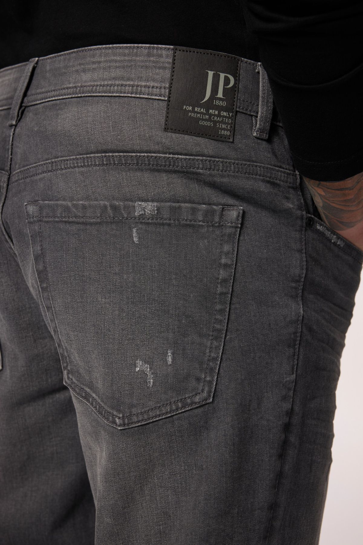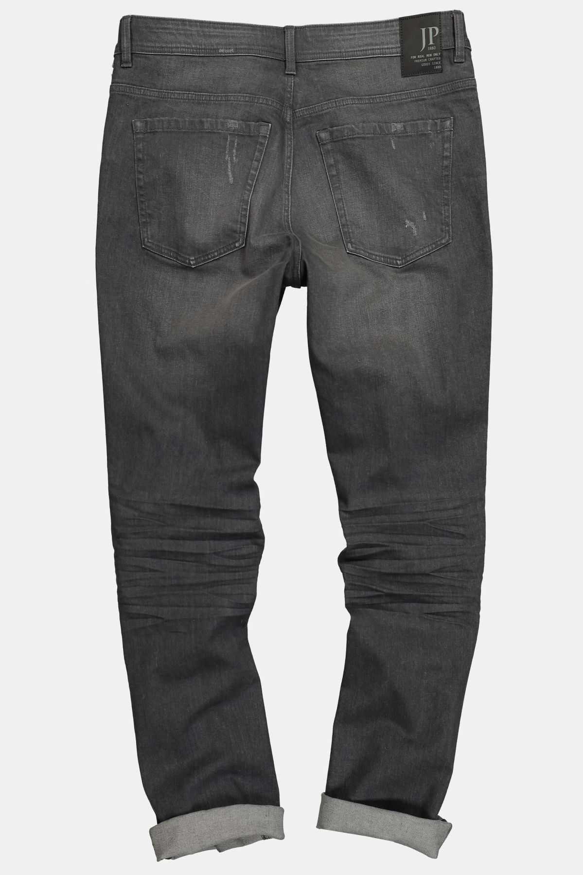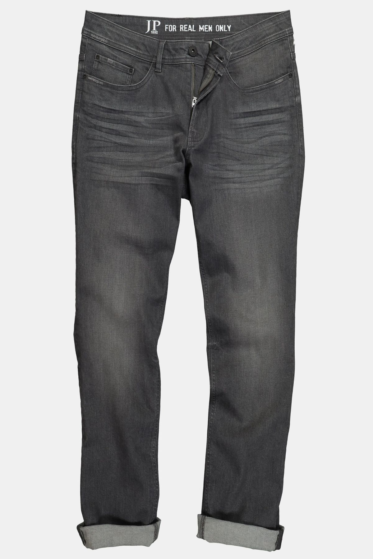 Дънки FLEXNAMIC® с пран ефект и накъсани акценти. Дизайн с 5 джоба, гайки за колан, копче и цип отпред. Идеалният избор за мъже с коремче
