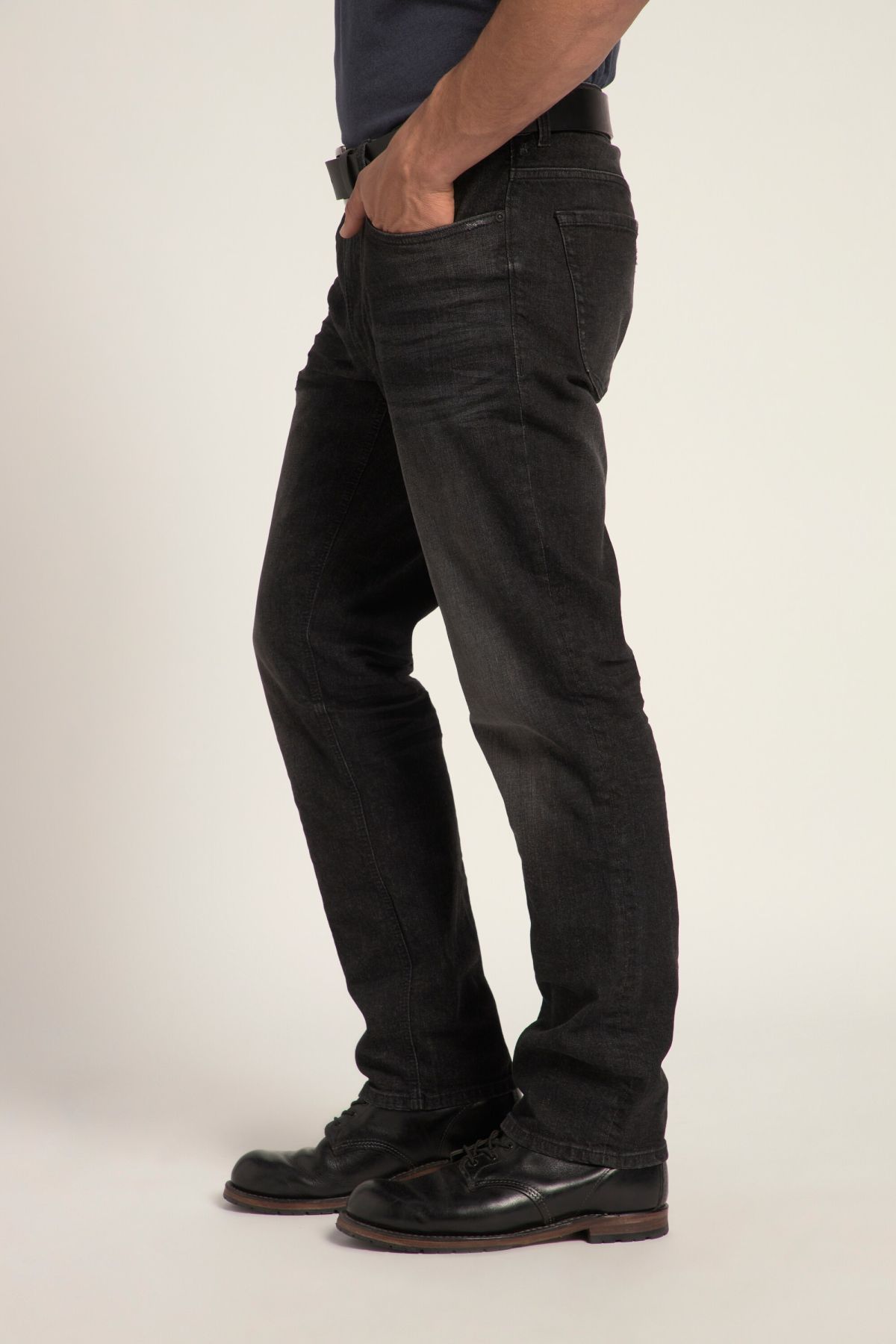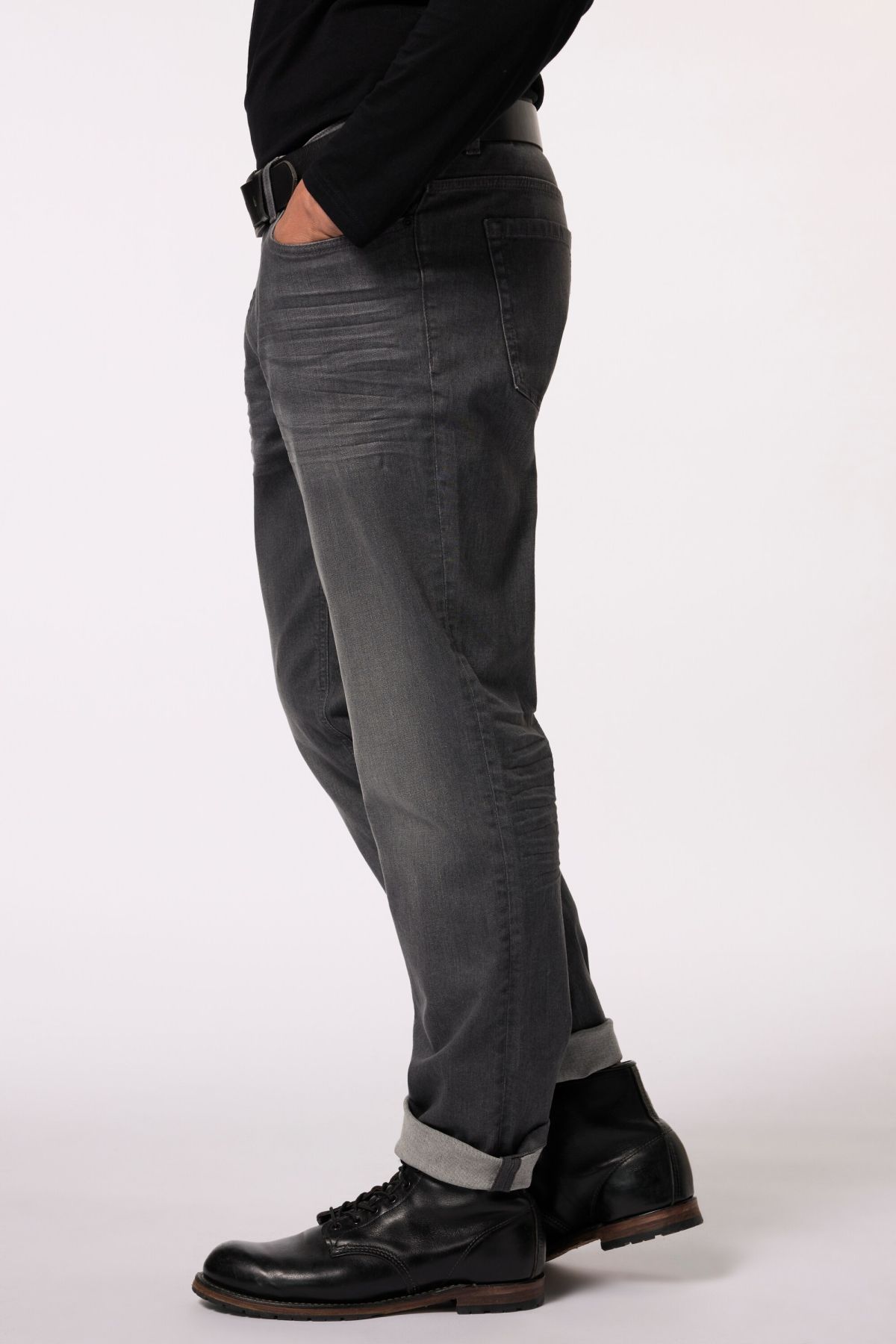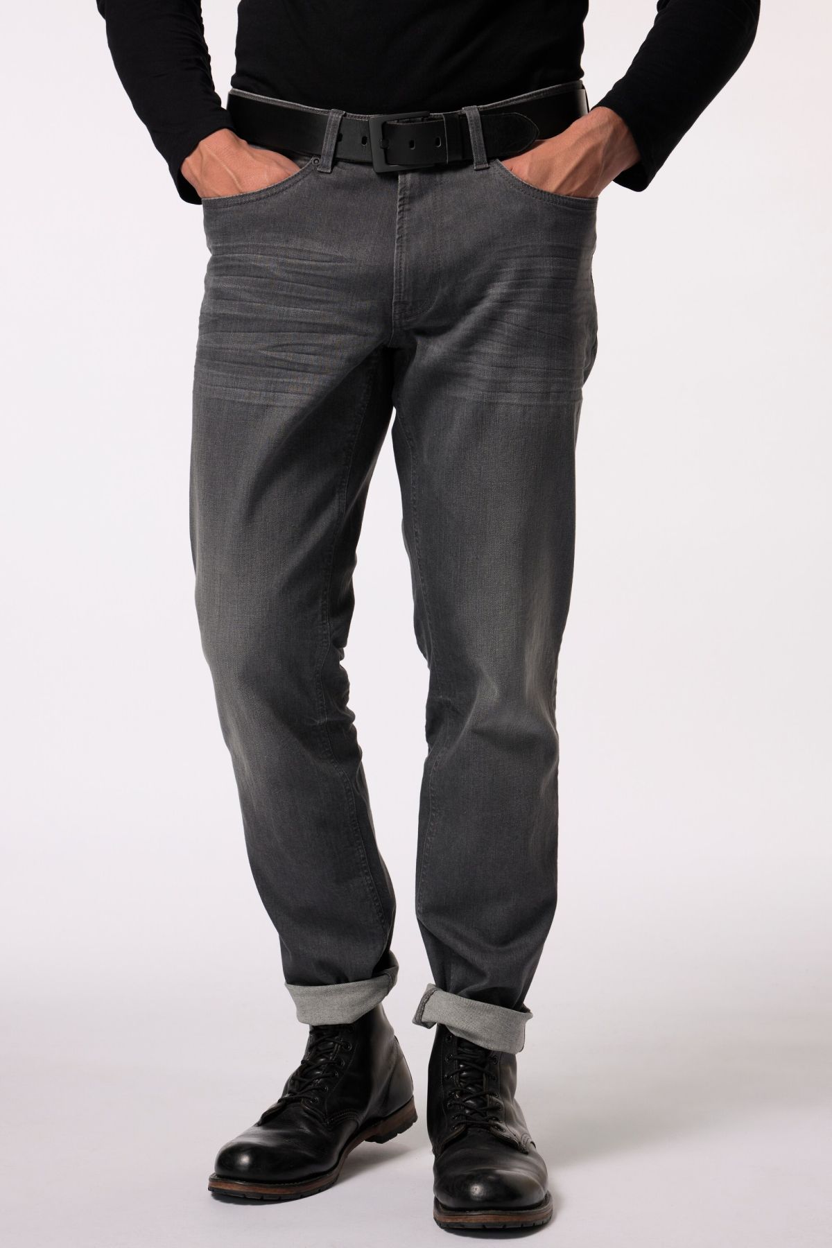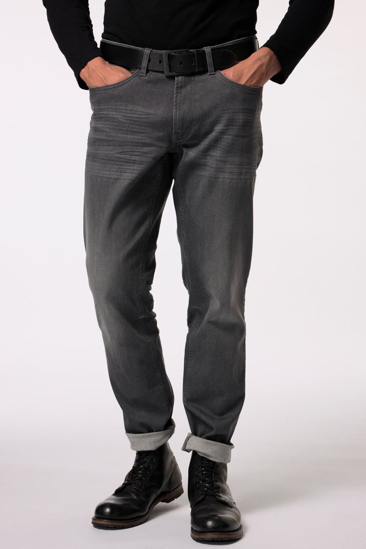 Дънки FLEXNAMIC® с пран ефект и накъсани акценти. Дизайн с 5 джоба, гайки за колан, копче и цип отпред. Идеалният избор за мъже с коремче