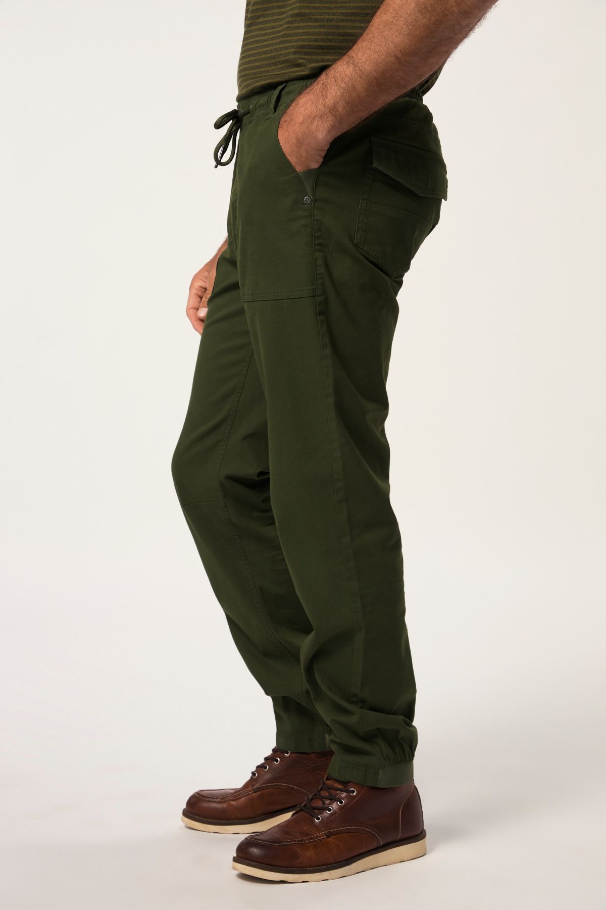 Спортен панталон с модерна кройка и големи джобове. С еластични маншети на крачолите и връзка на талията.