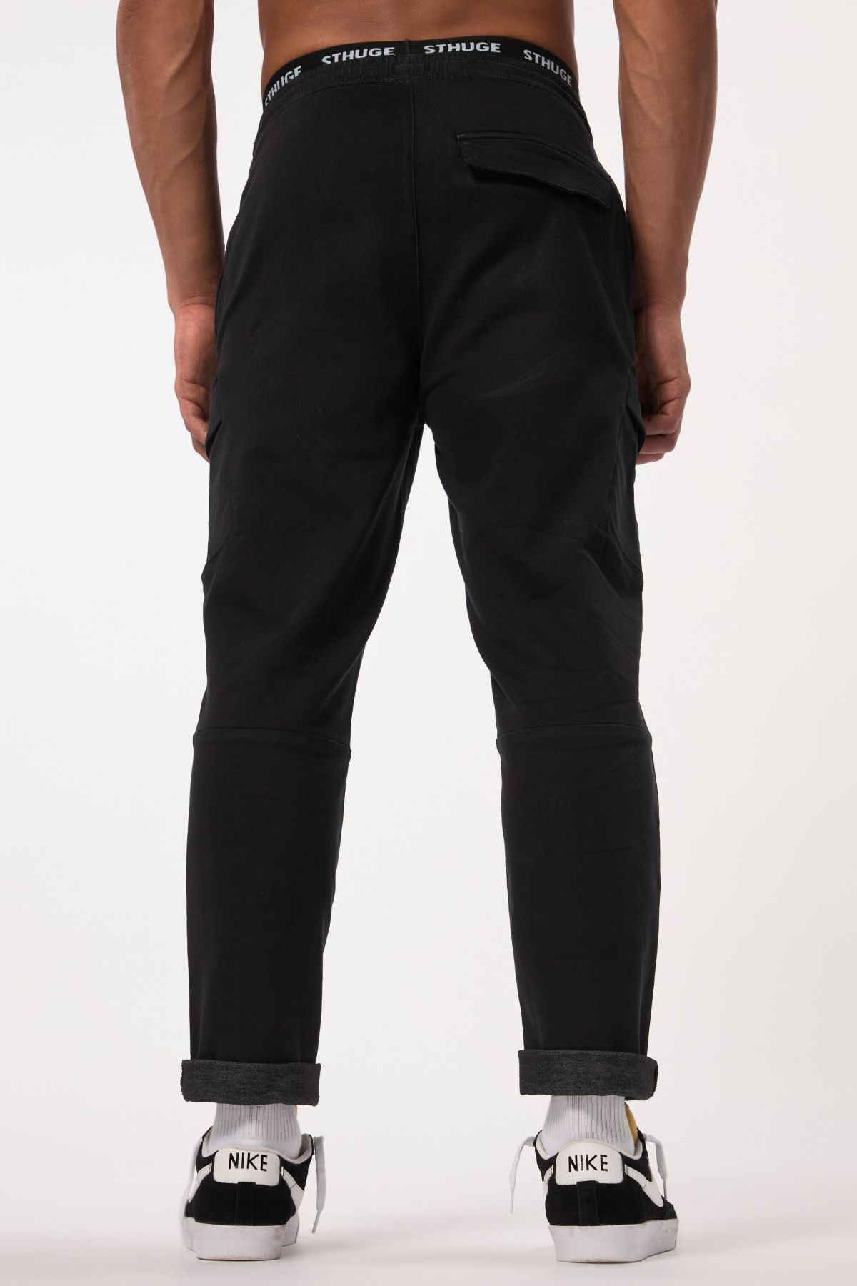 Панталон STHUGE от еластична материя допринасяща за целодневния комфорт. С еластична талия с връзка, 3 джоба, супер големи карго джобове. С модерна кройка с прав силует, улесняващи движенията.