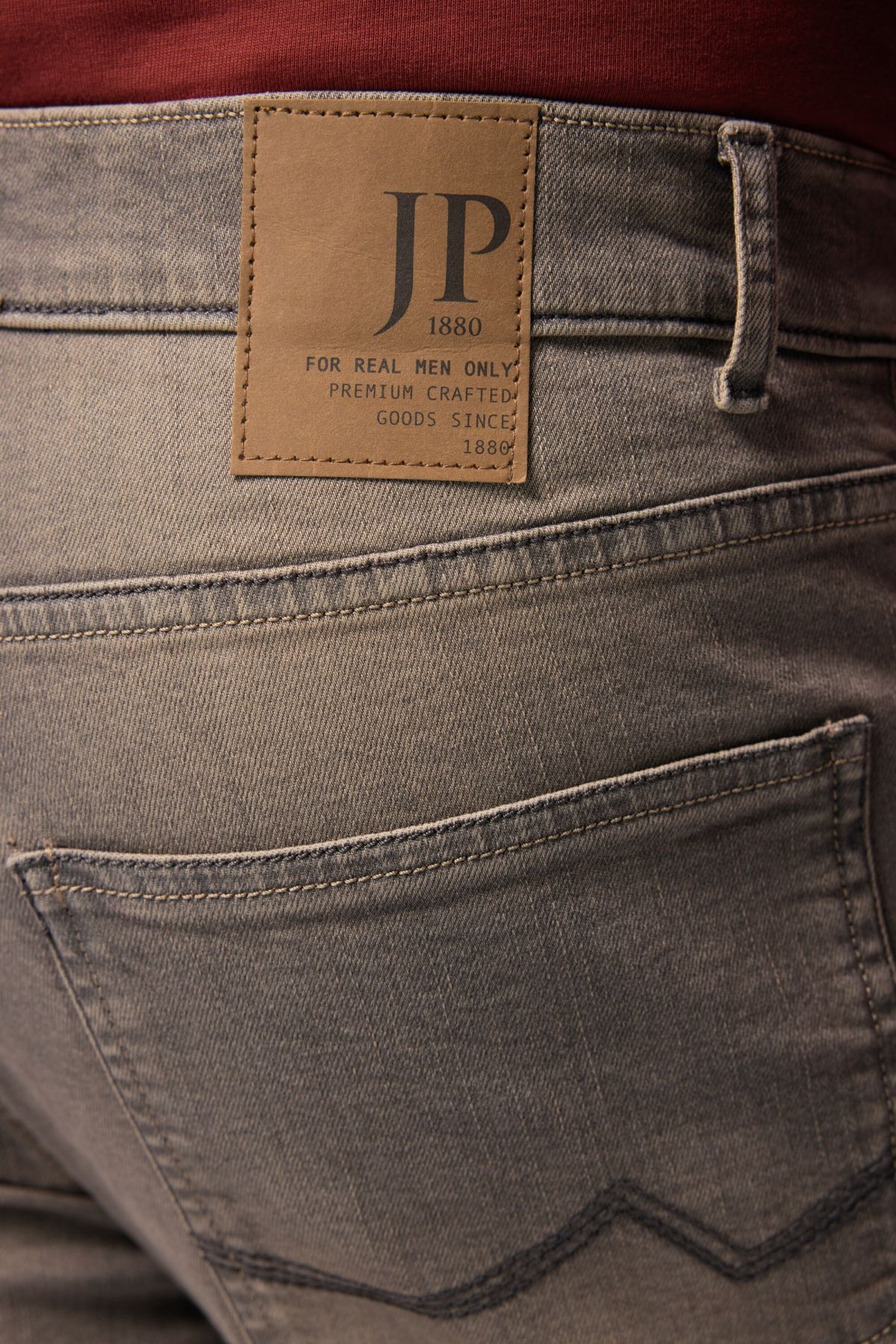 Дънки JP 1880 с права кройка. От мека, еластична материя. С фиксирана талия с гайки за колан, копче и цип отпред. Дизайн с 5 джоба.