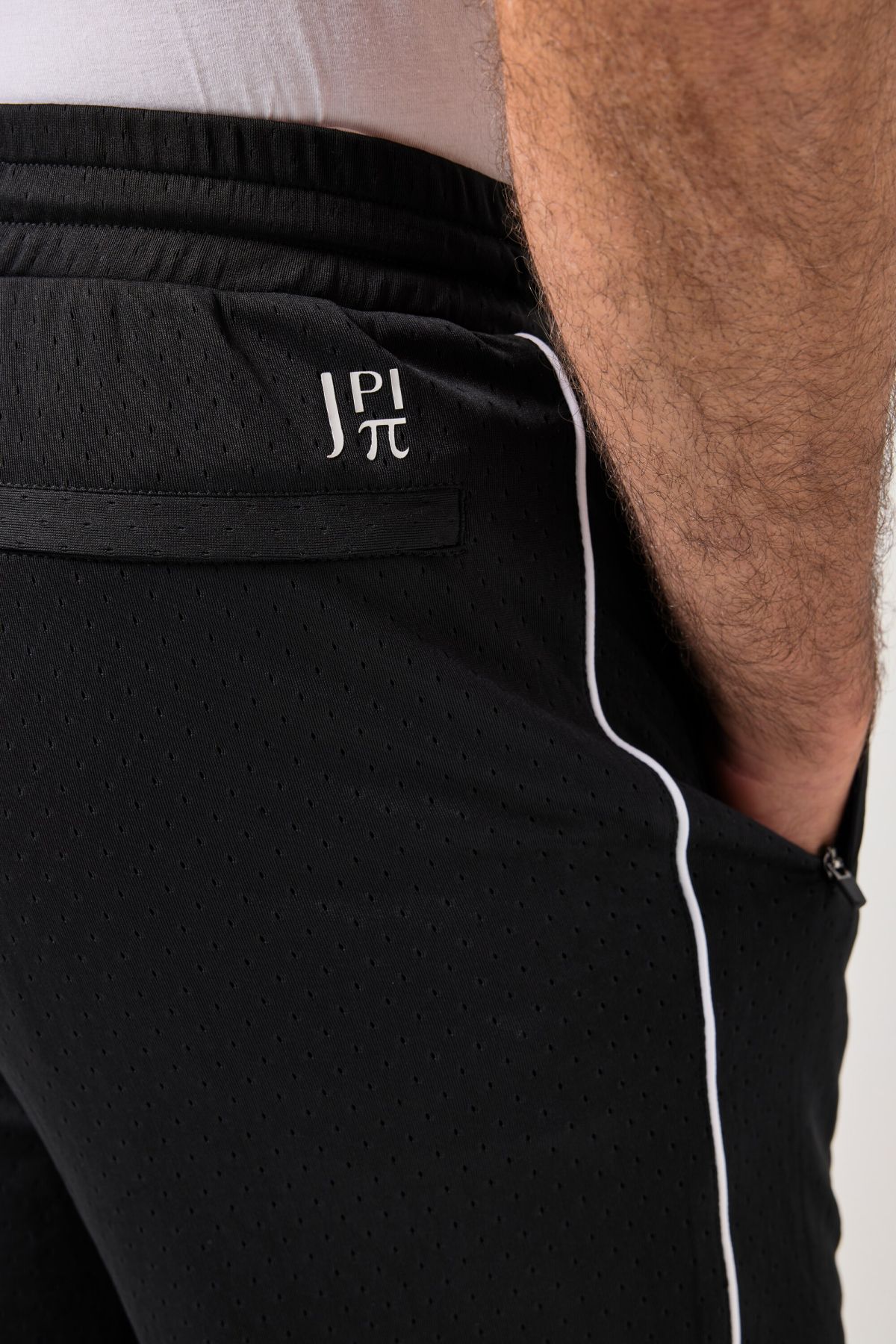 Панталон спортен JAY-PI от мрежеста материя. С еластична талия с връзка, странични джобове. Със заден джоб с цип и права кройка.