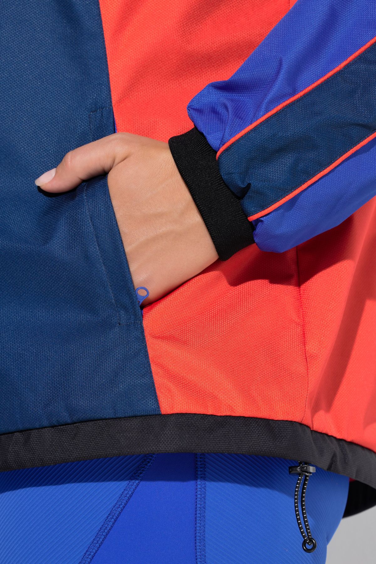 Яке с цветни блокови детайли. С качулка с връзка. Водоотблъскващо, ветроустойчиво и дишащо. С мрежеста подплата и дълъг ръкав еластични маншети. Два странични джоба, закопчаване с цип и регулируем подгъв с връзка.