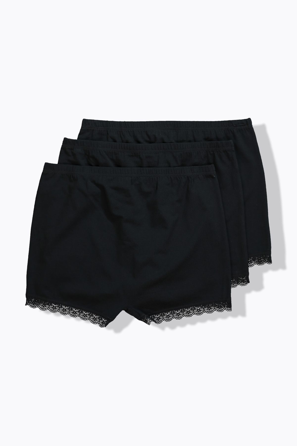 Комплект от 3 броя боксерки с деликатни дантелени акценти. С женствено усещане и дантела на крачолите. С еластична талия.