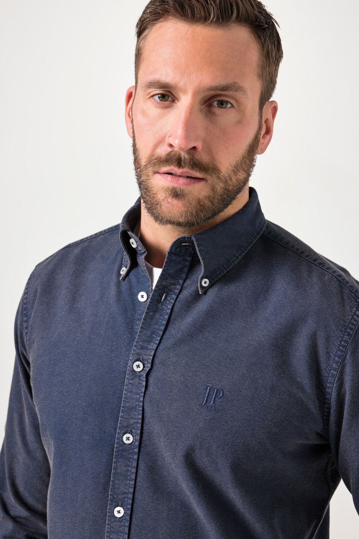 Риза JP1880 изработена по технология FLEXNAMIC®. С дълъг ръкав с маншет и класическа яка. С бродерия на гърдите и с копчета. От високо еластична материя.