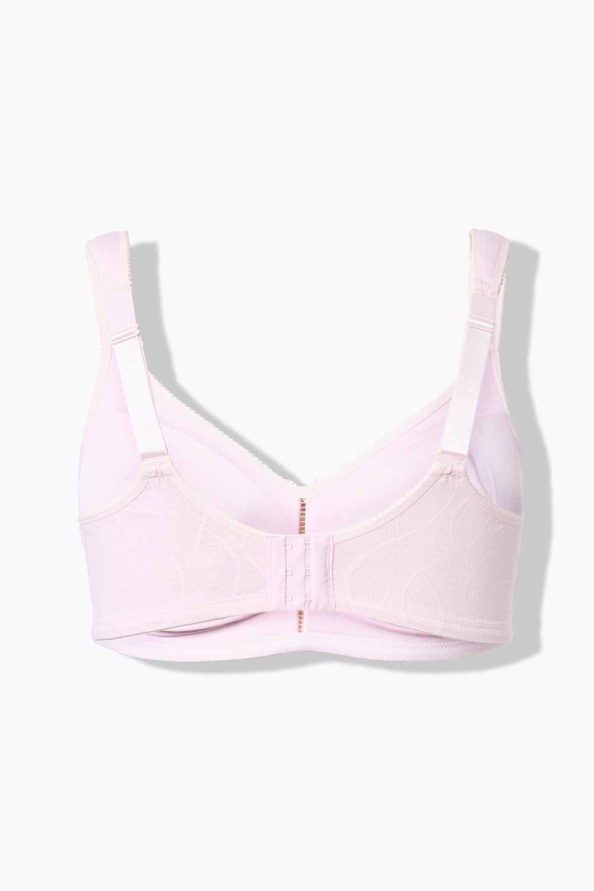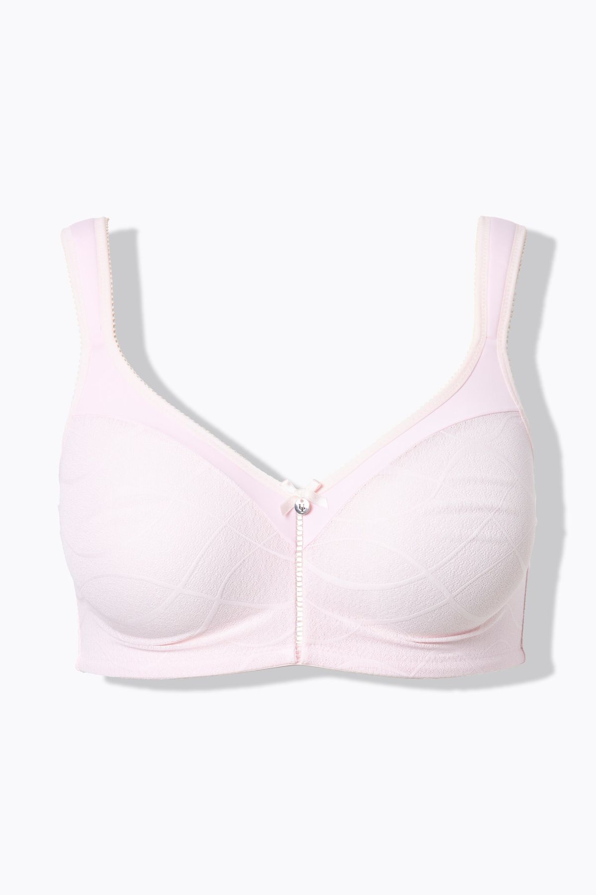Мек сутиен без банели с широки, меко подплатени и регулируеми презрамки. Чашки с дантела, памучна подплата и декоративна панделка. Повдигната задна част и задно закопчаване.