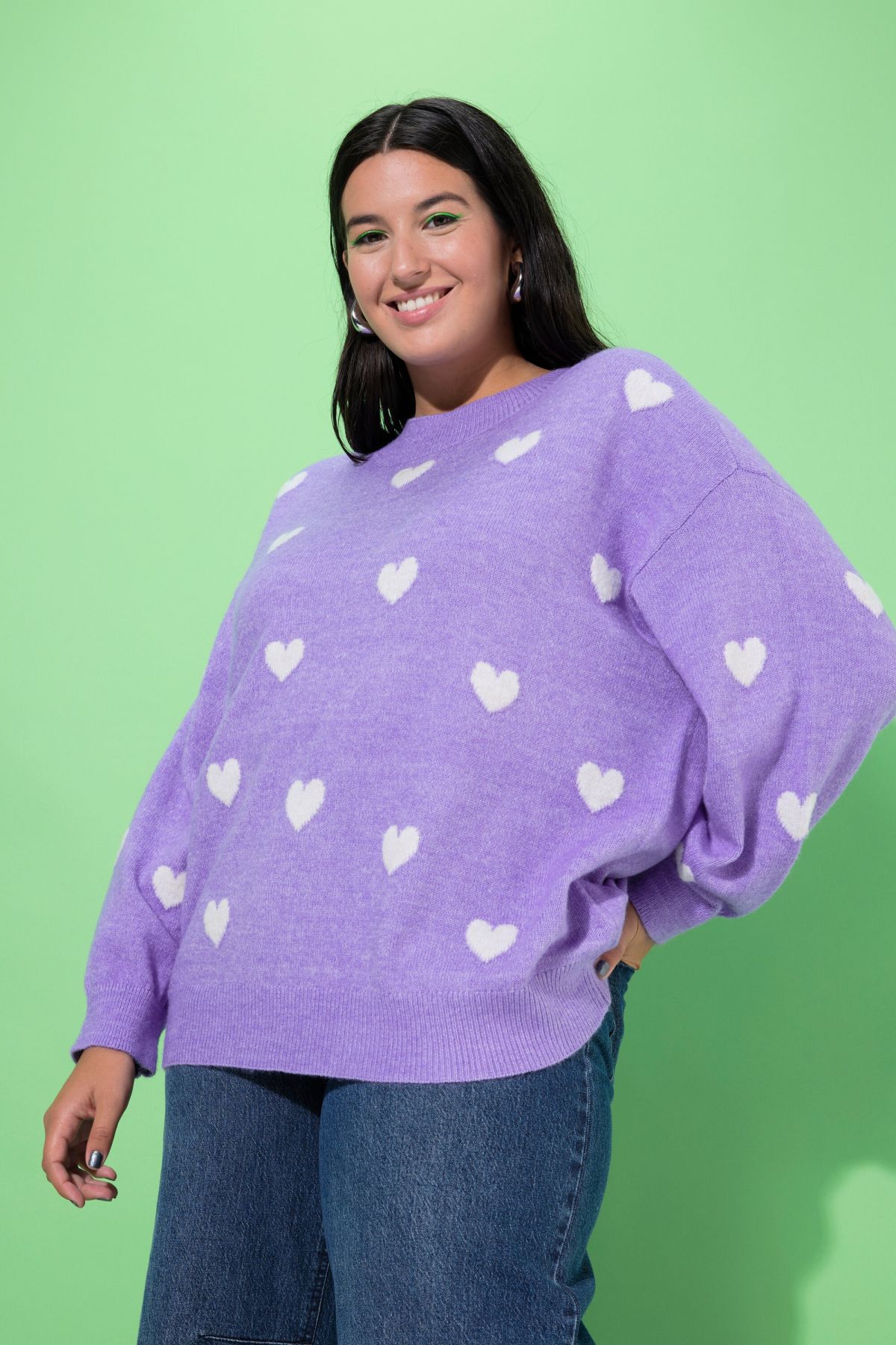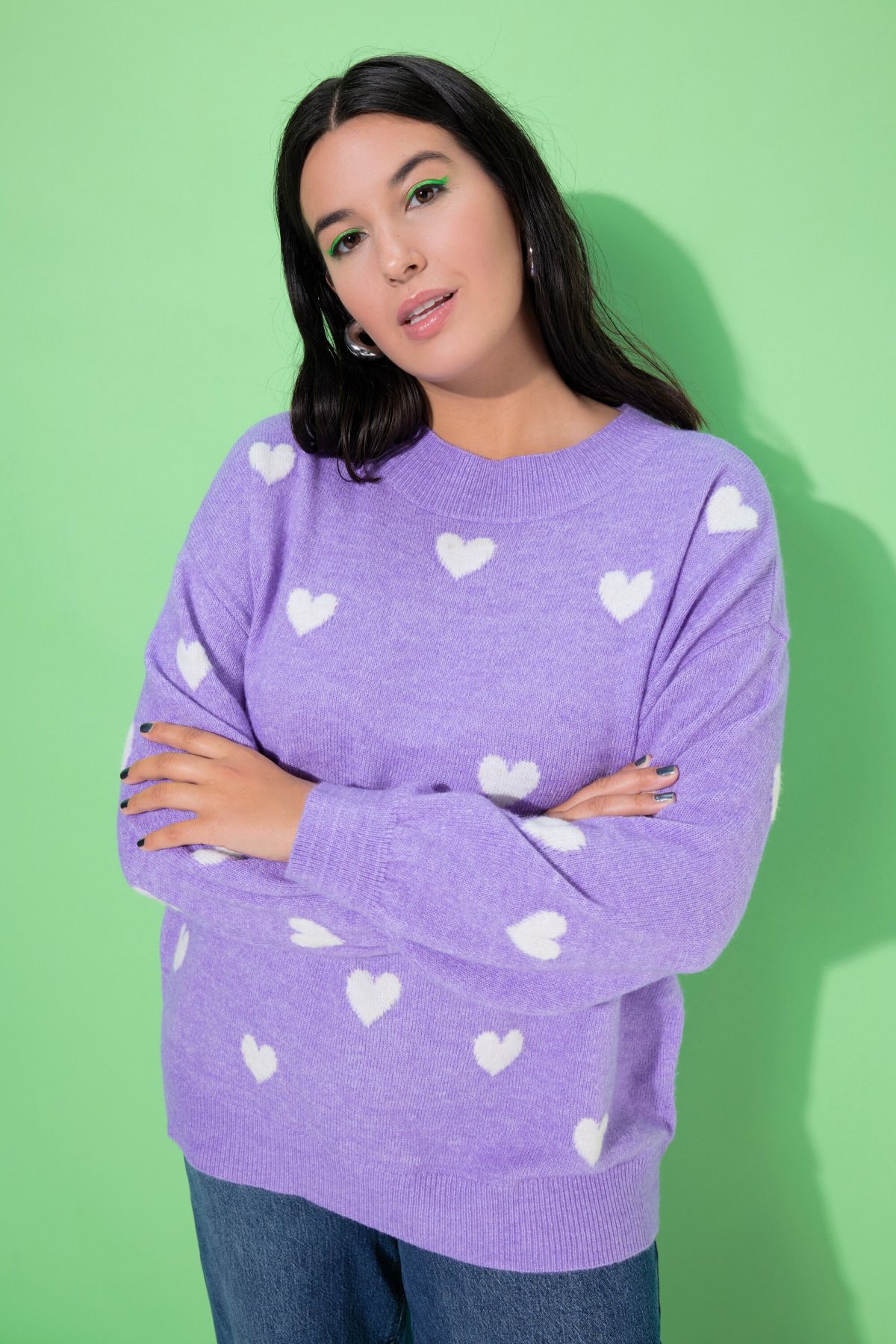 Пуловер с овърсайз силует. С кръгло деколте по врата и дълги ръкави с рипсени маншети. От мека, комфортна за ежедневието материя.