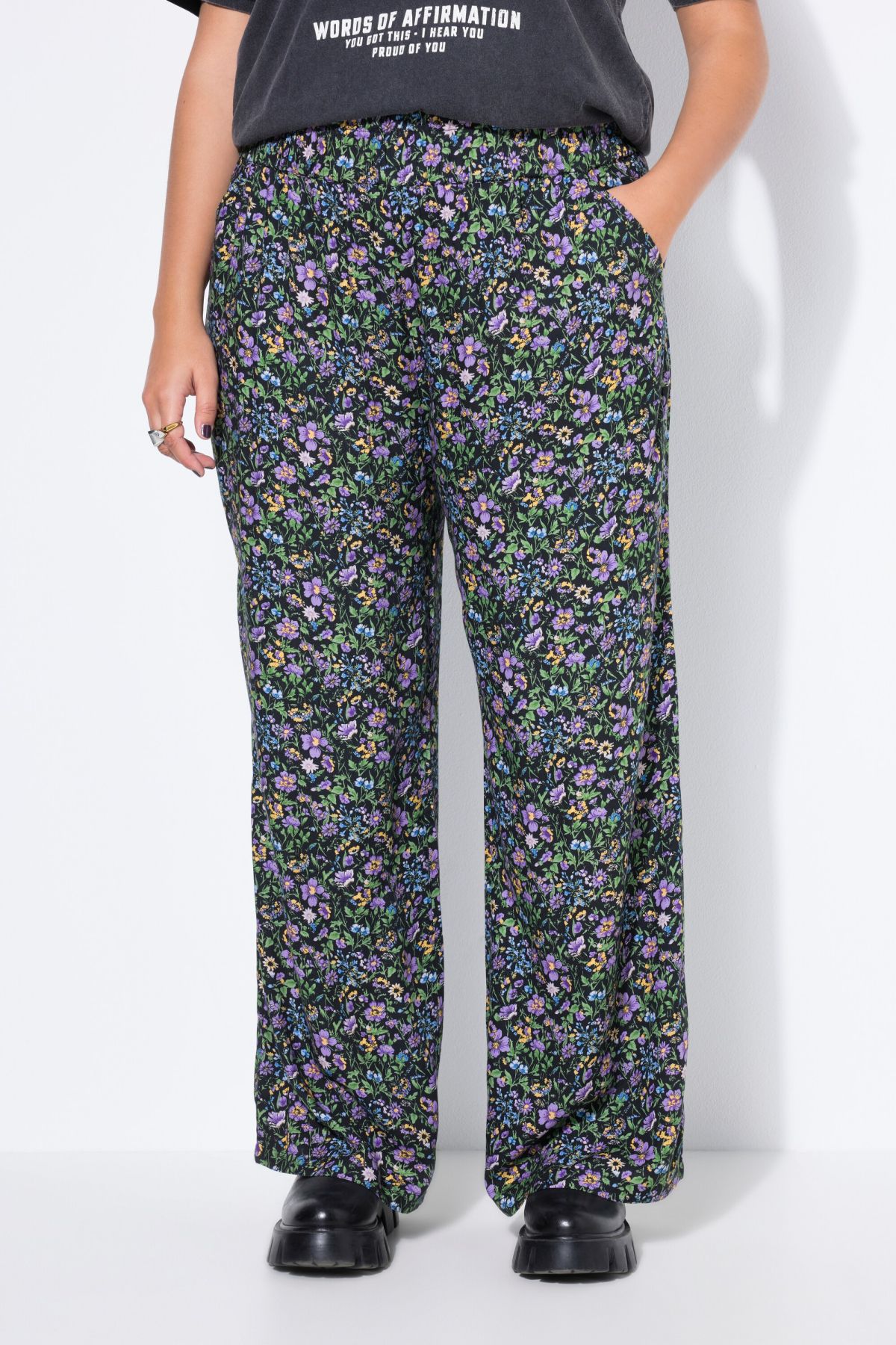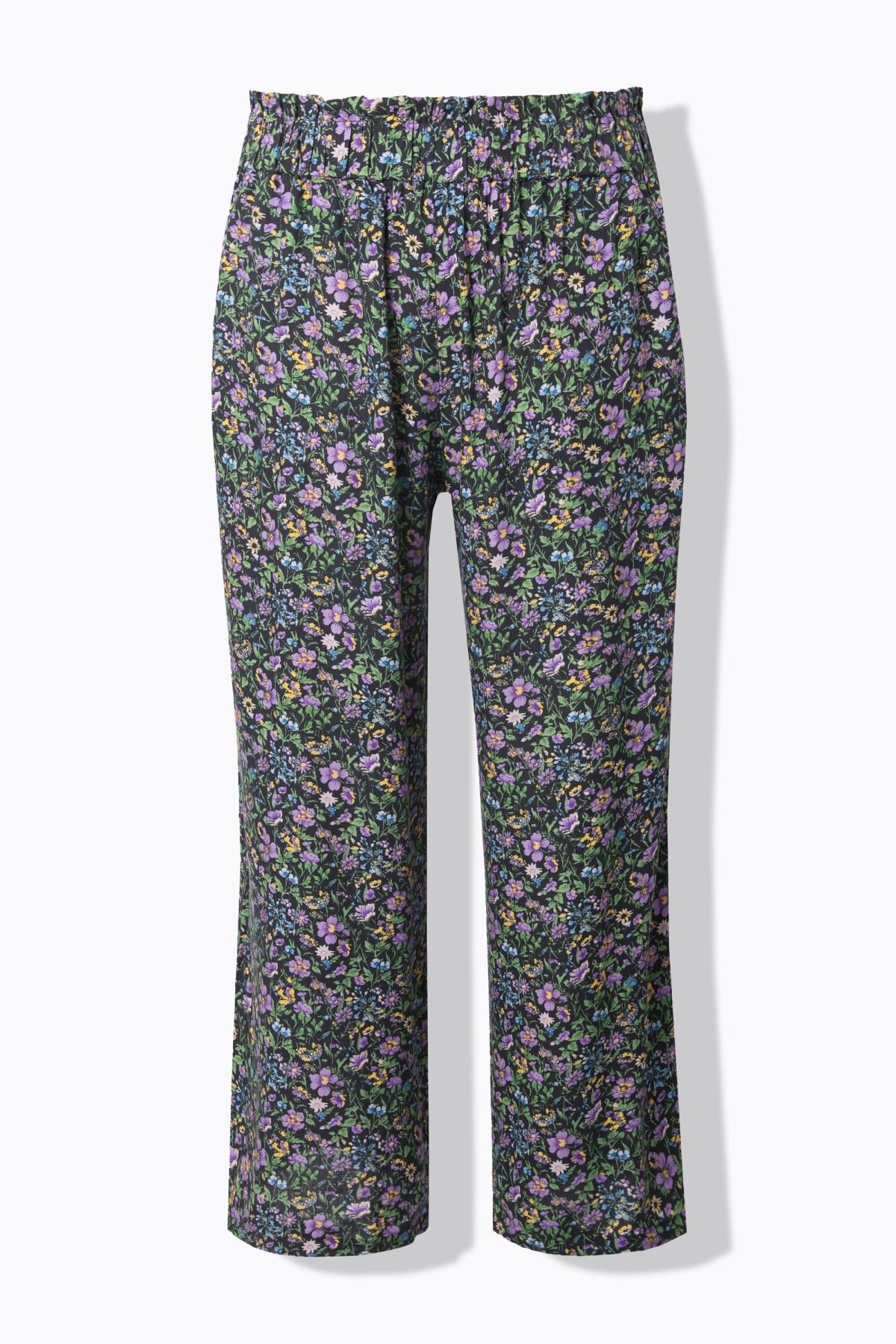Широки крачоли, висока талия, цветя, мека вискоза, еластична талия, вътрешен шев приблизително 78 см.