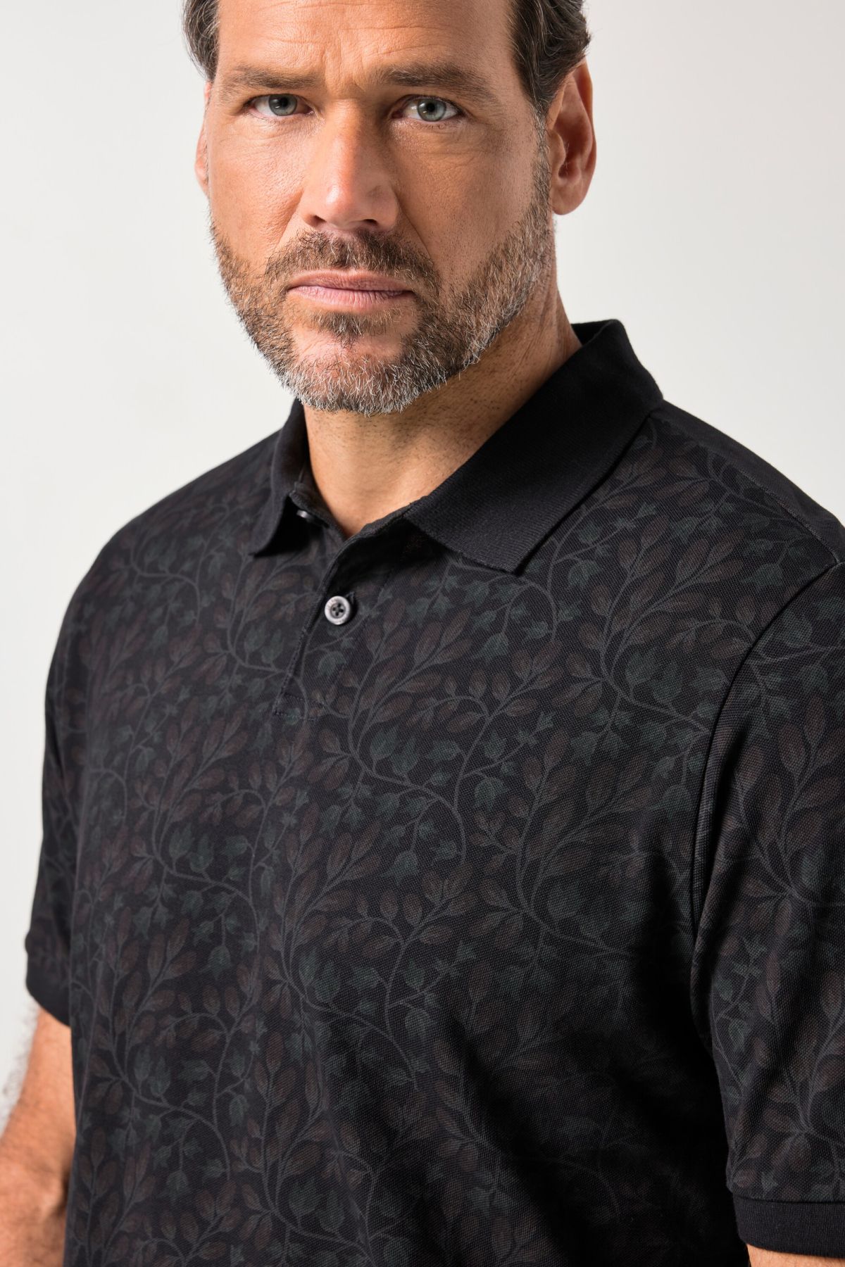 Тениска с яка, копчета на деколтето и винтидж визия. Дизайн с принт на гърдите и къси ръкави.