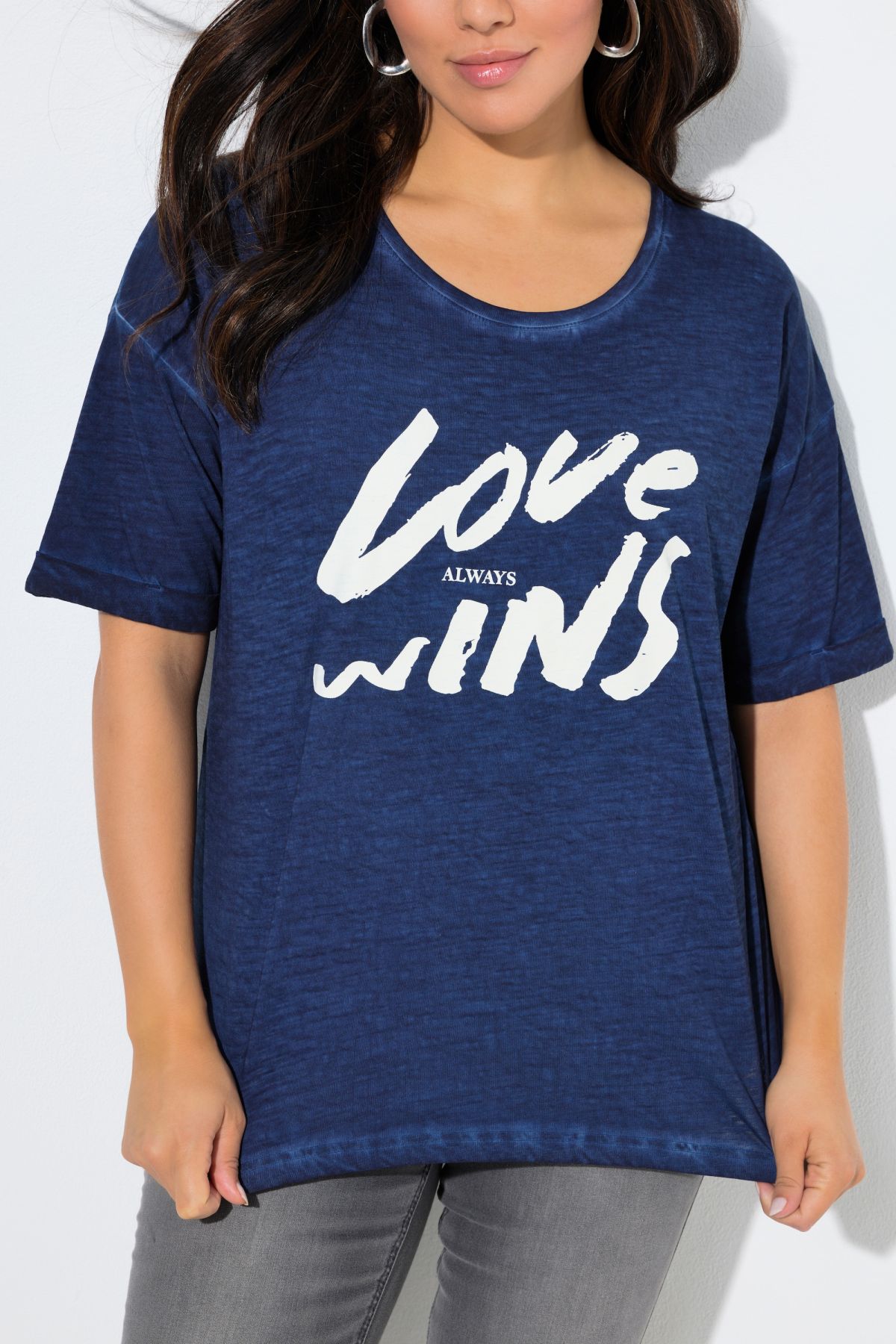 Тениска с надпис и кръгло деколте