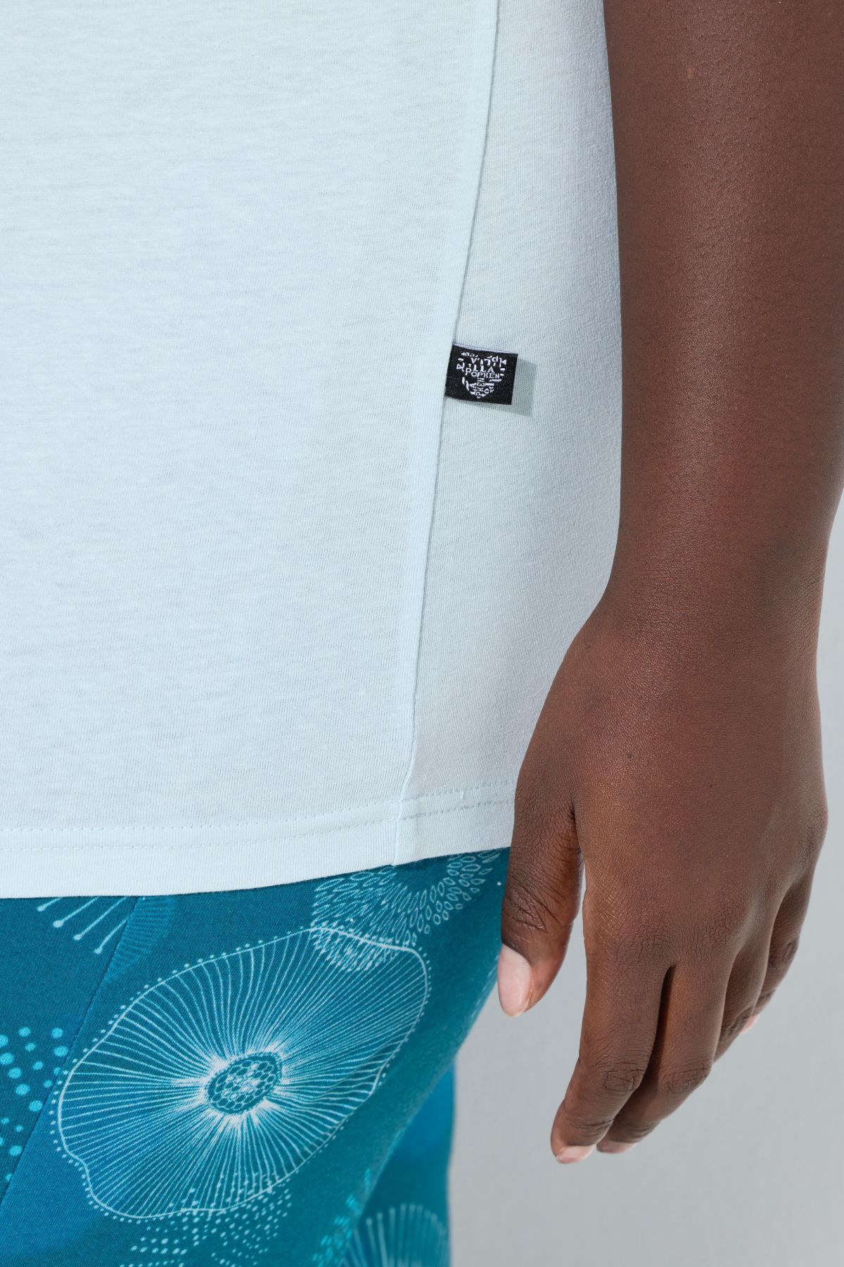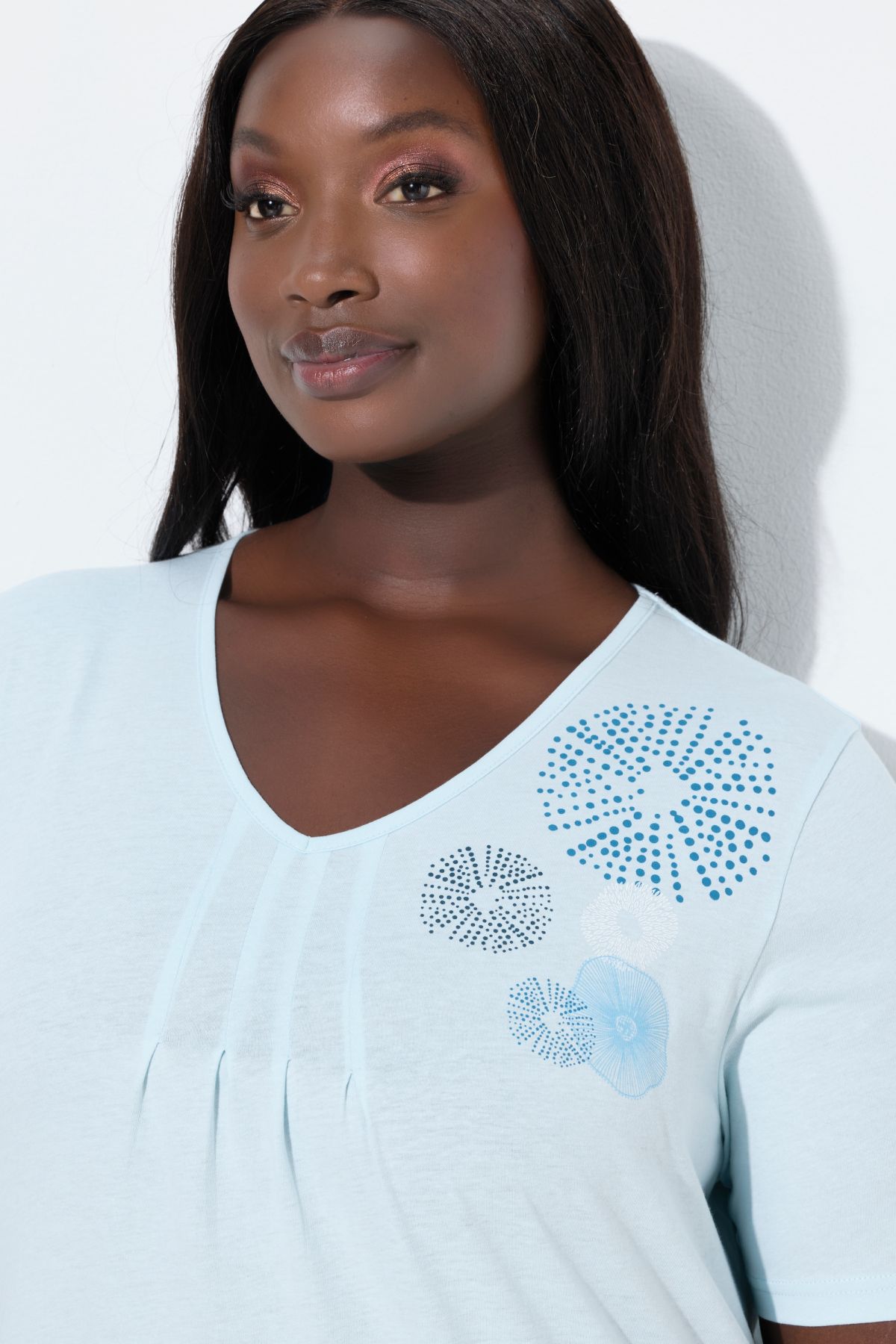 Пижама от 2 части с геометричен флорален принт. С едноцветно горнище с кръгло деколте и къси ръкави. С долнище с мотиви, еластична талия и прави крачоли с еластичен маншет