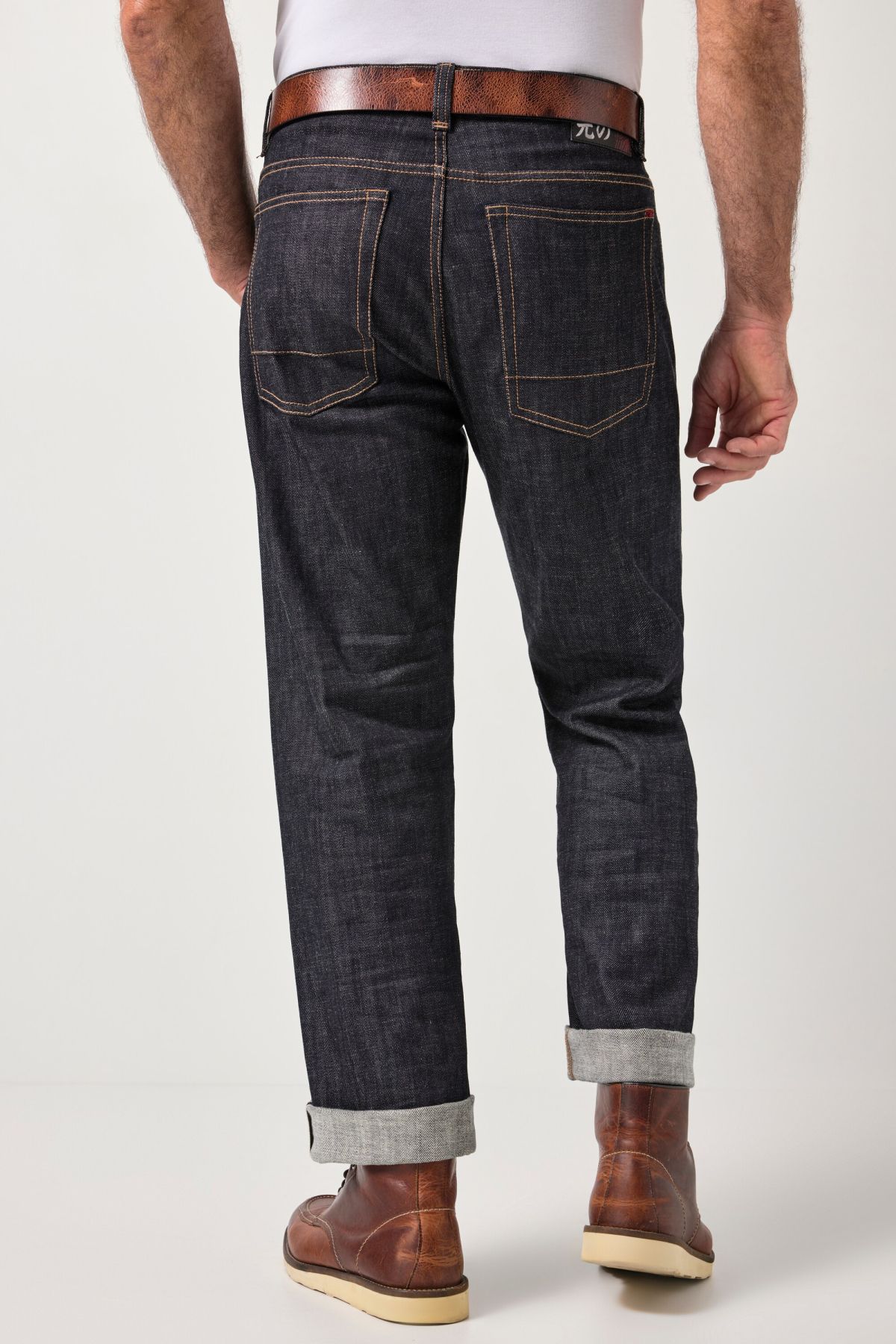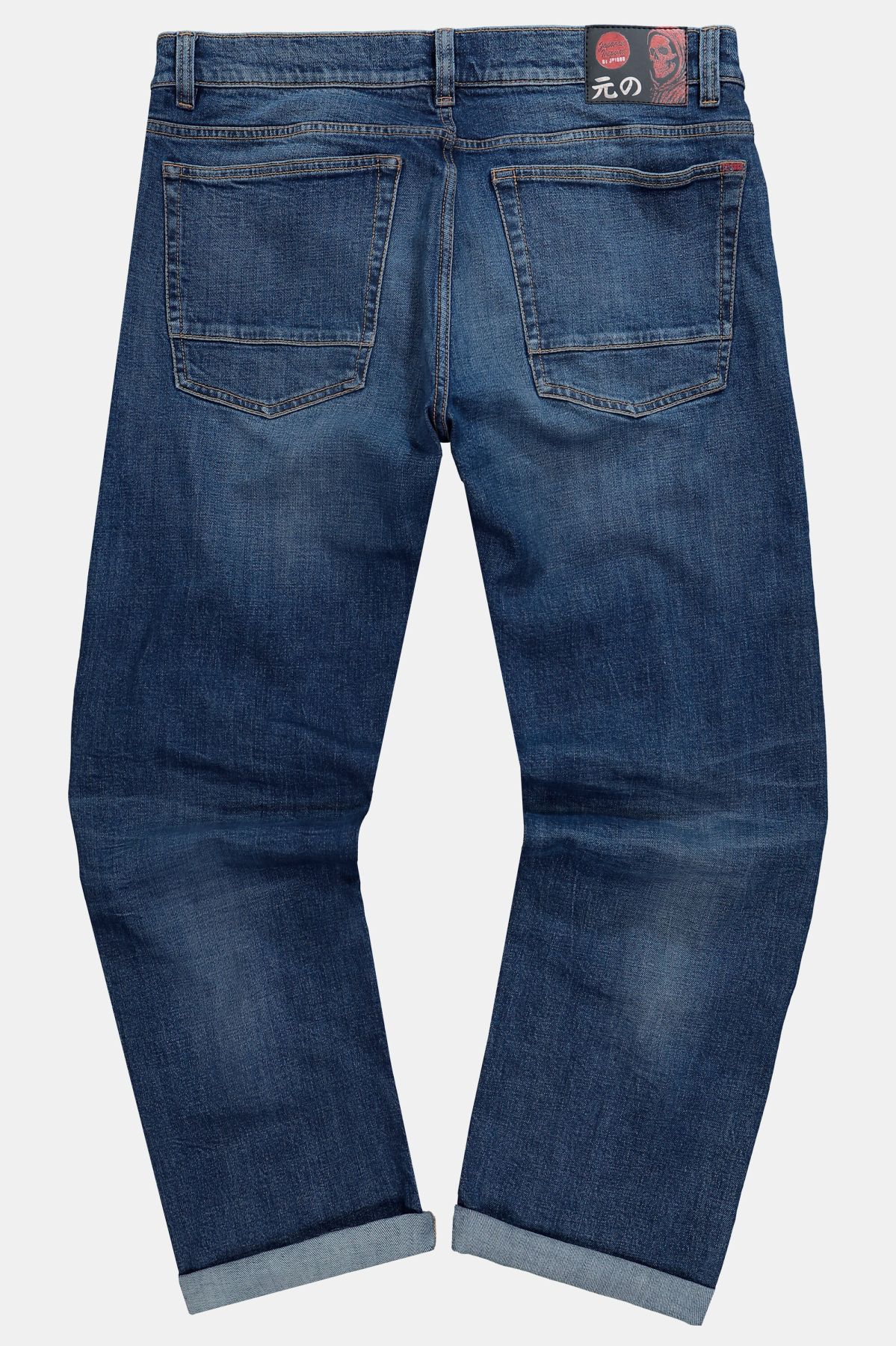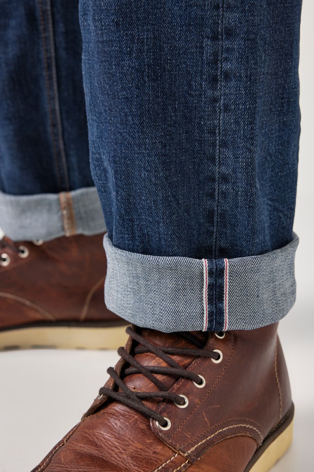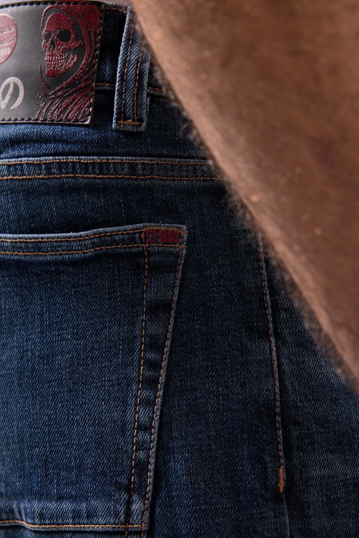 Дънки с класическа кройка с модерни джобове. С фиксирана талия с гайки за колан, копче и цип отпред. С прави крачоли.