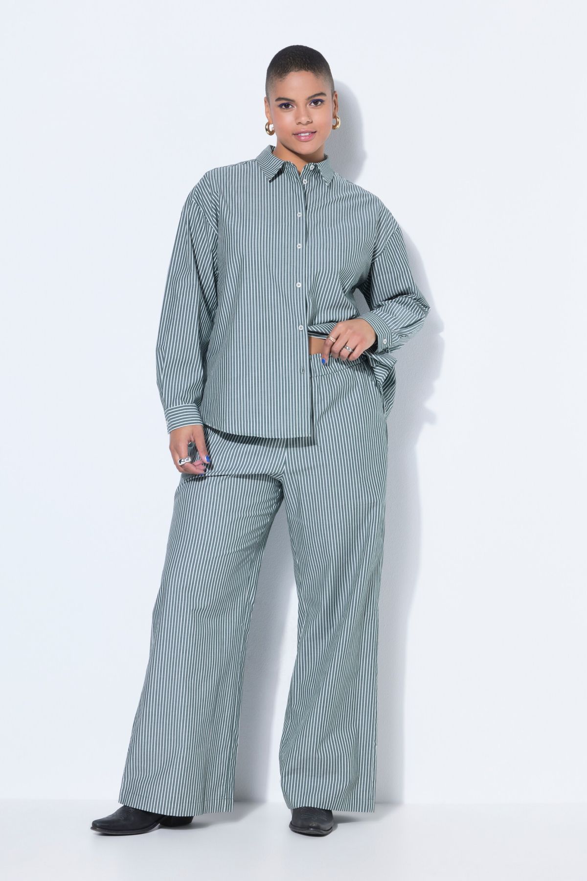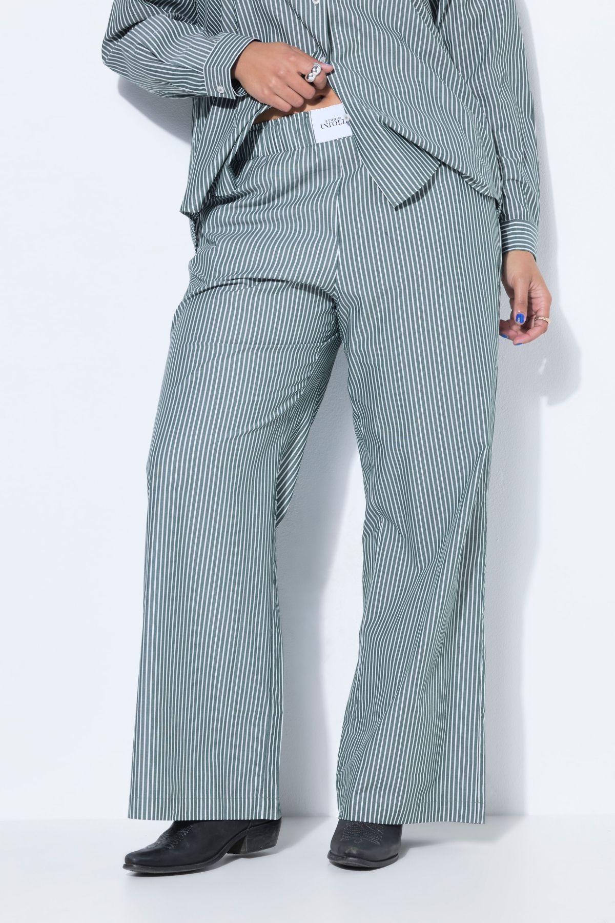 Широк панталон с раиран принт. С еластична талия и странични джобове. Мек и комфортен за ежедневието.