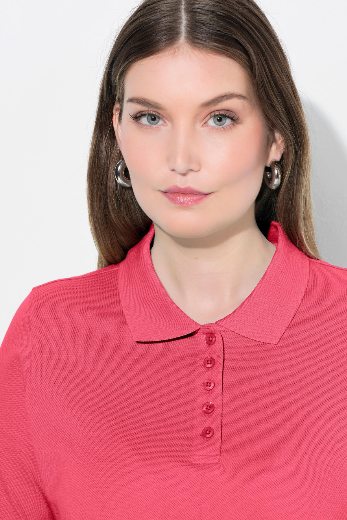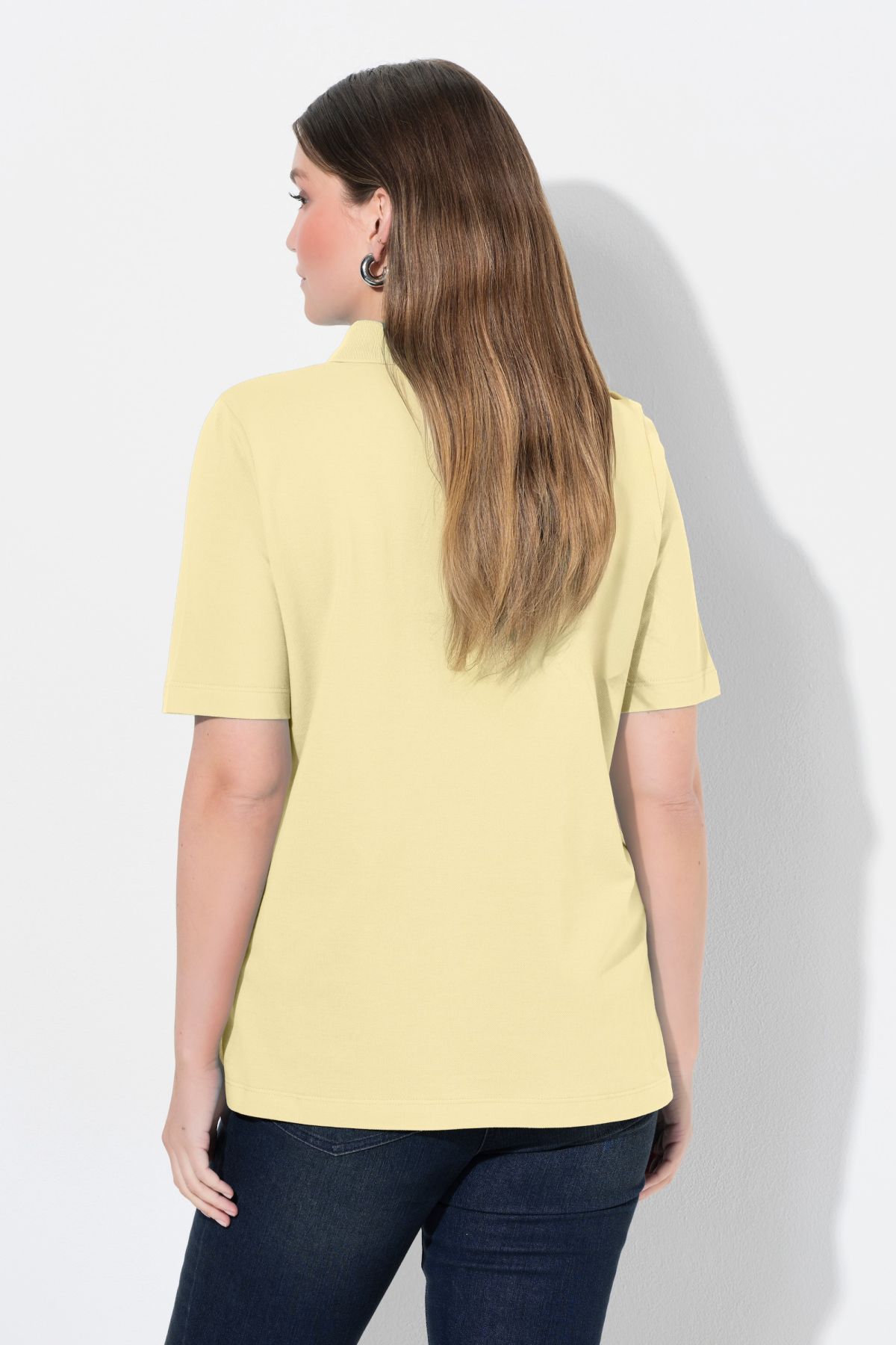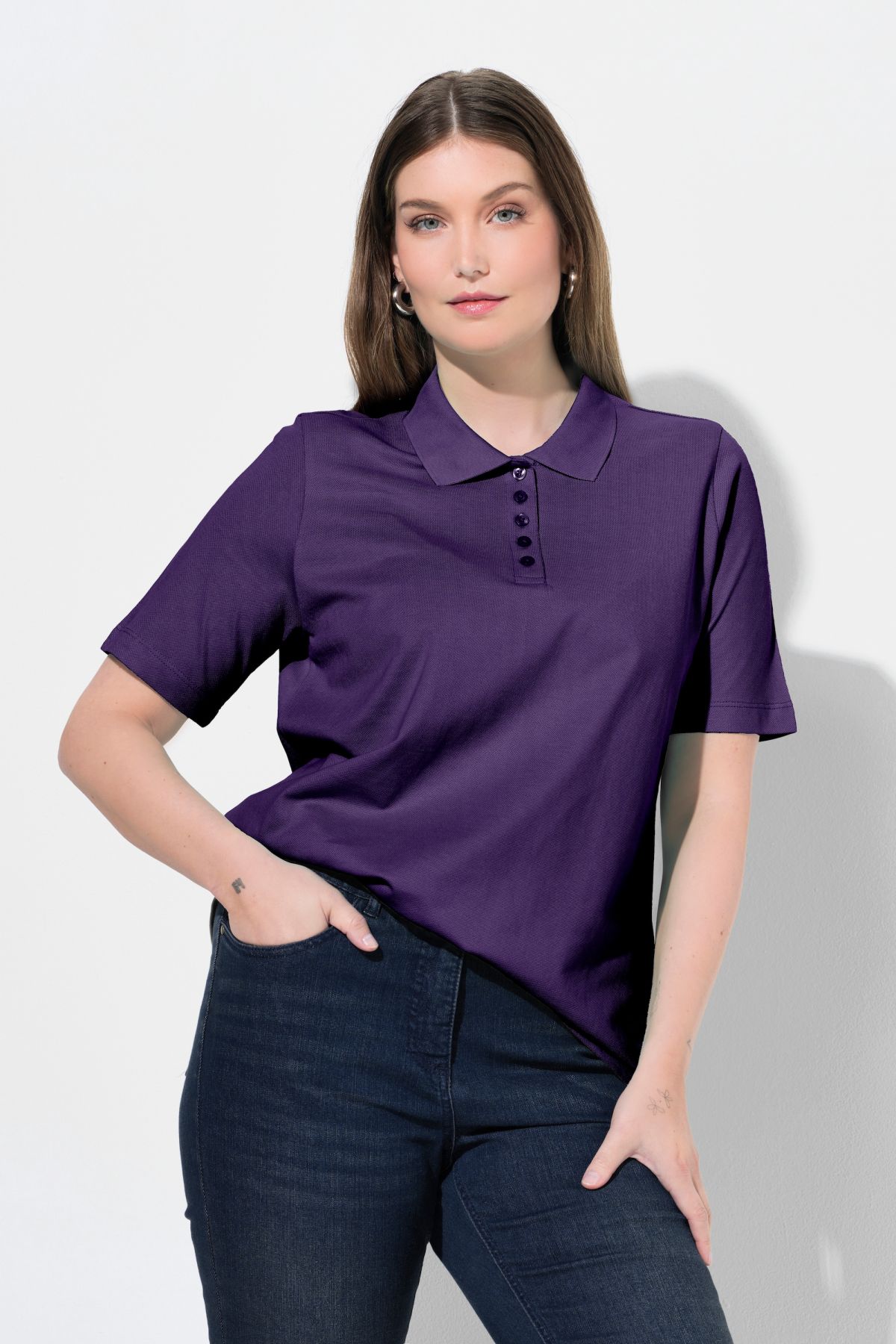 Блуза с яка с копчета. С базова визия с А - линия на силуета и къси ръкави. Мека, памучна материя.