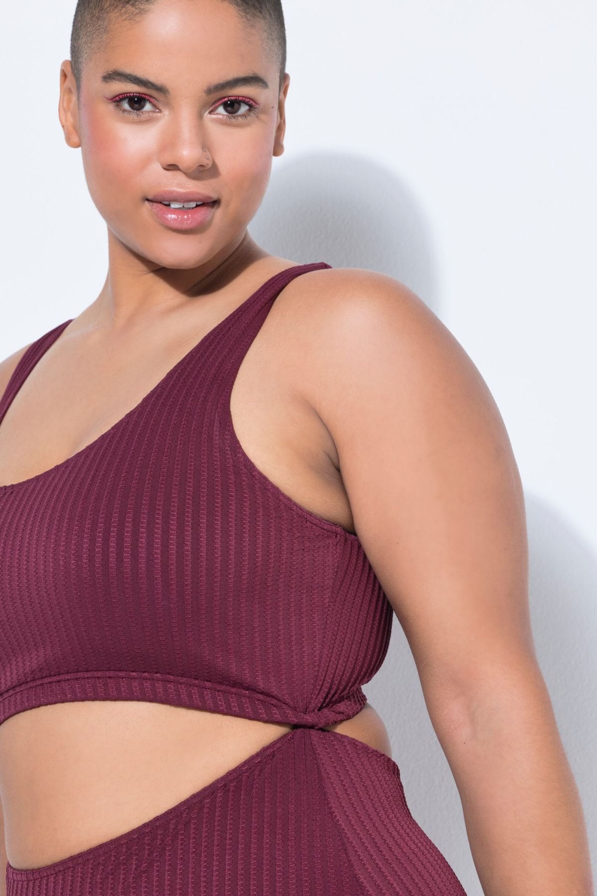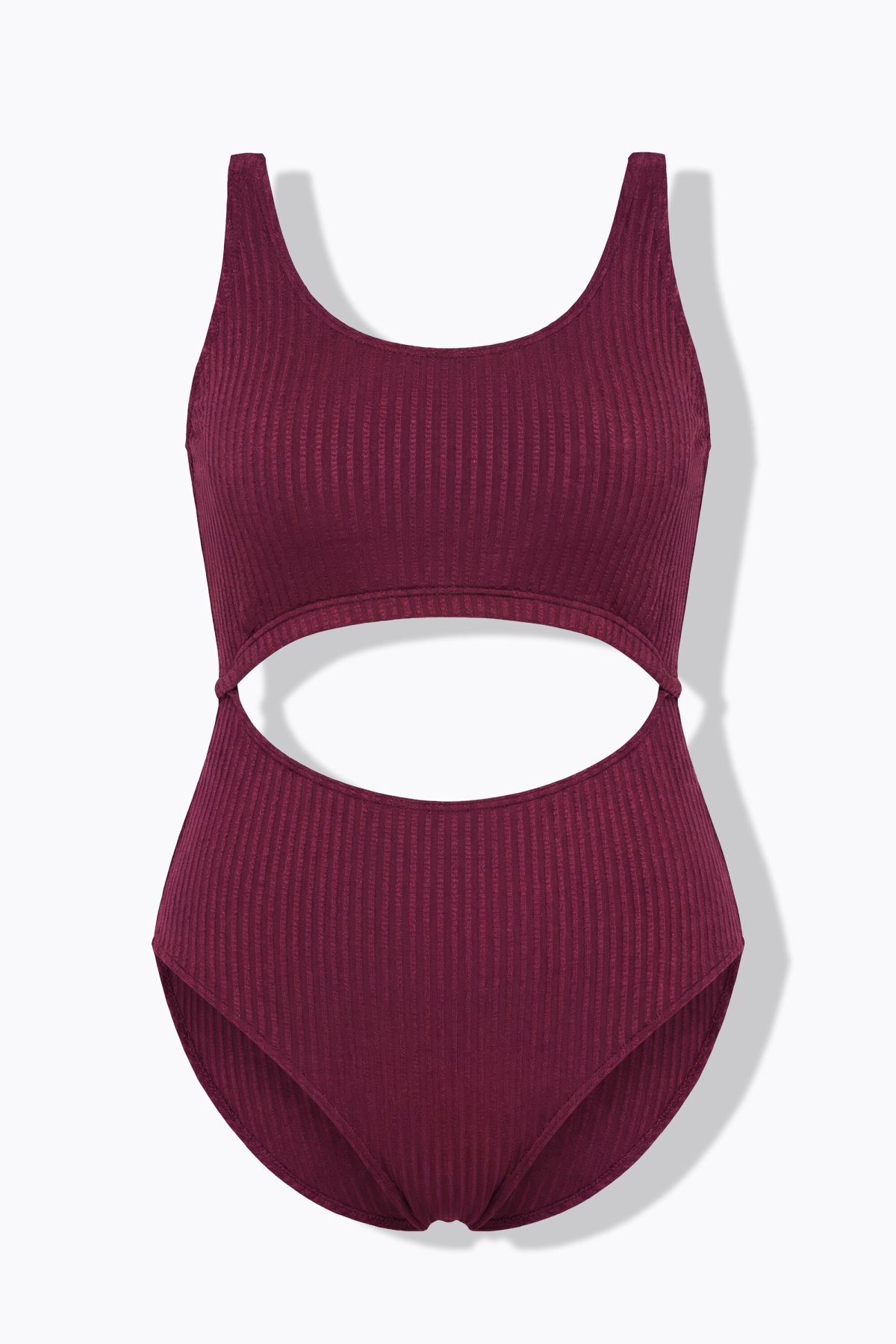 Бански с изрязани акценти с рипсена визия. С комфортни широки презрамки, комфортна бикина и лежерен стил.
