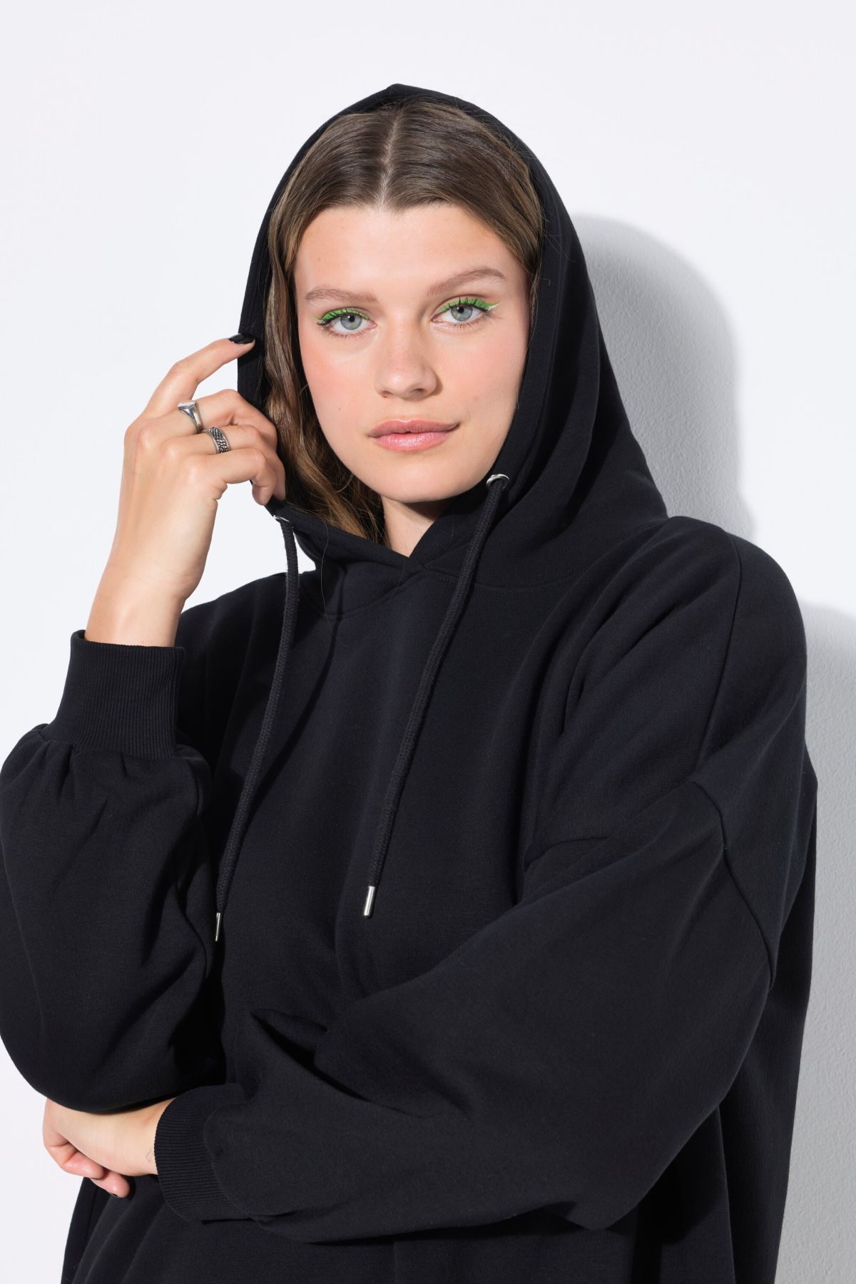 Суитчър с овърсайз кройка. С изчистен дизайн с качулка с връзка. С дълги ръкави с рипсени маншети и подгъв. От мека, комфортна материя за сезона.