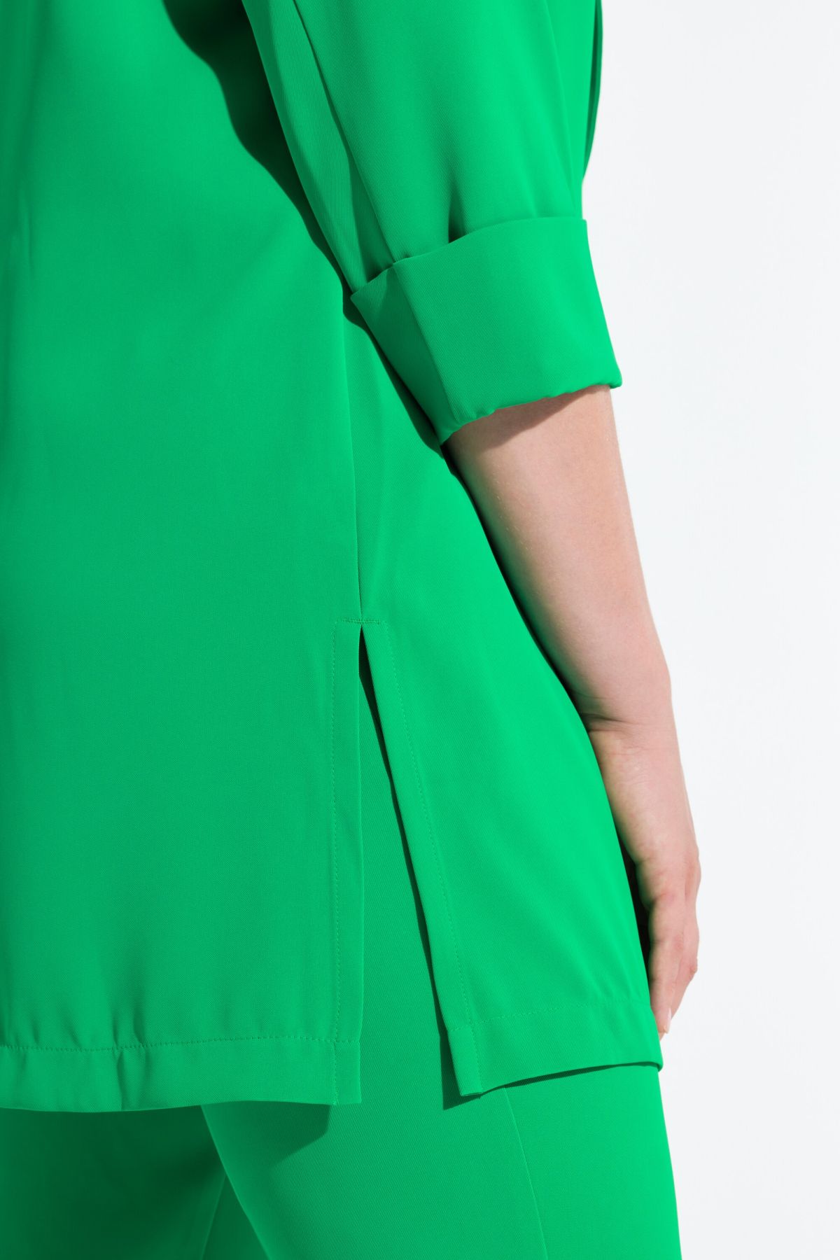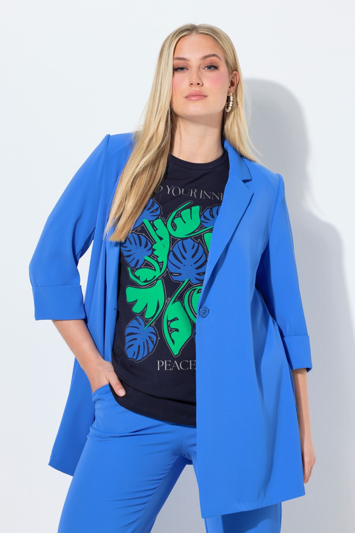 Блейзър в свежи цветове - бъдете подготвени за дните в офиса. С ревери на яката, 3/4 ръкави и странични джобове