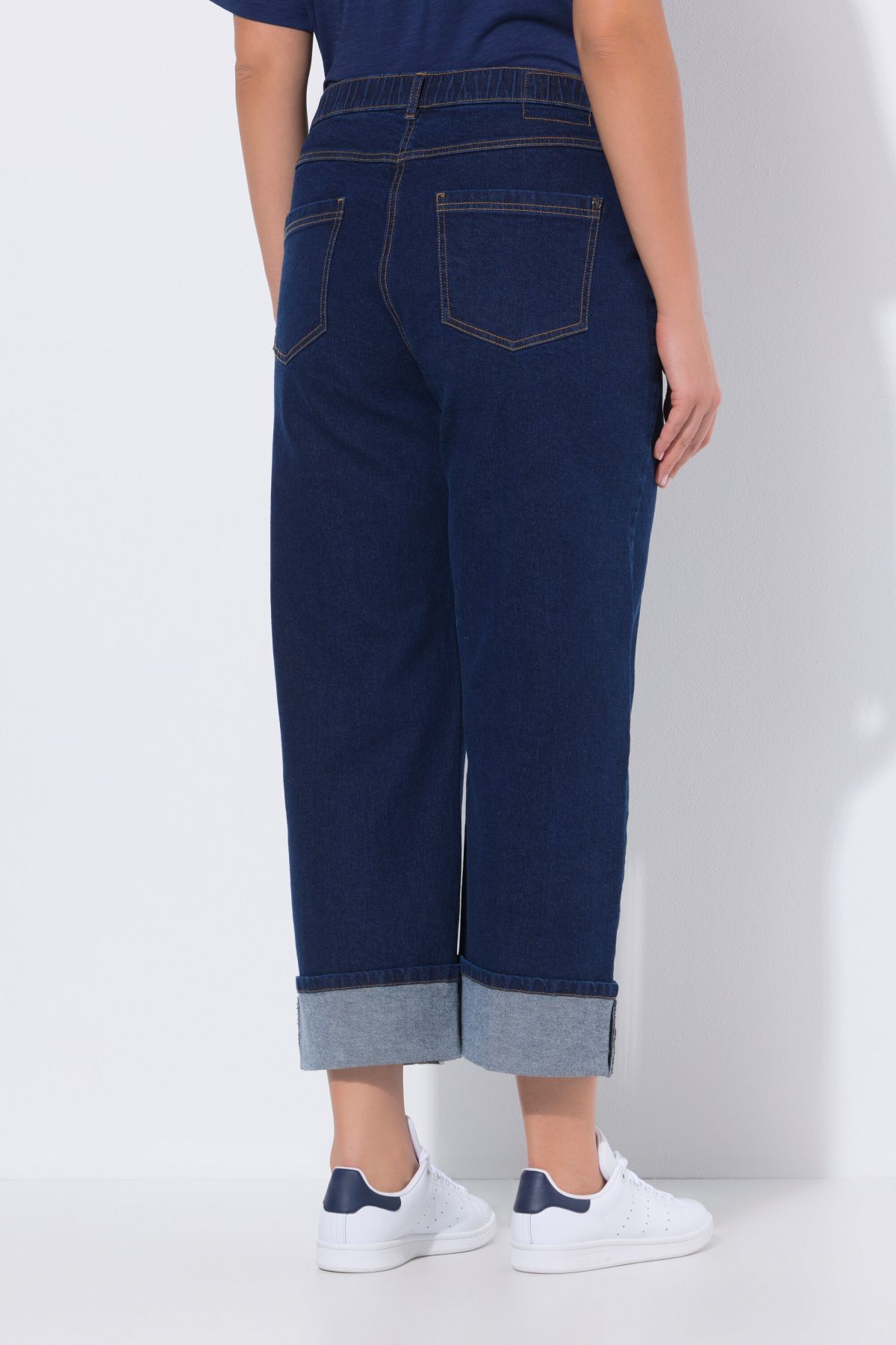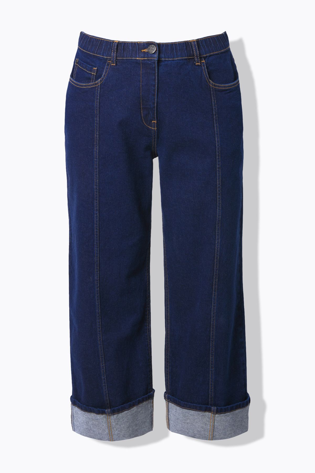 Дънки с декоративни шевове с прави крачоли. С навити подгъви за акцент. С фиксирана талия с гайки за колан, копче и цип отпред, дизайн с 5 джоба. С прани ефекти.