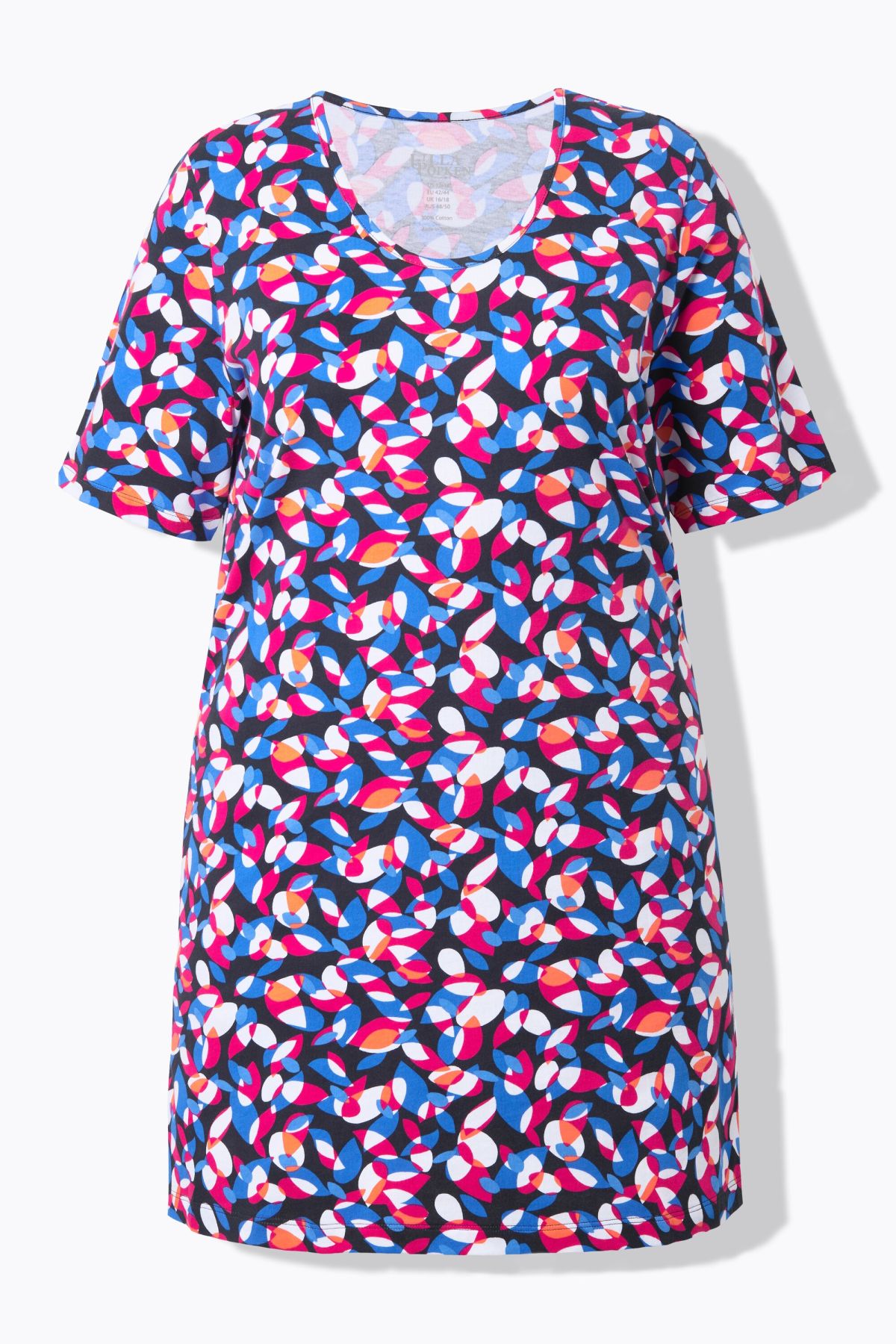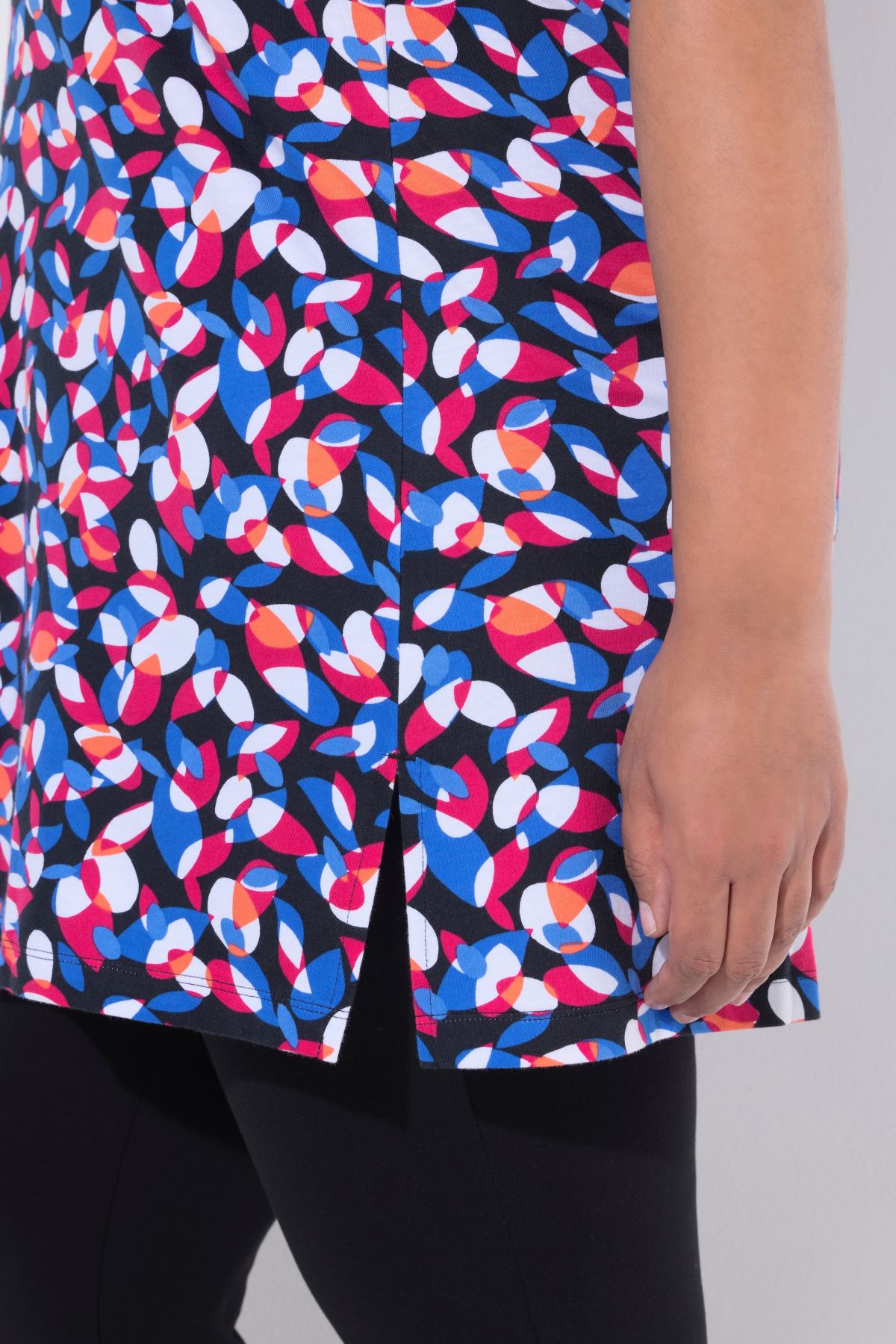 Туника с графичен принт. Свободно кръгло деколте, къси ръкави с маншет, класическа кройка с А-силует. Изработена от мек и еластичен памучен трикотаж.