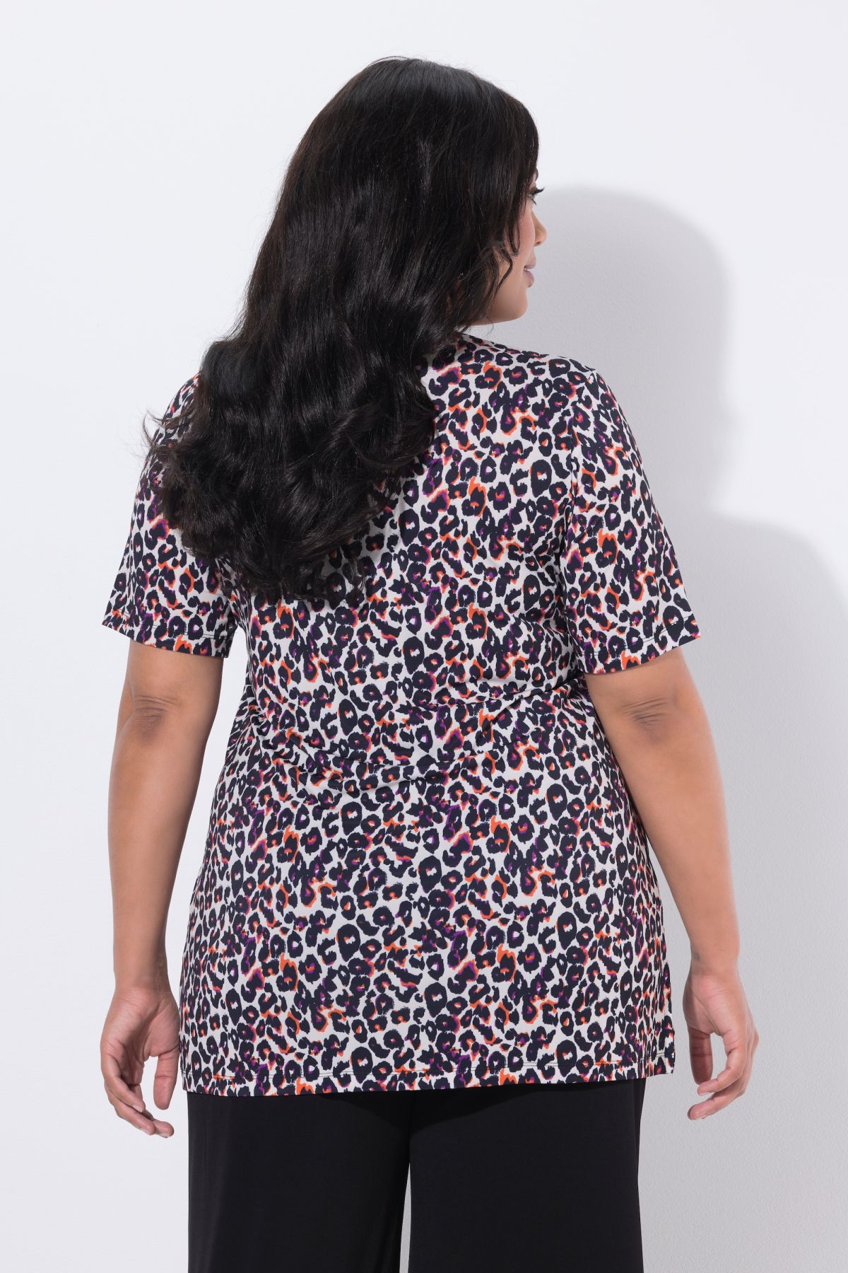 Туника с леопардов принт и къси ръкави с маншет. Странични цепки за повече свобода, широко кръгло деколте, Класически кройка с А-силует. От меко памучно трико.