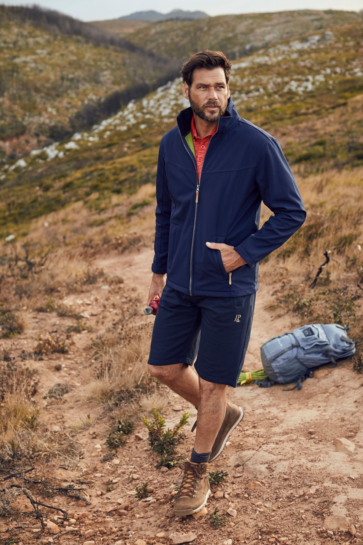Спортни шорти с лого с еластична талия с регулираща връзка, 2 джоба отпред и 1 външен отзад. От мека материя.