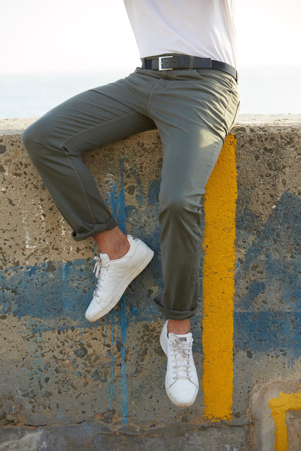 Еластичен колан с метална катарама и кожено закопчаване.