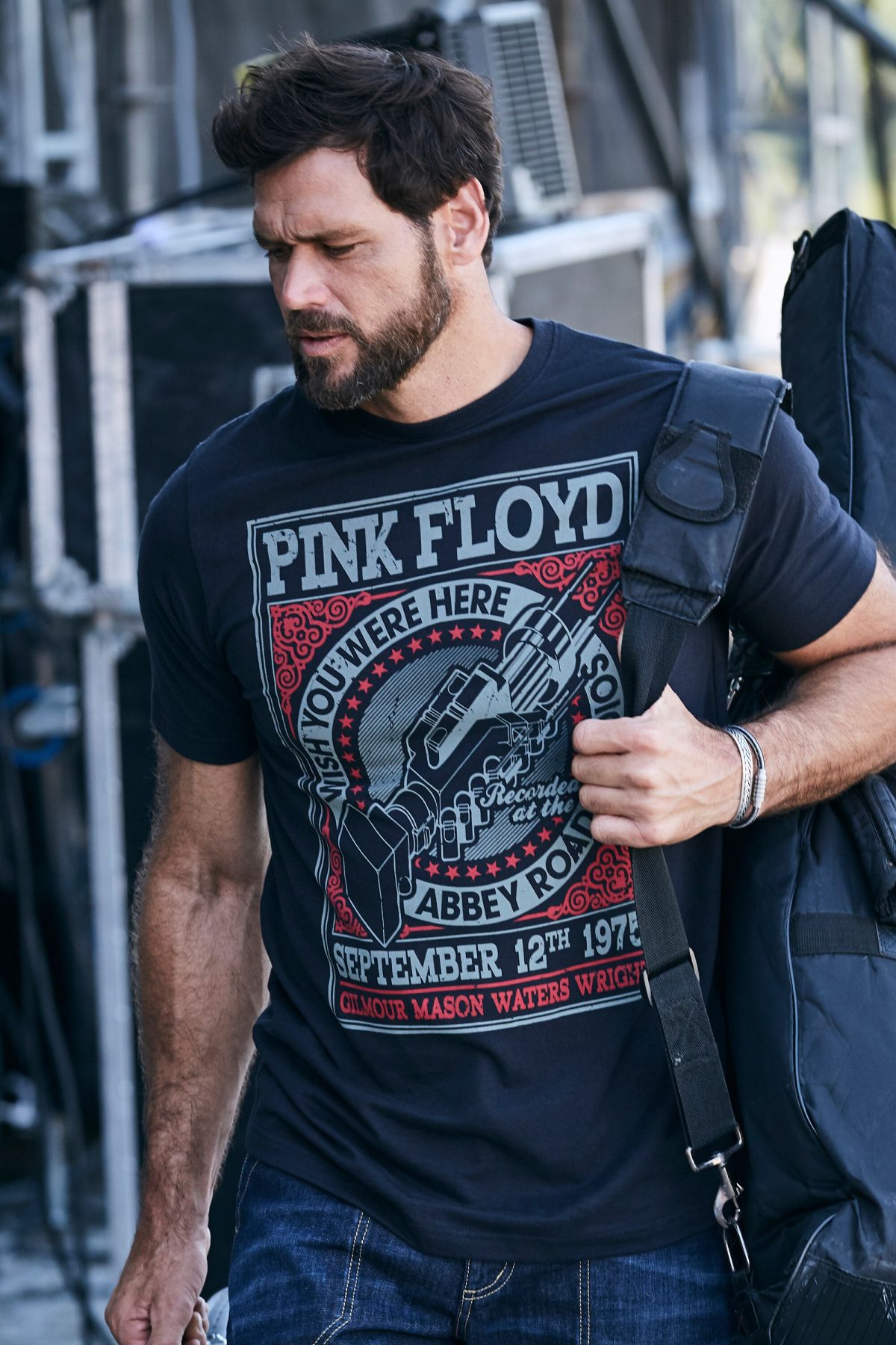 Тениска с ретро принт с кръгло деколте и къси ръкави.