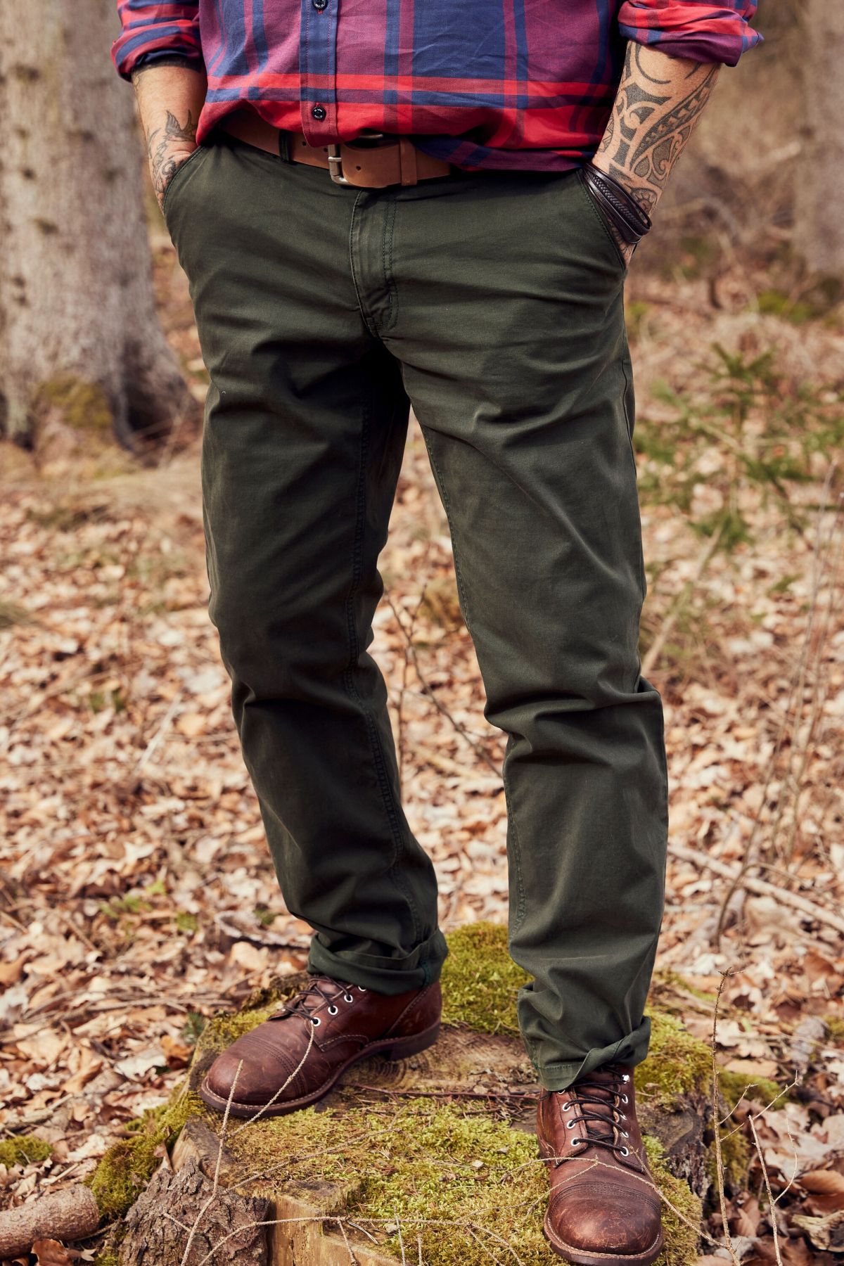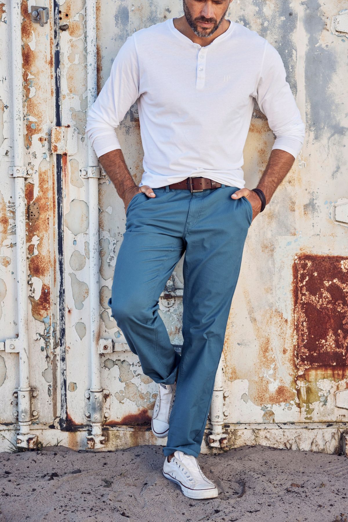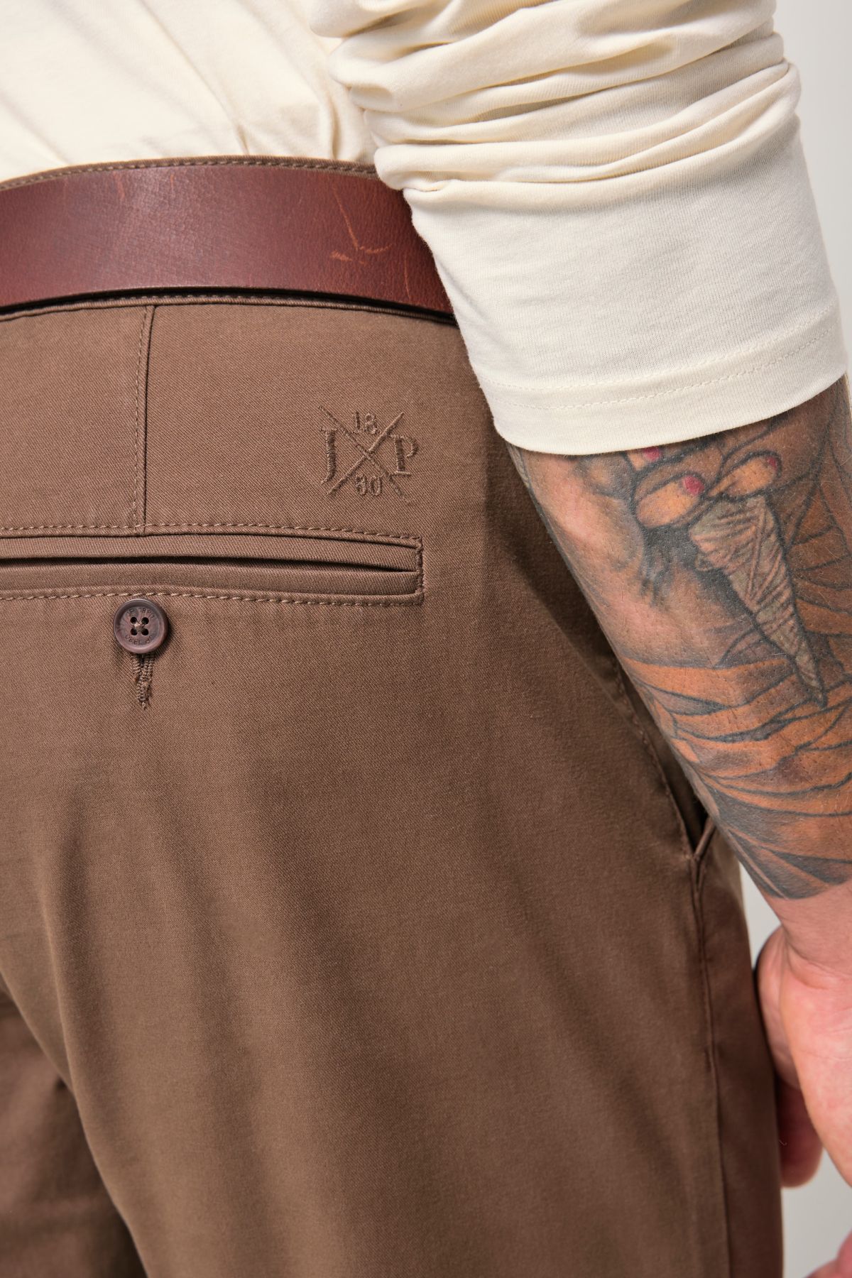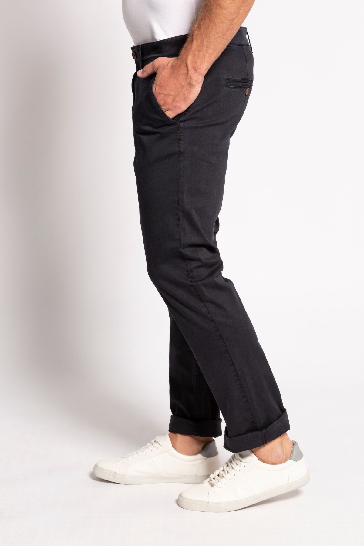 Панталон с 2 предни джоба и 2 задни джоба, нормална ширина на бедрата и крачола и нормална ширина на глезена.