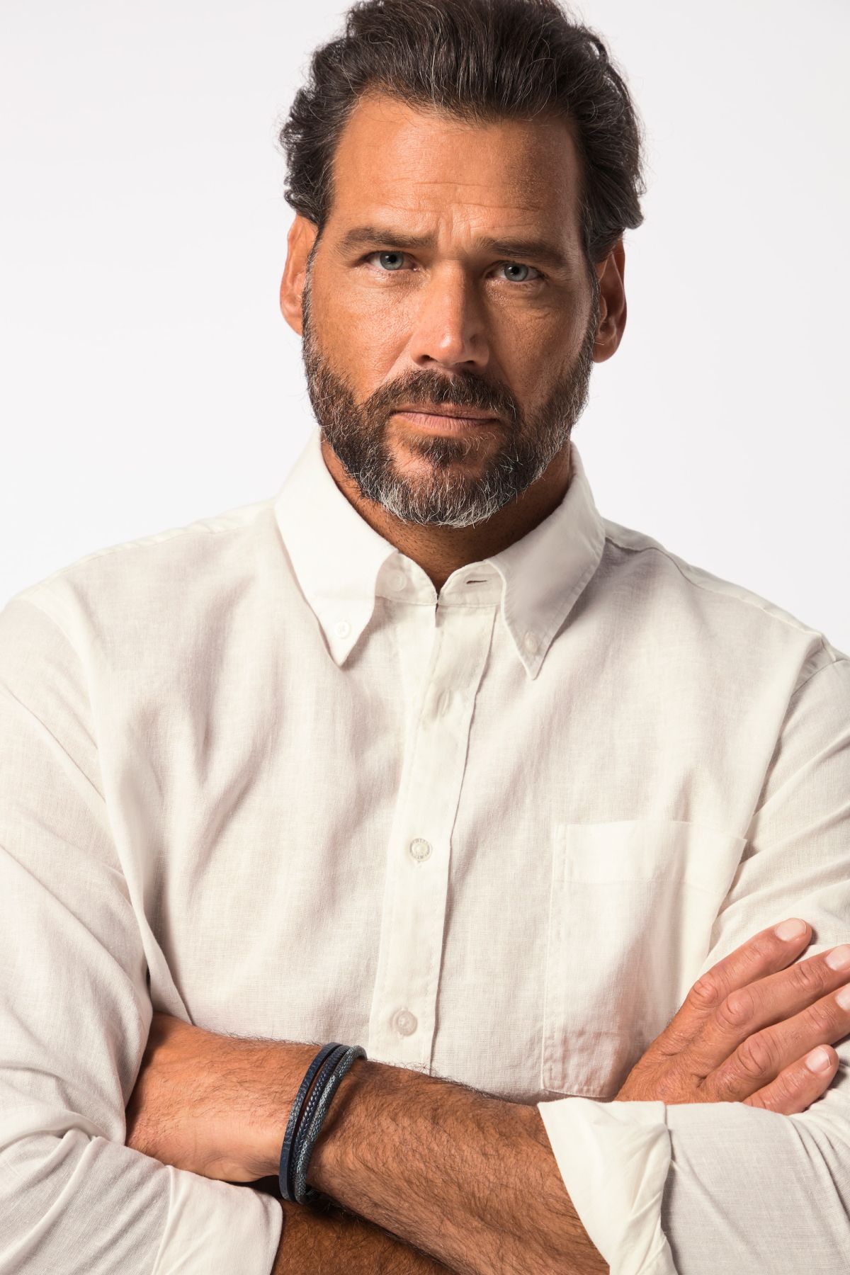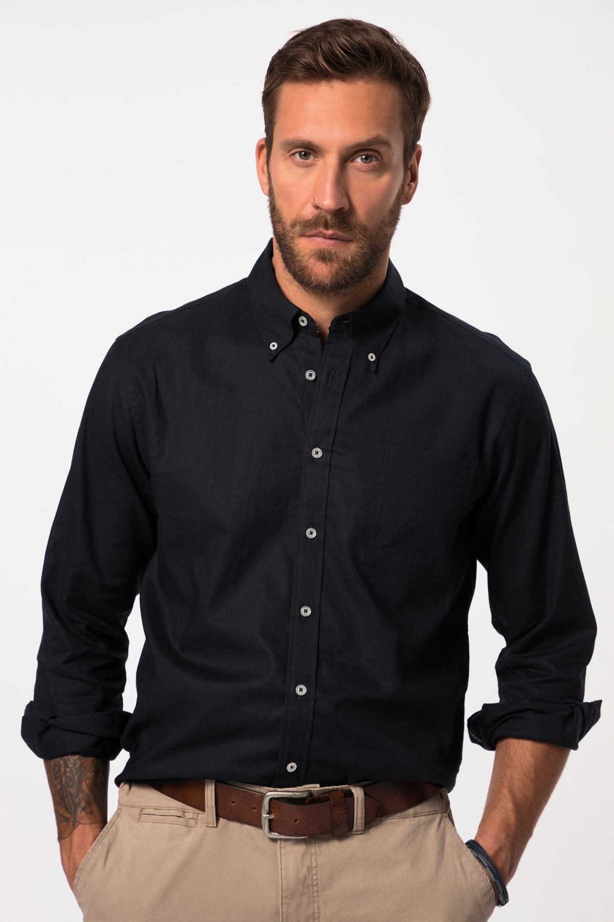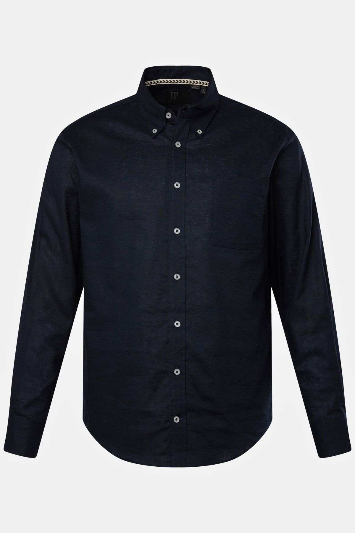 хладен микс от лен, модерна кройка, яка с копчета, по-големи копчета от 4 XL, коригирана според размера дължина приблизително 78-92 см.