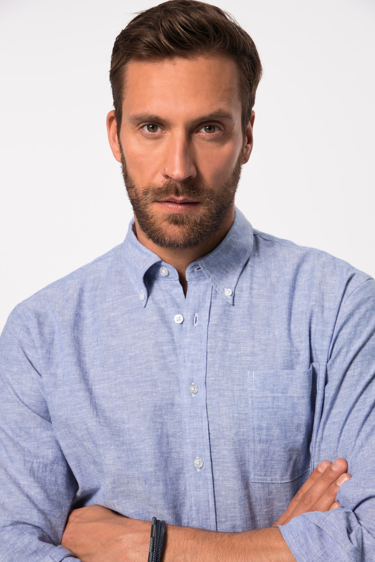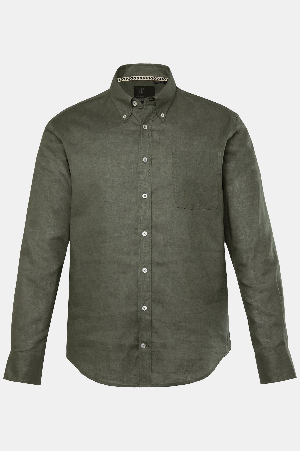 Ленена риза с яка с дълги ръкави и джоб на гърдите. С комфортна кройка и перфектен силует за всеки момент. С широк дизайн, комбиниращ в себе си риза и яке.